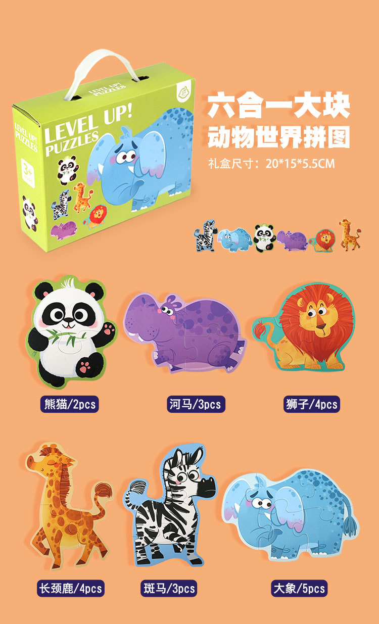 나무 6 대 1 선물 상자 퍼즐 어린이 조기 교육 재미있는 차량 동물 퍼즐 퍼즐 장난감스토어 가기
