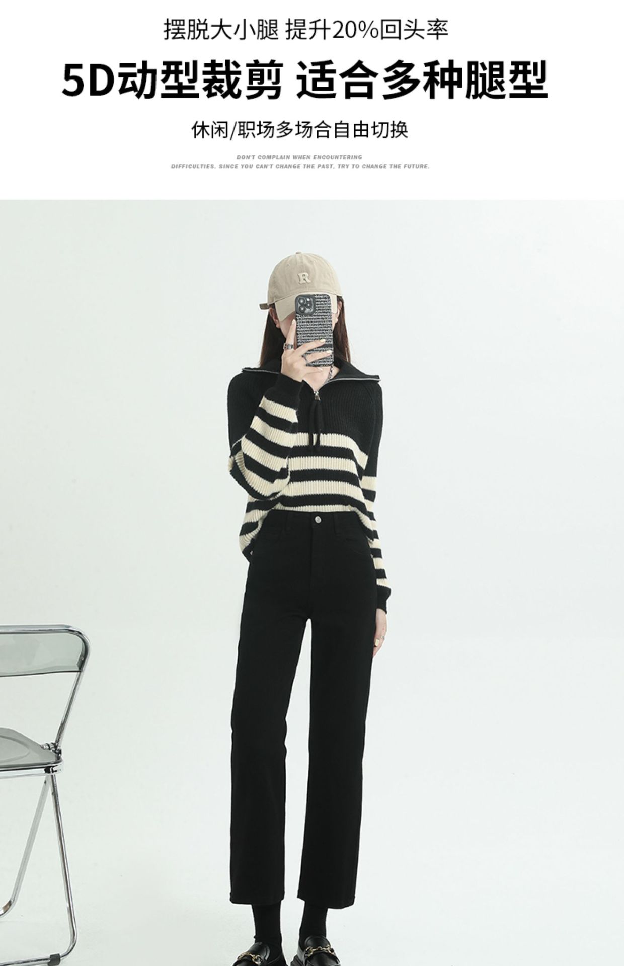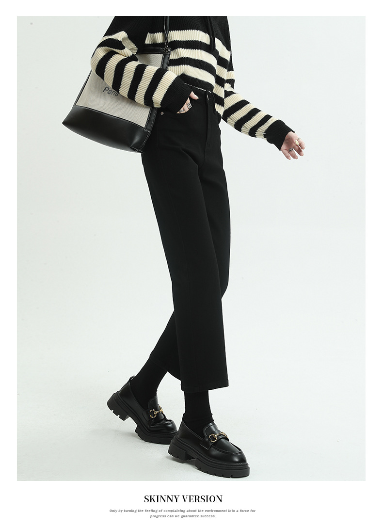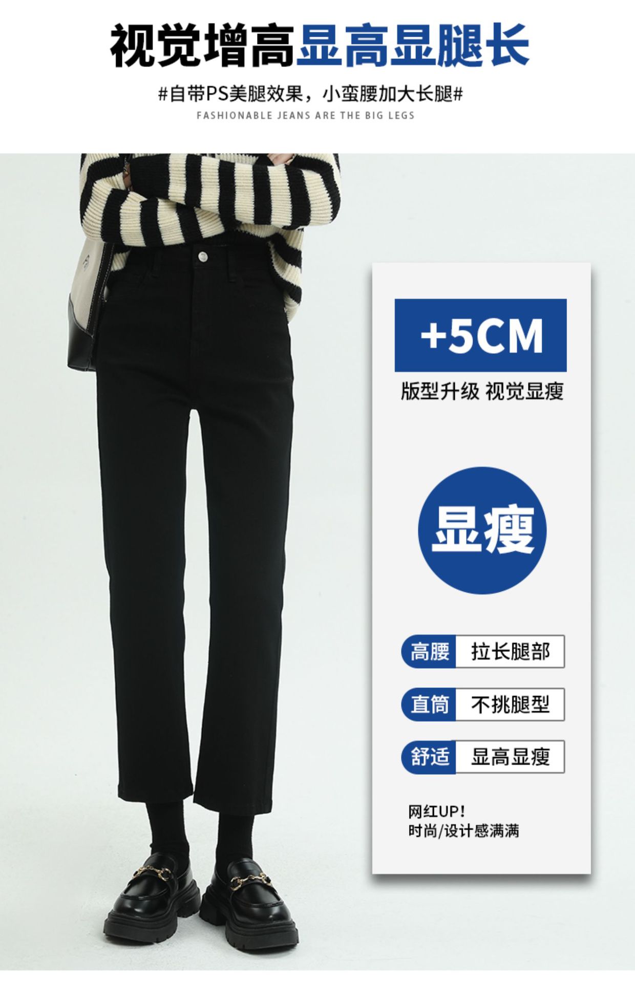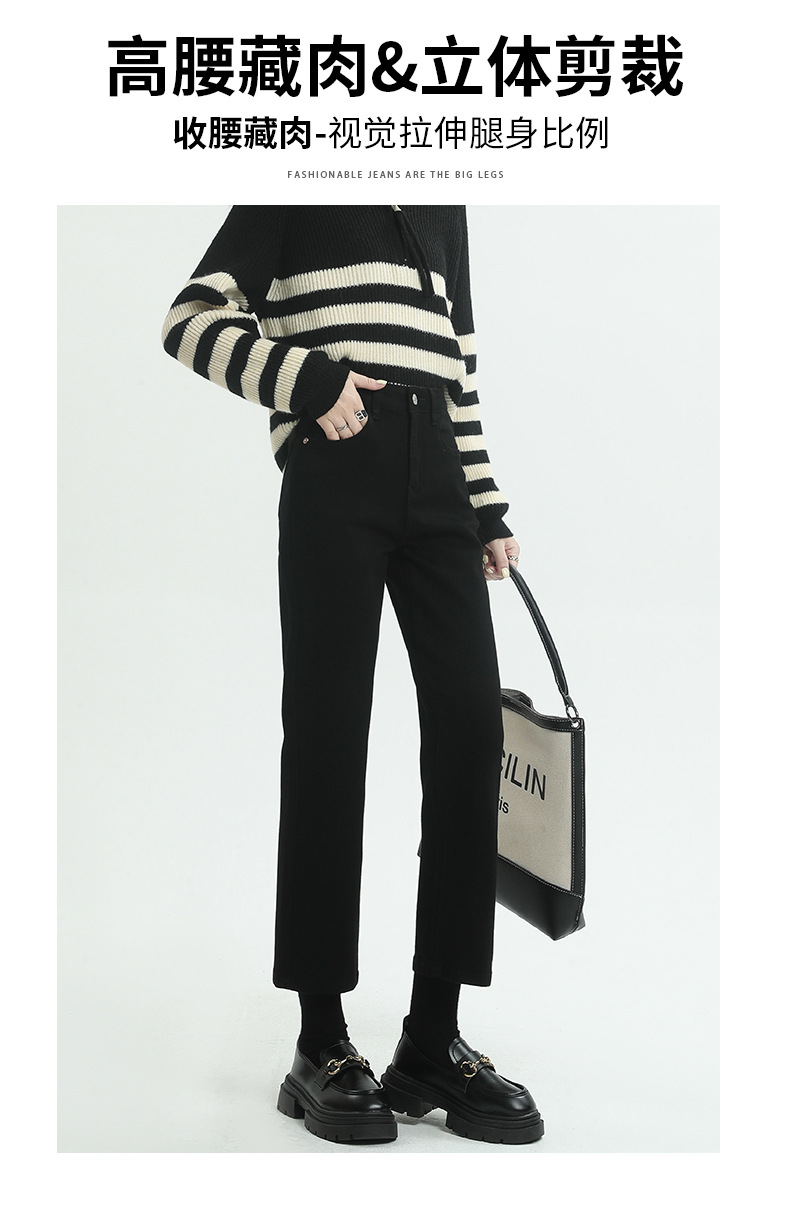 검은 연기 튜브 스트레이트 청바지 여성 7 점 2024 신상 가을/겨울 기모 높은 허리 봄/가을 9 점 바지스토어 가기