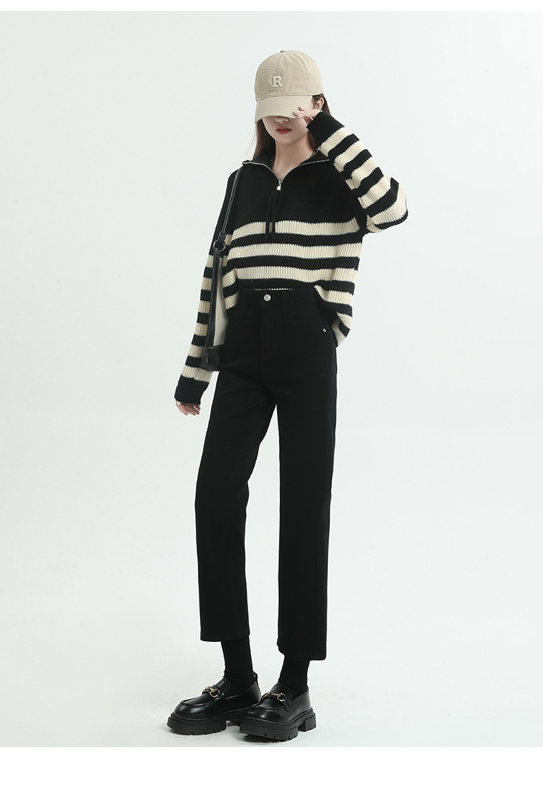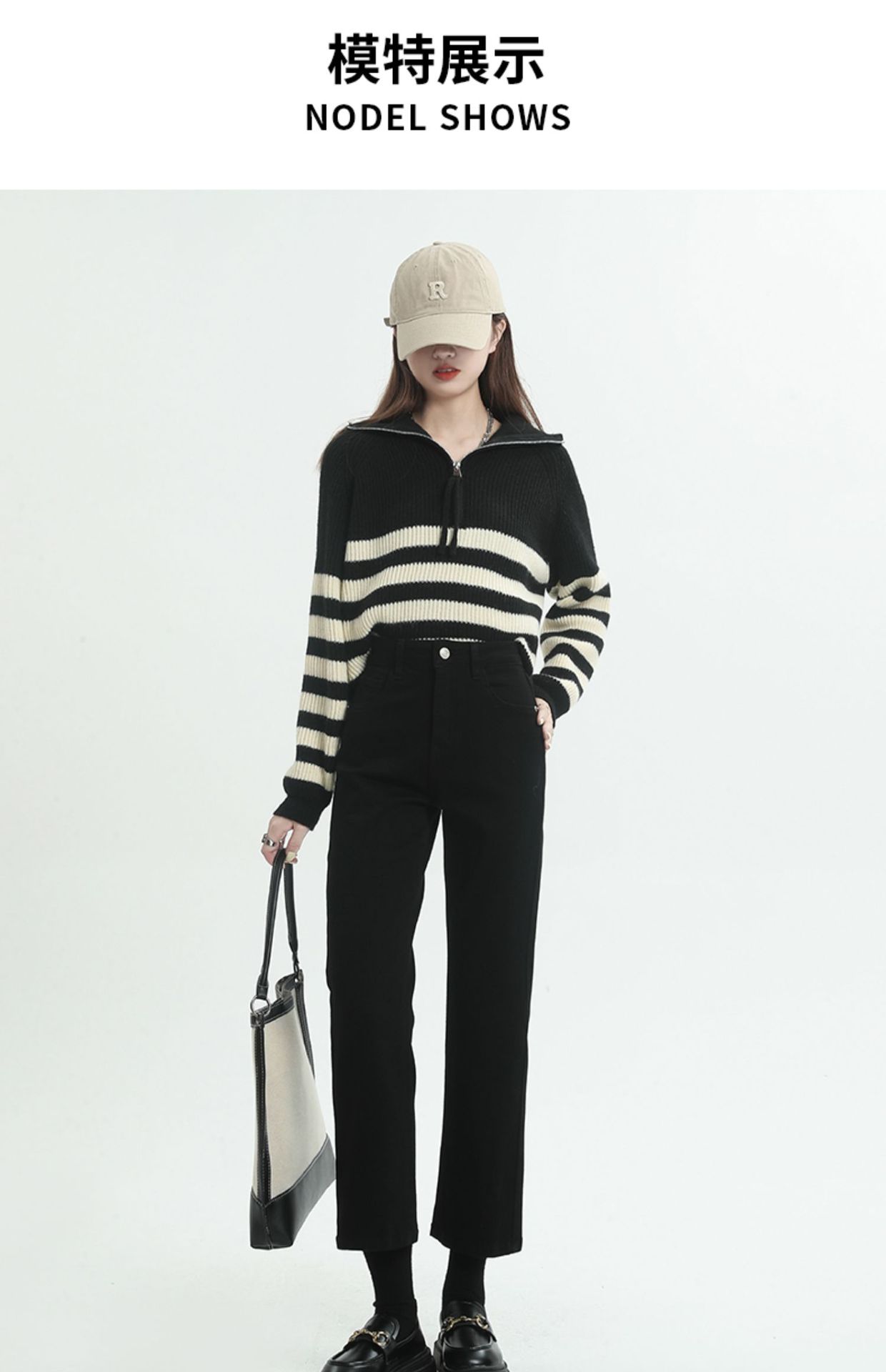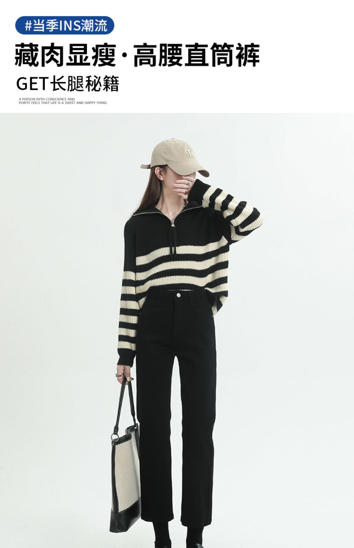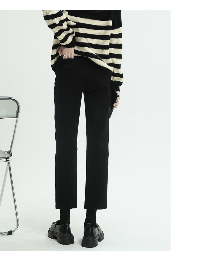 검은 연기 튜브 스트레이트 청바지 여성 7 점 2024 신상 가을/겨울 기모 높은 허리 봄/가을 9 점 바지스토어 가기
