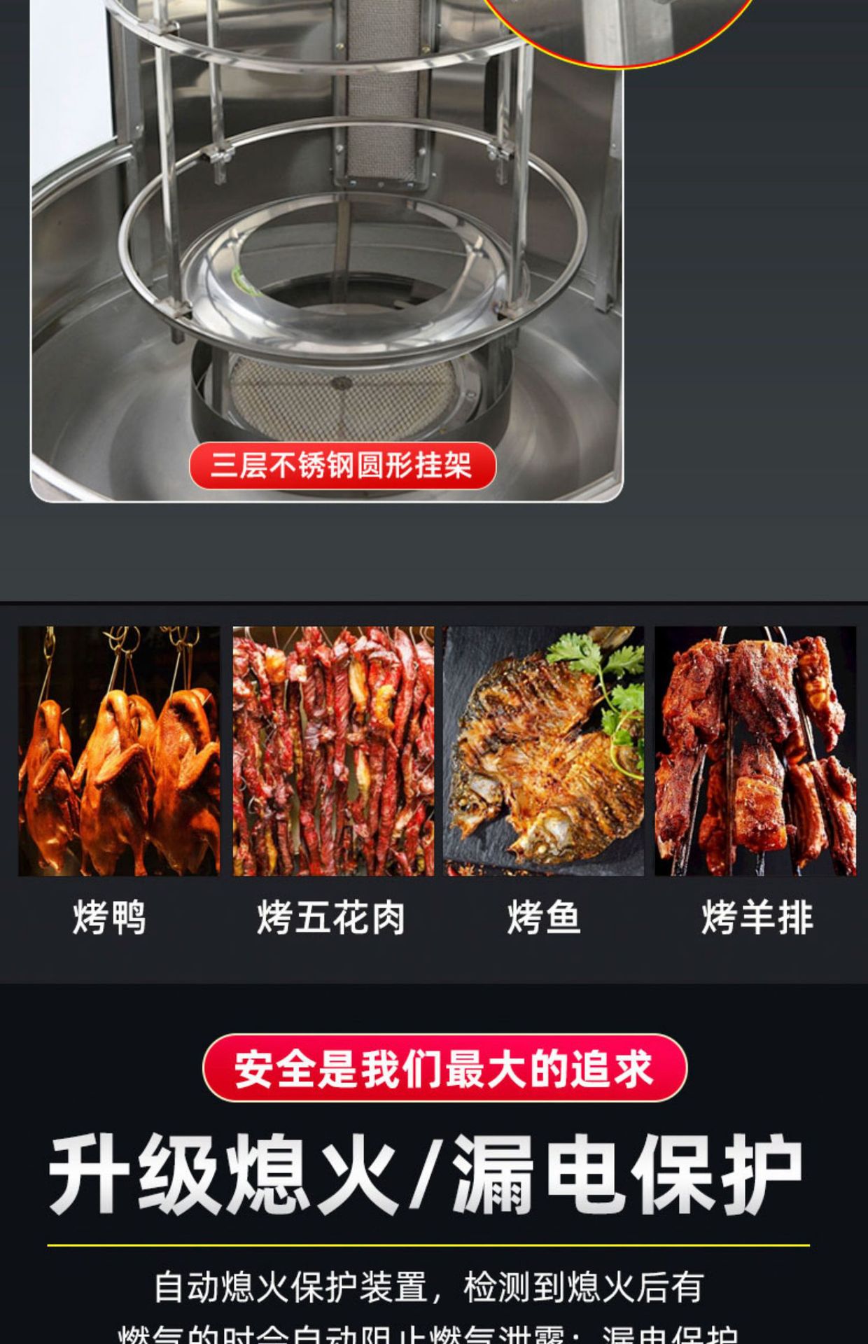 로스트 오리 스토브 상업용 850 로스트 피쉬 및 고기 가스 숯 자동 로터리 로스트 치킨 레그 및 양고기는 가정용 전기 로스트 오리 스토브스토어 가기