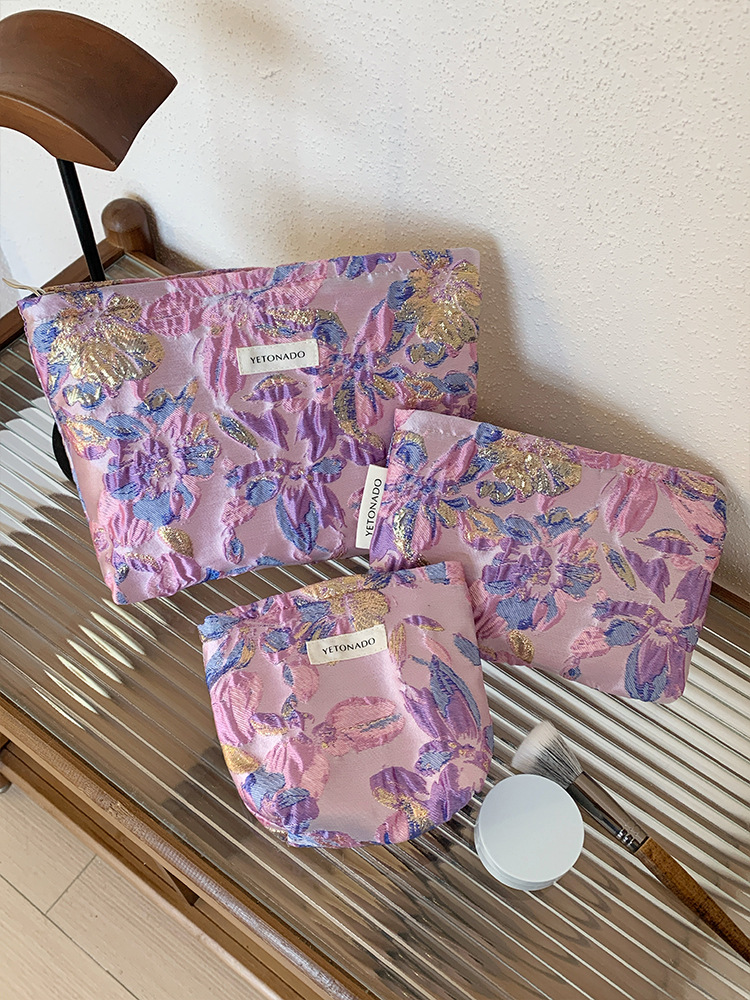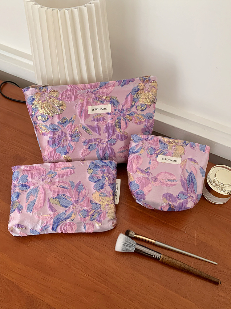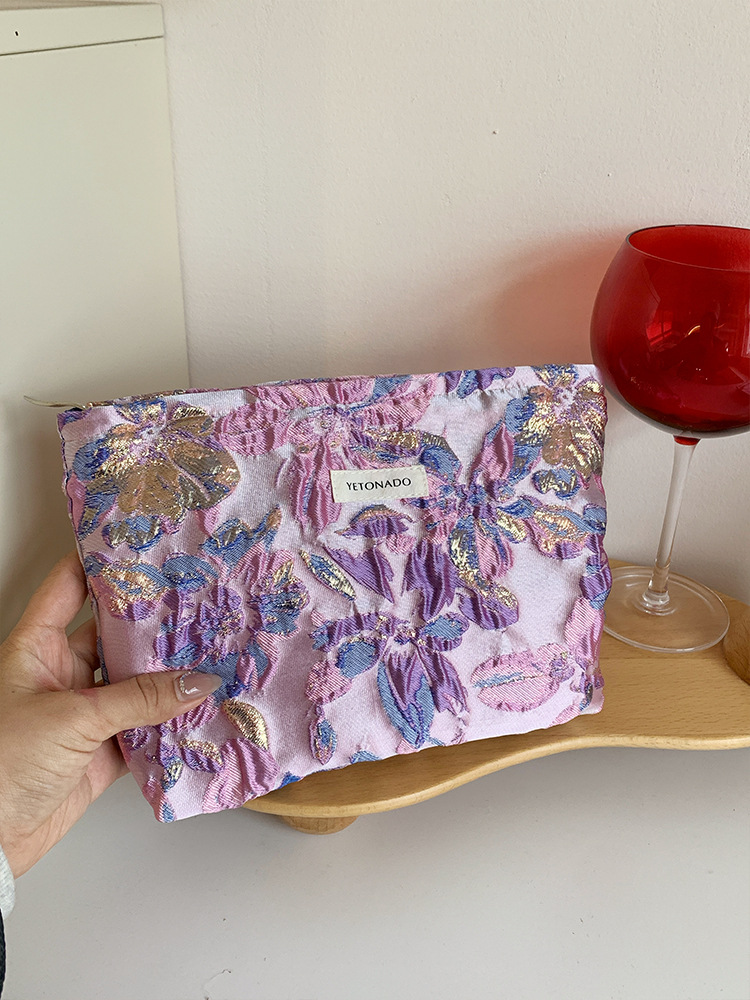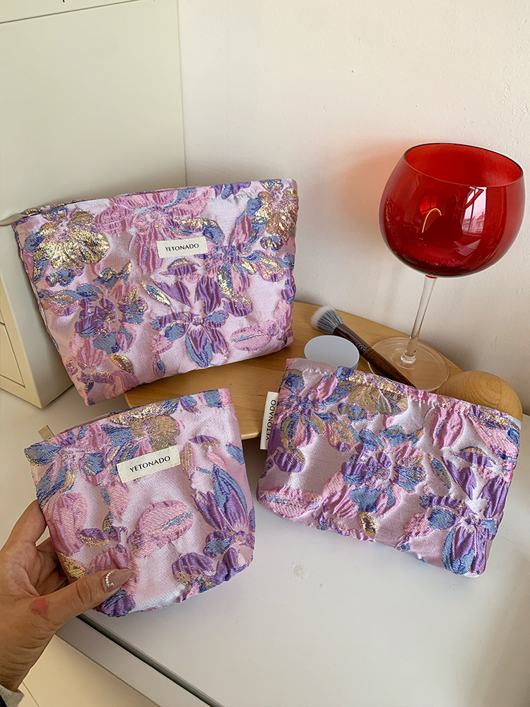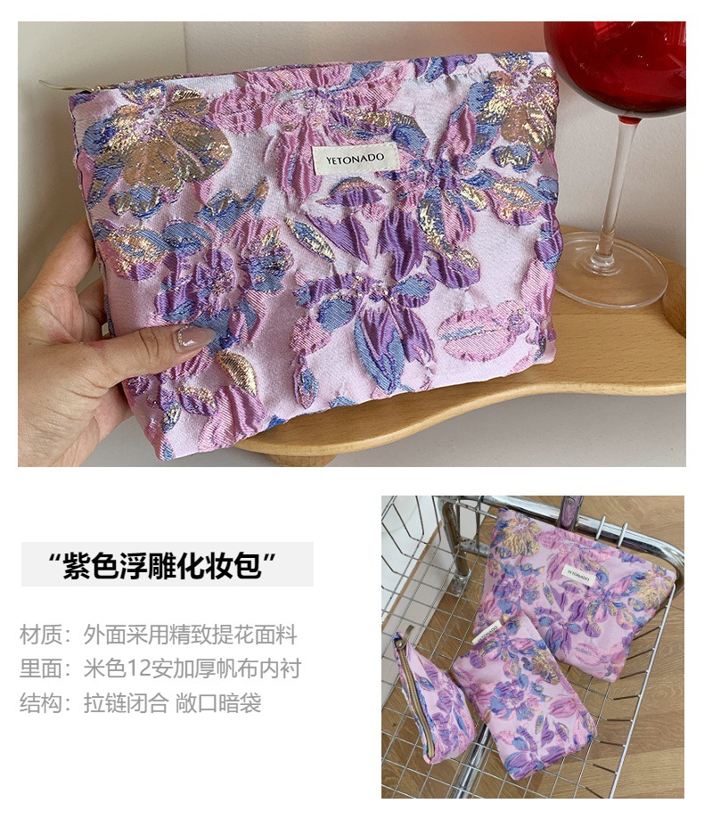 새로운 국경 보라색 양각 꽃 대용량 화장품 가방 나가는 휴대용 저장 가방 내부 가방 소녀 클러치 백