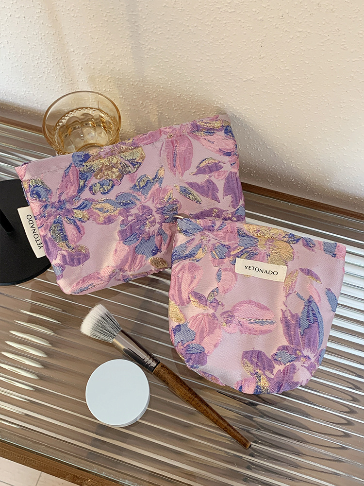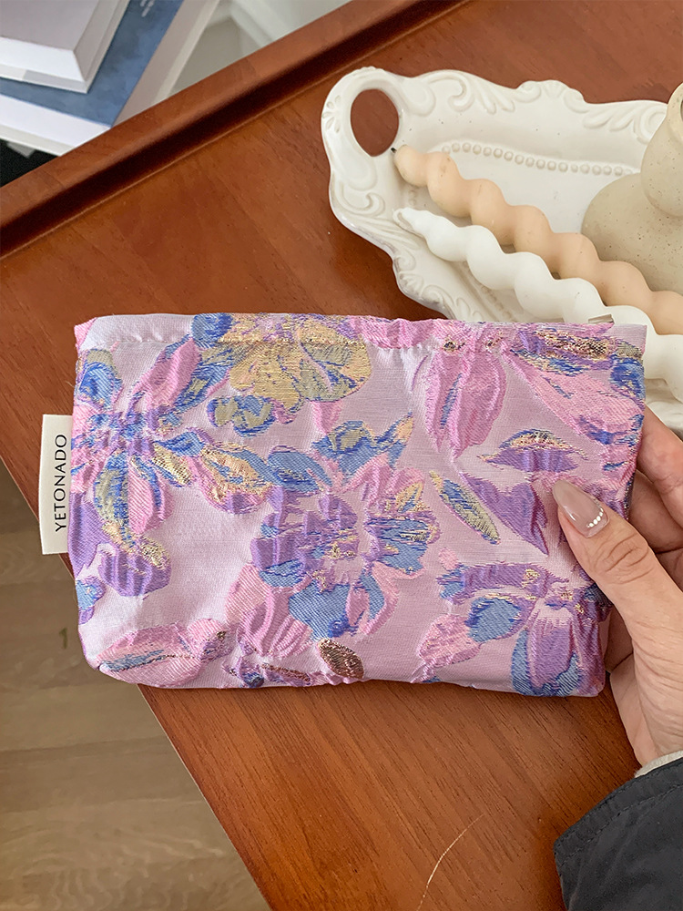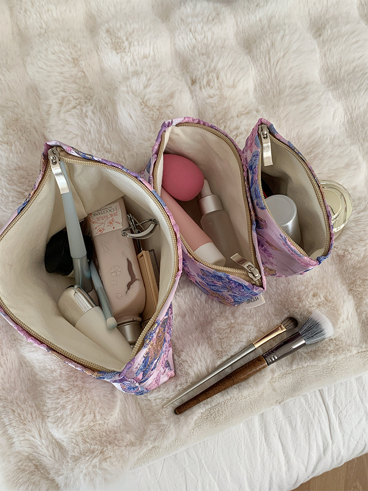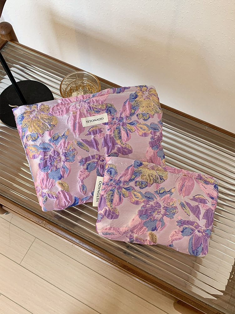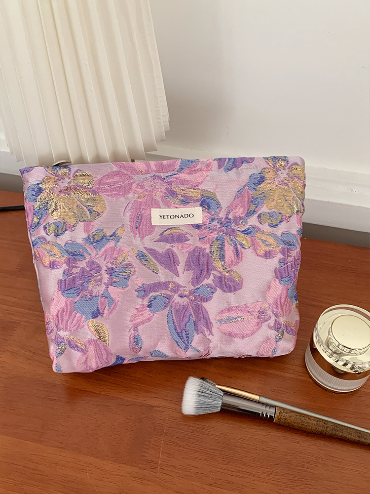 새로운 국경 보라색 양각 꽃 대용량 화장품 가방 나가는 휴대용 저장 가방 내부 가방 소녀 클러치 백