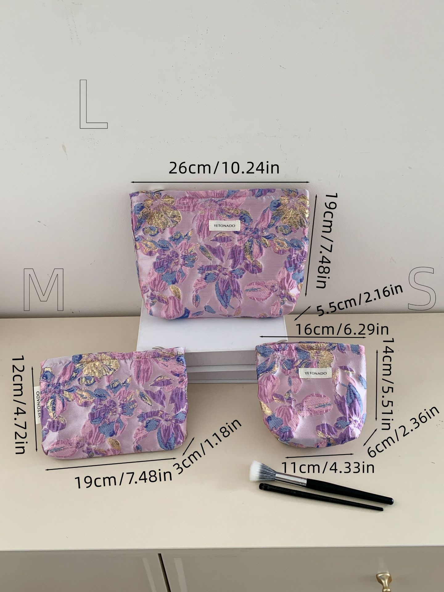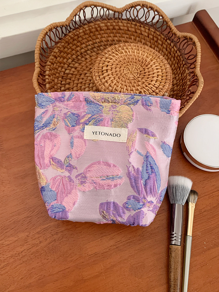 새로운 국경 보라색 양각 꽃 대용량 화장품 가방 나가는 휴대용 저장 가방 내부 가방 소녀 클러치 백스토어 가기