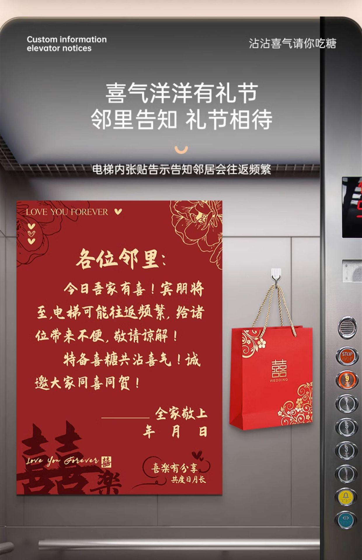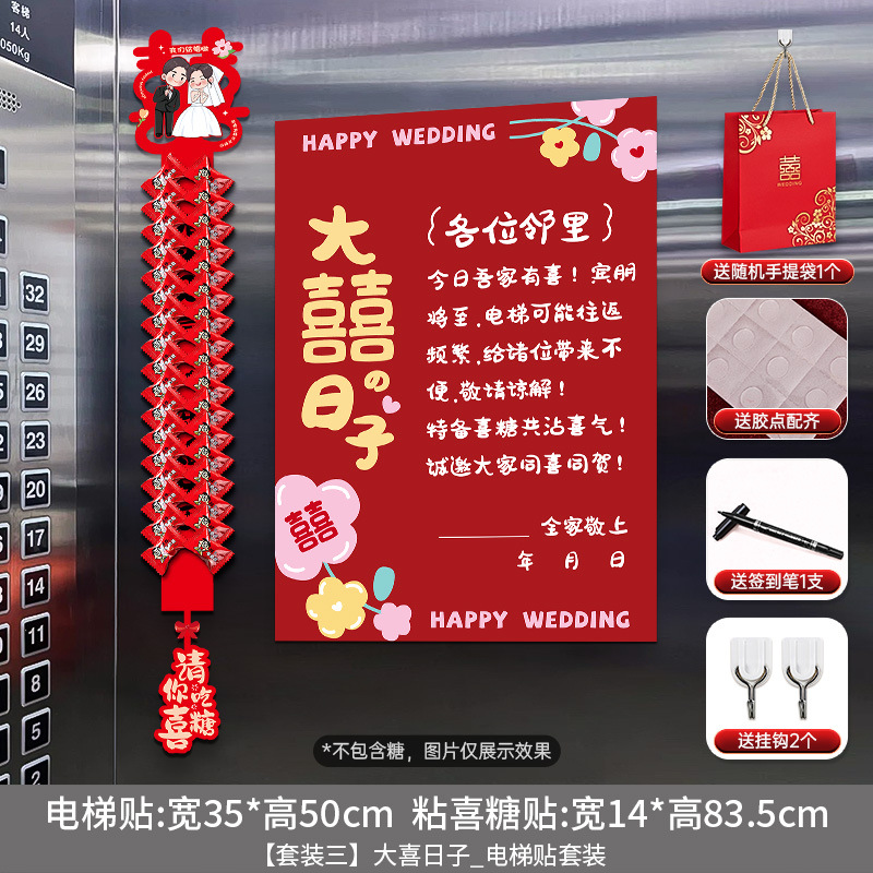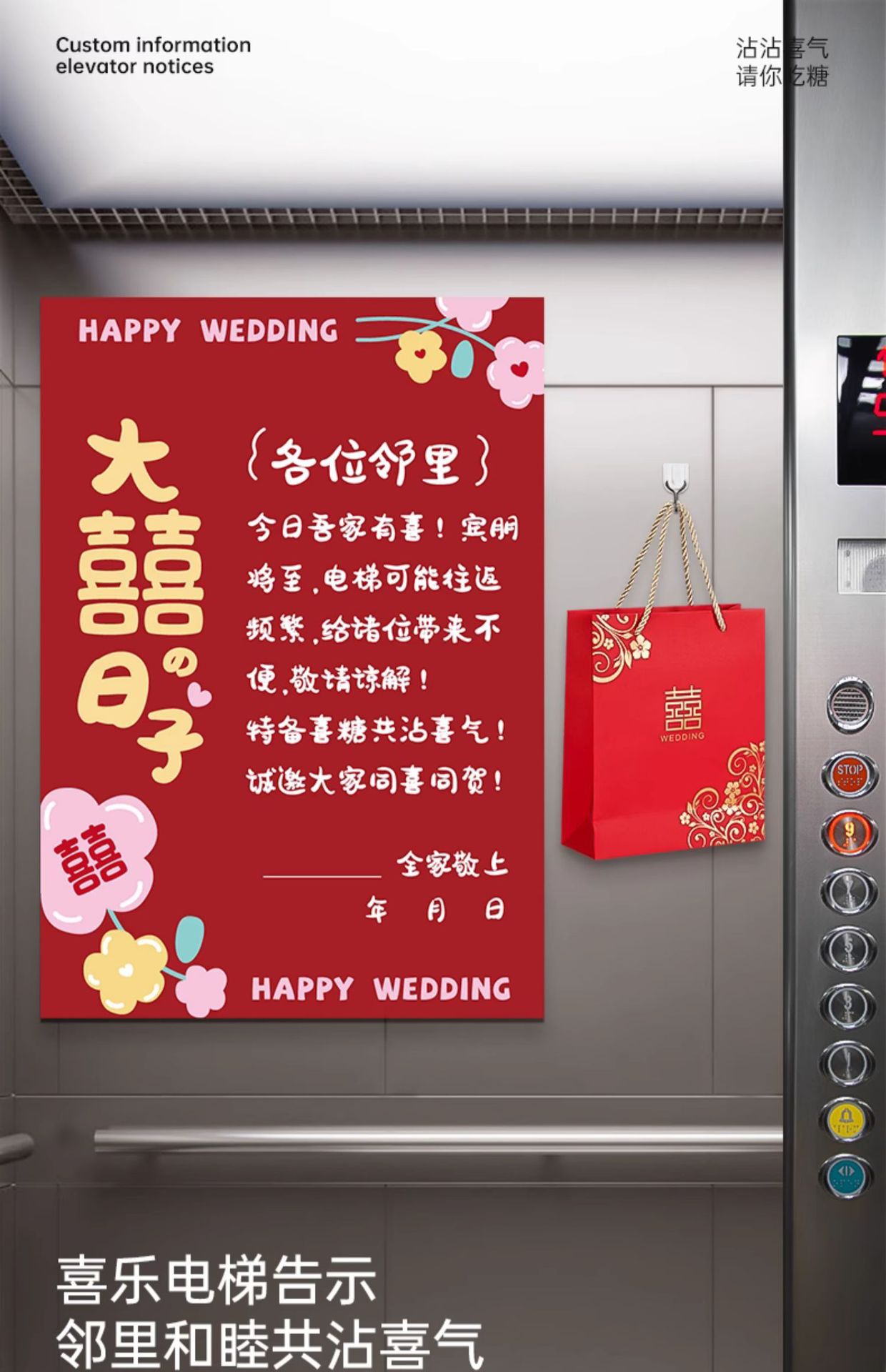 • Jiatuo Tiancheng_끈적한 웨딩 캔디 엘리베이터 스티커 2개 [13*83cm]