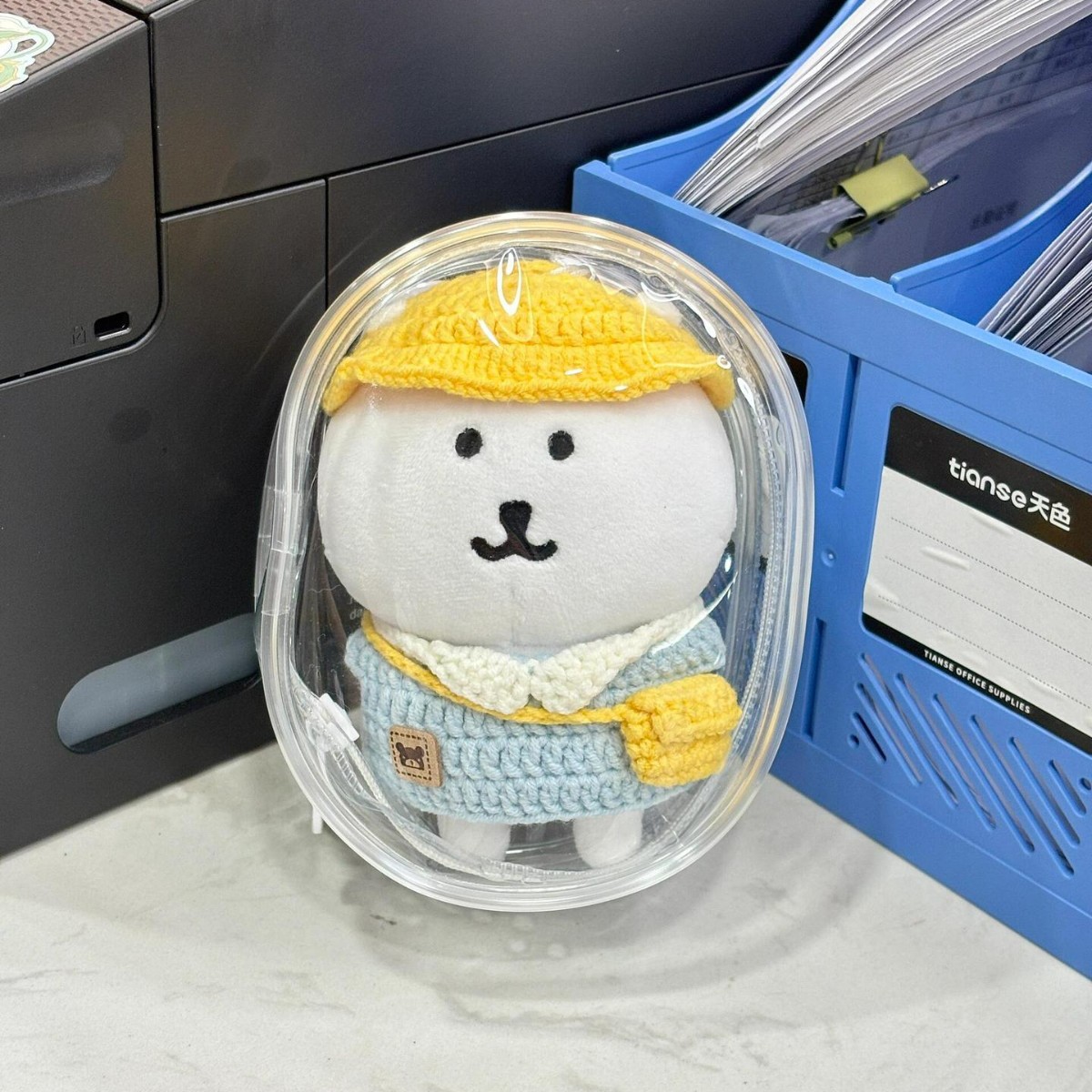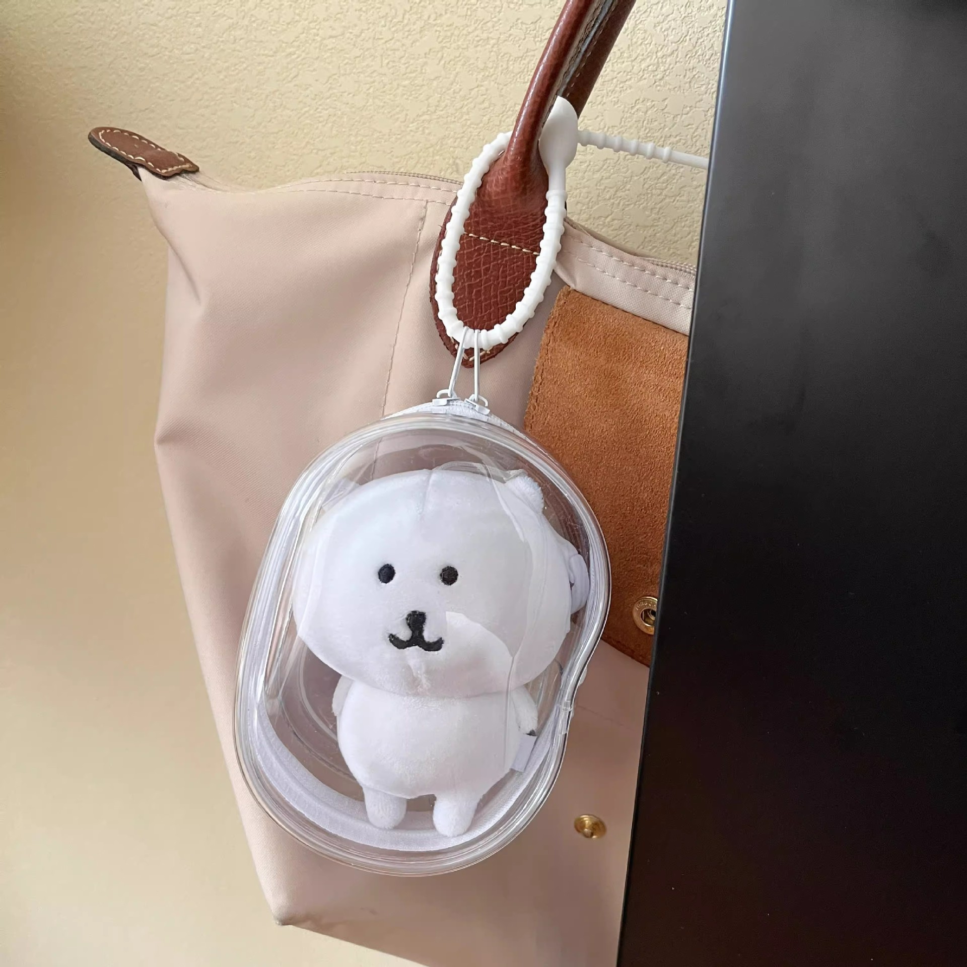 13cm 자기 비하 곰 보관 디스플레이 통증 가방 투명 교수형 방진 봉제 인형 밖으로 걸어 다니는 인형 가방스토어 가기