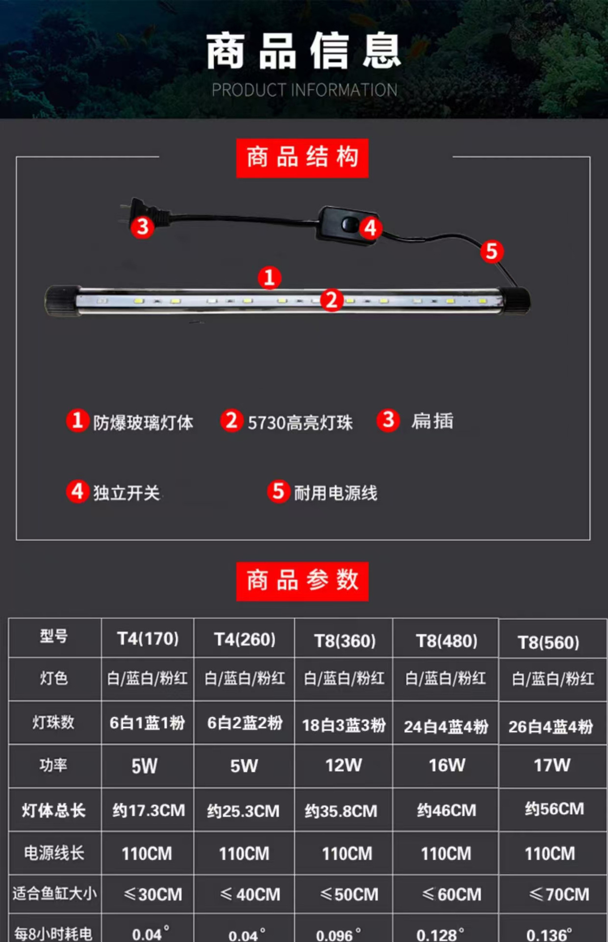 • T8-35cm/520 수족관에 적합