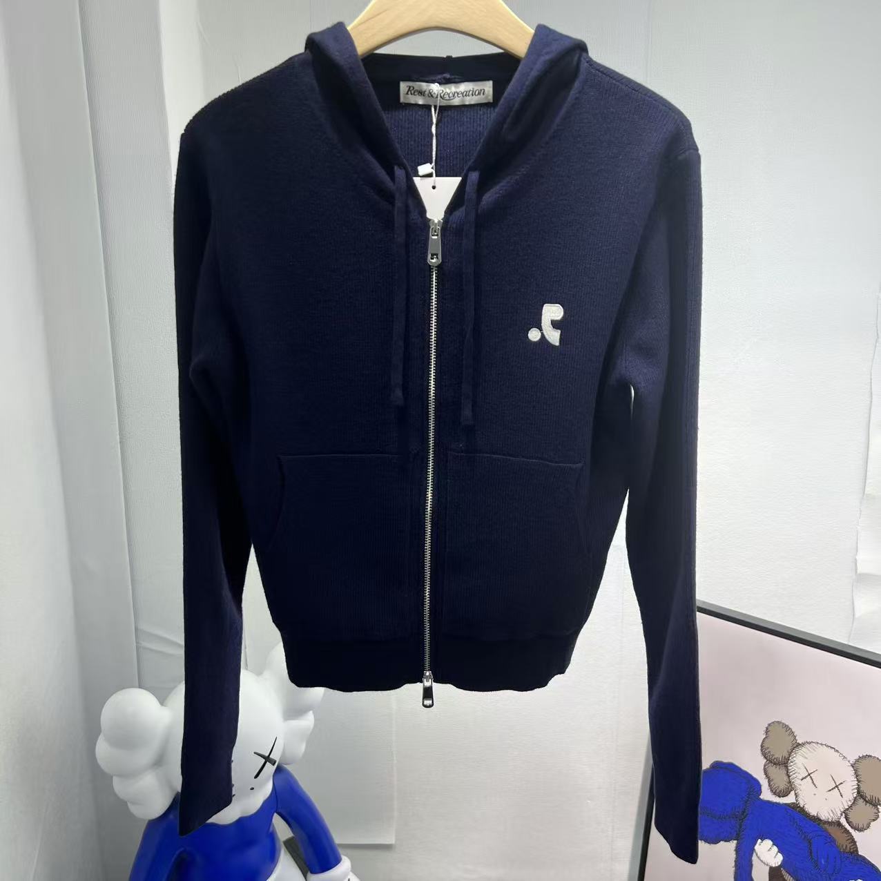 한국의 틈새 트렌드 브랜드 레스트 RR 클로티팀 니트 후드 집업 카디건 RR 숏 코트 여성용