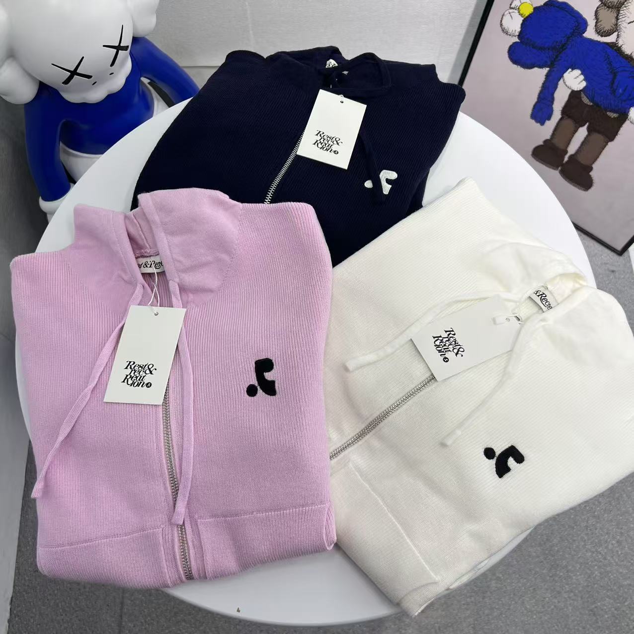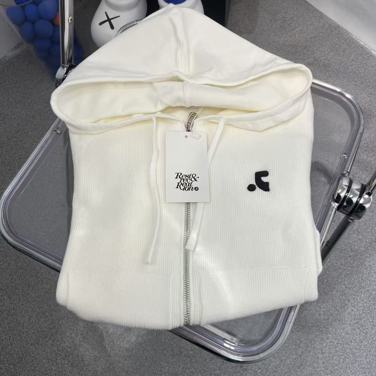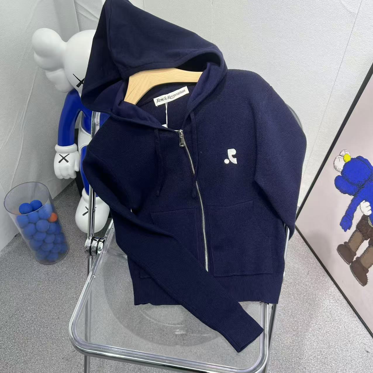 한국의 틈새 트렌드 브랜드 레스트 RR 클로티팀 니트 후드 집업 카디건 RR 숏 코트 여성용스토어 가기