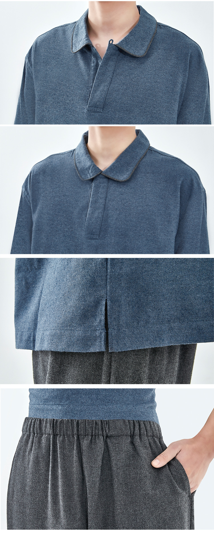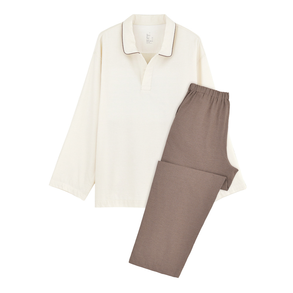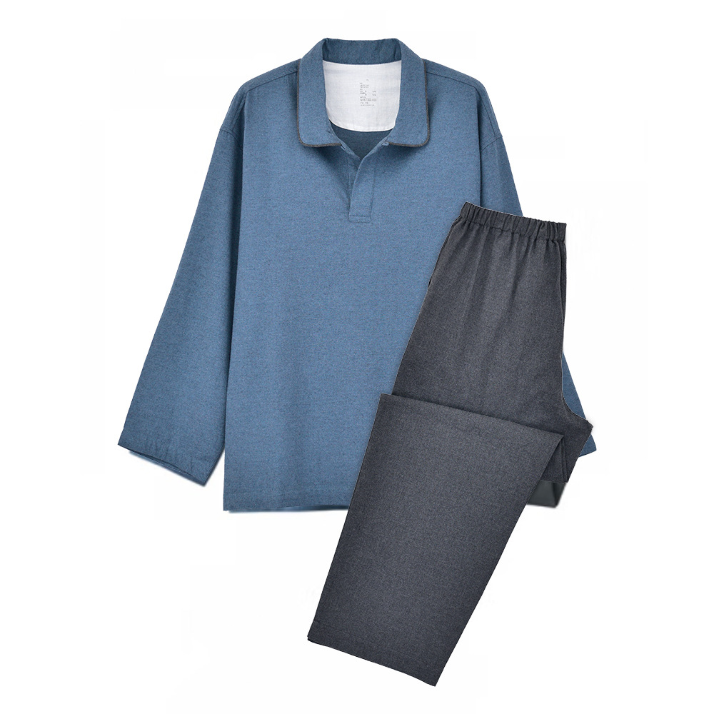 인쇄되지 않은 코튼 플란넬 파자마 남성용 비사이드 솔기 홈 의류 세트 봄과 가을 코튼 샌딩 옷깃 생활복