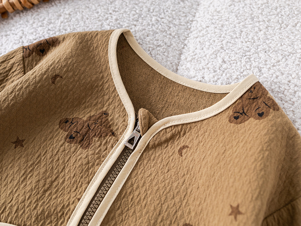 • 브라운 컬러 - 전체에 오각별 곰 프린트 - 3종 세트 MYT