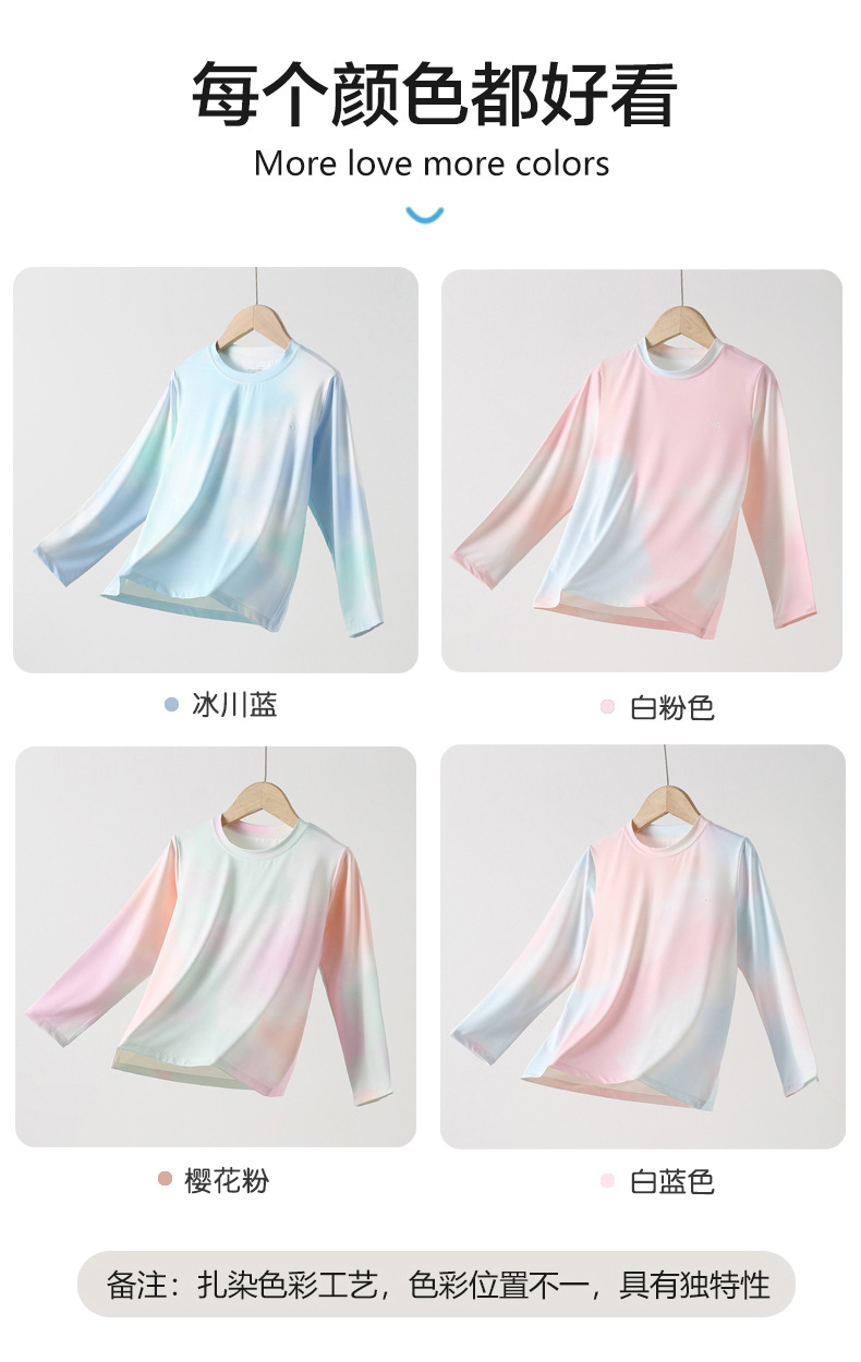 여름 어린이 티셔츠 긴팔 어린이 타이 염료 빠른 건조 탑 셔츠 소년 소녀 아이스 실크 티셔츠 도매스토어 가기