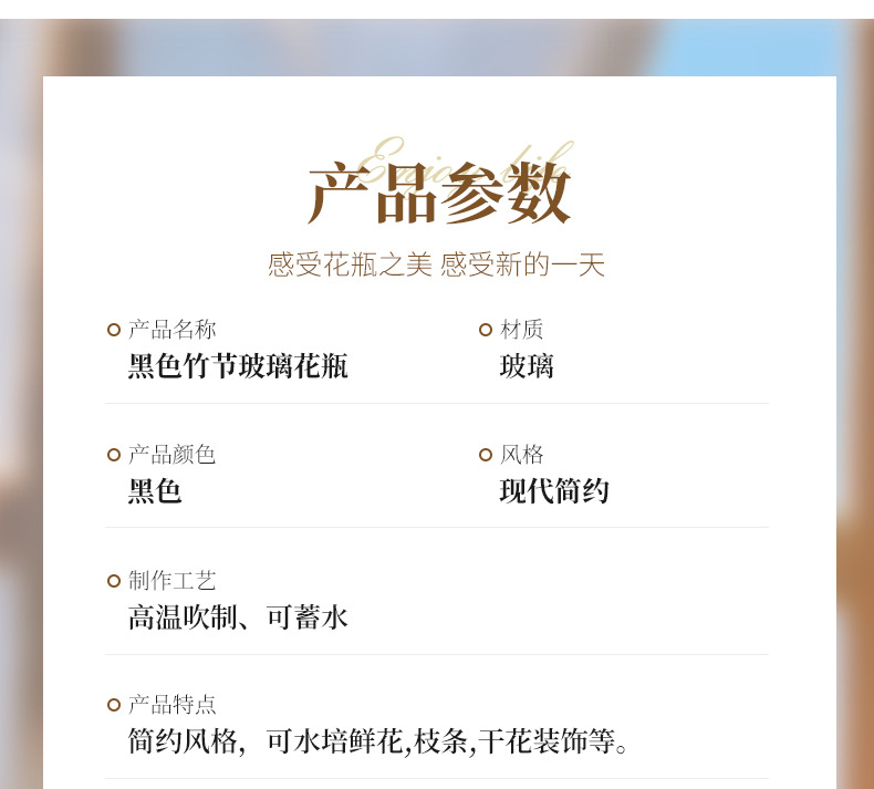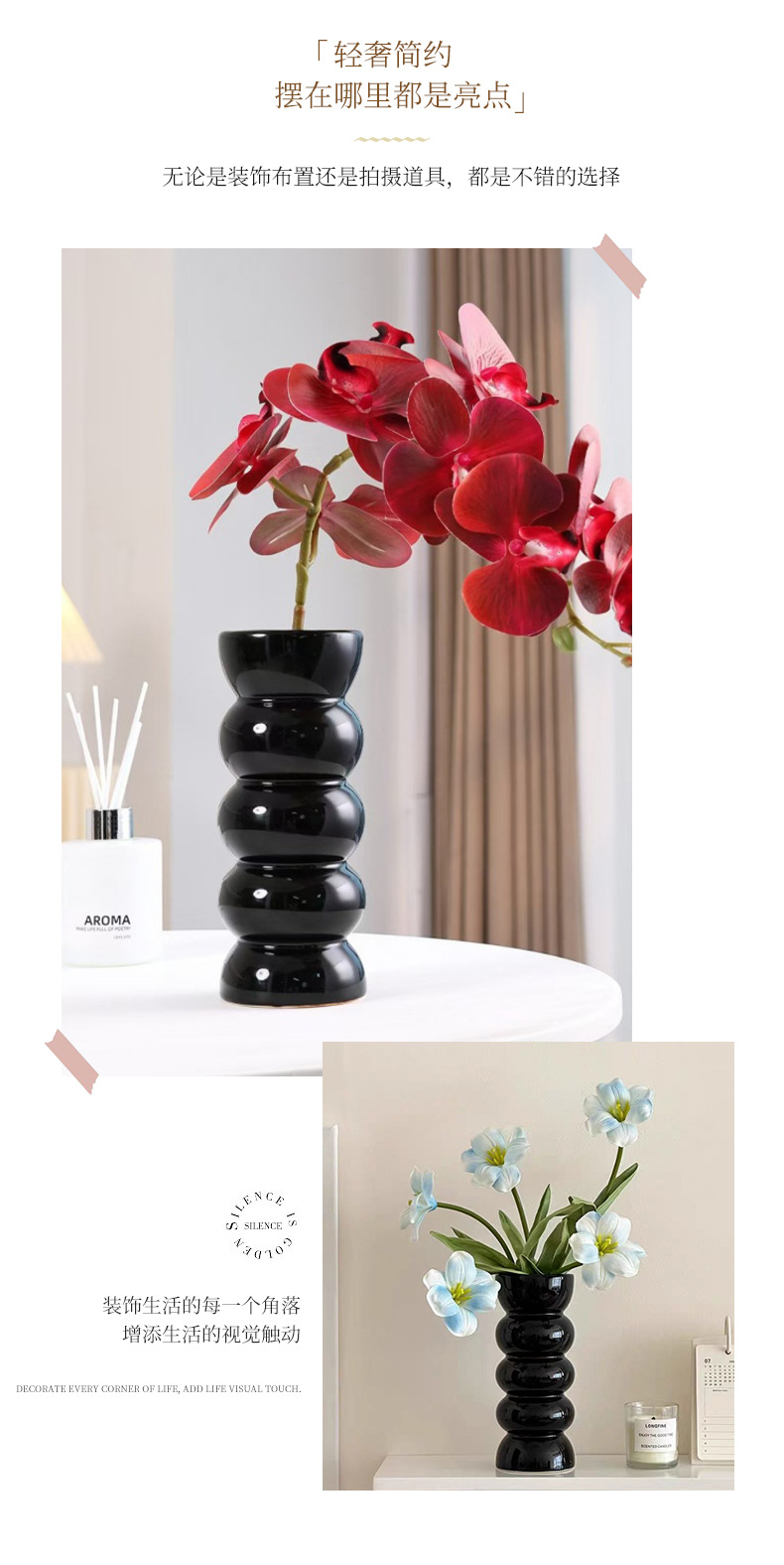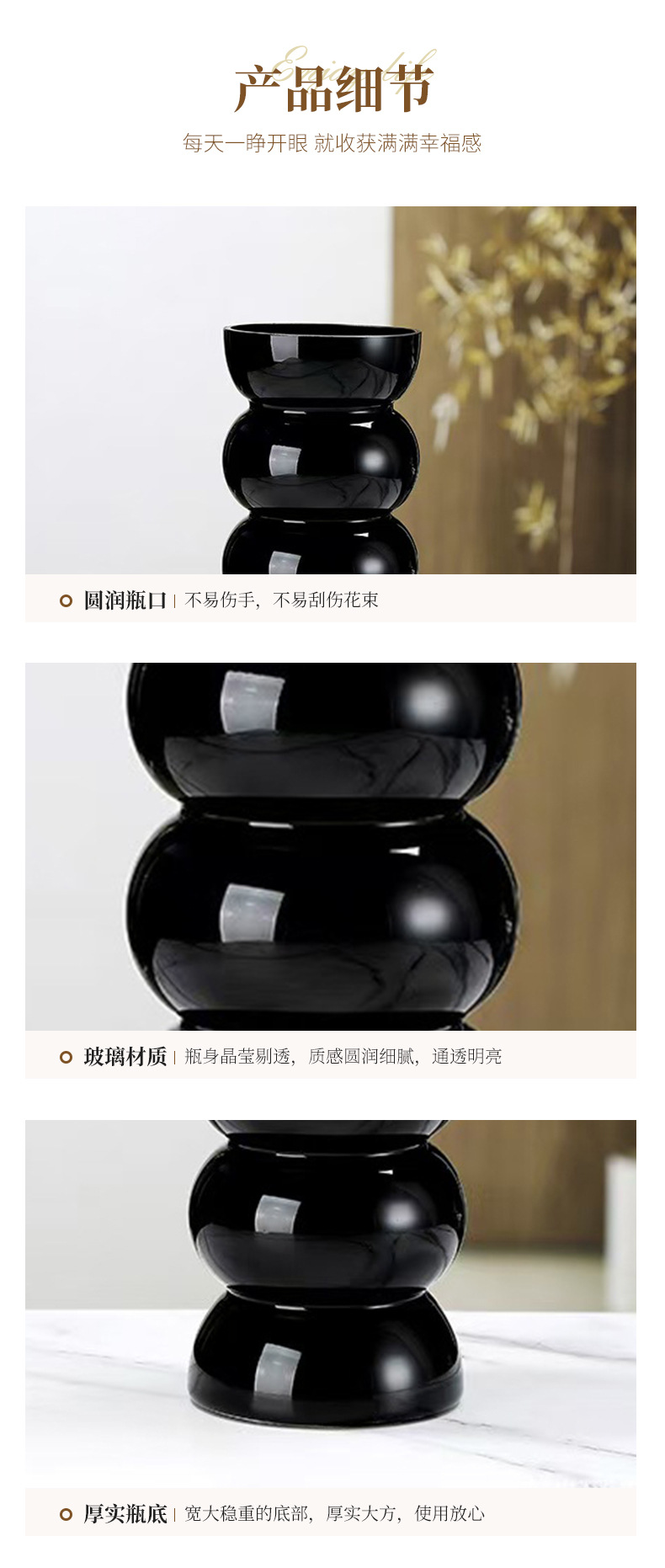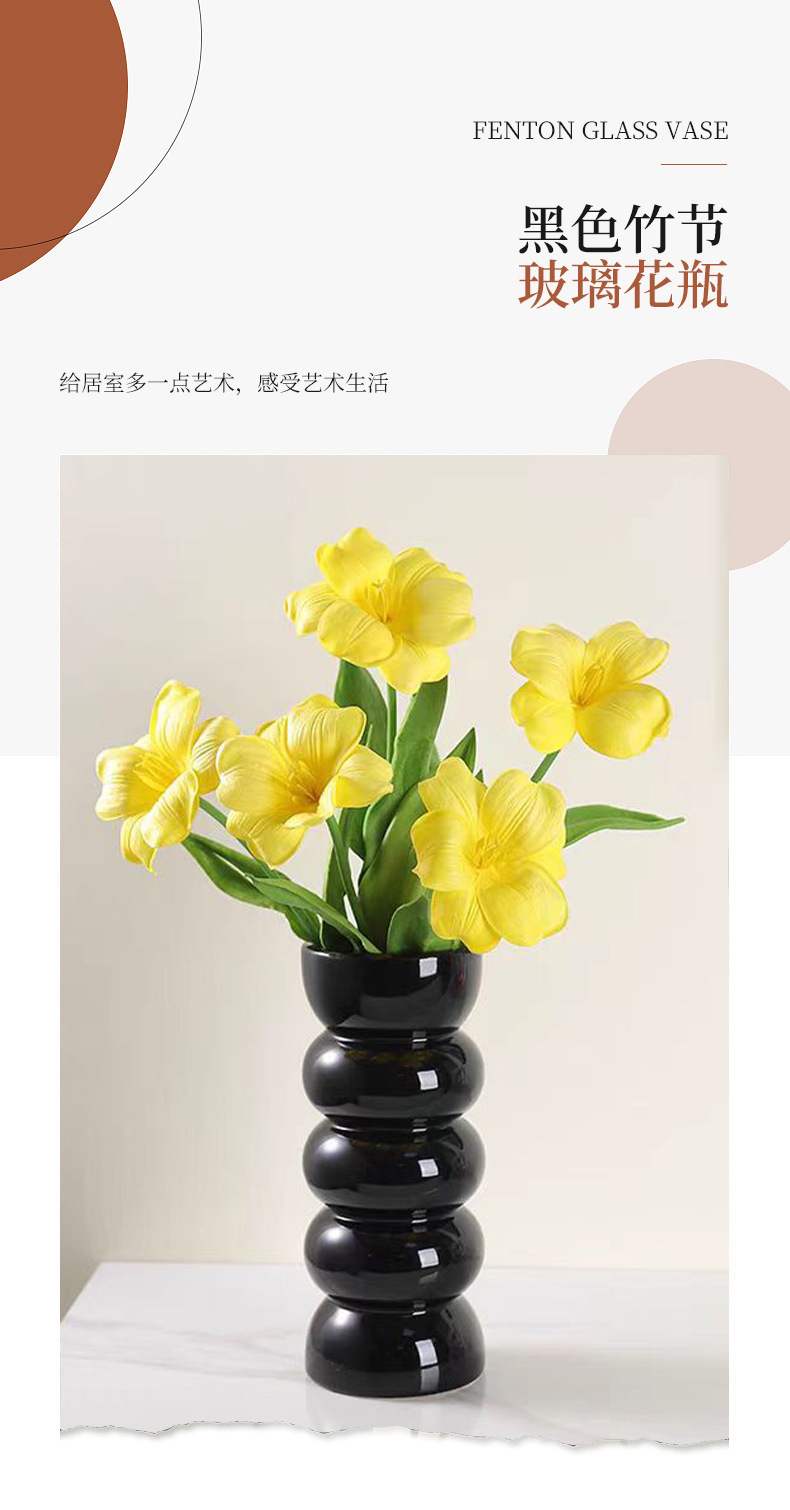 검은색 대나무 무늬 유리 꽃병, 고급스러운 디자인의 가정용, 거실 및 식당용 꽃꽂이 용기, 테이블 장식용 레트로 꽃병스토어 가기