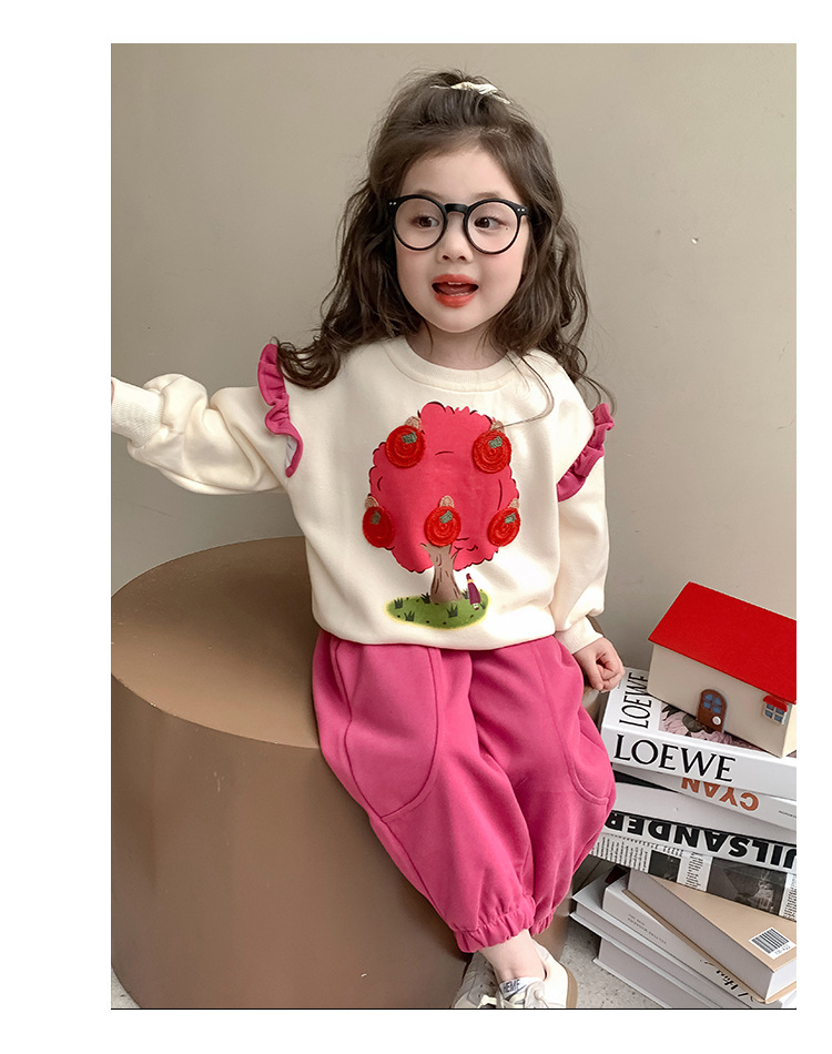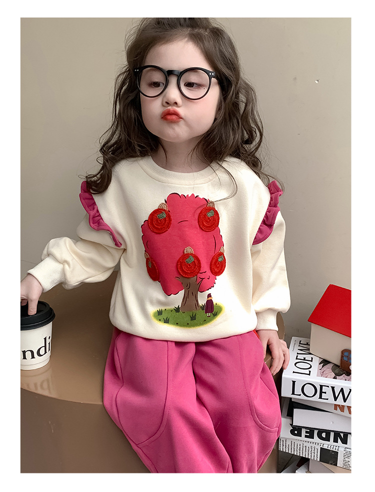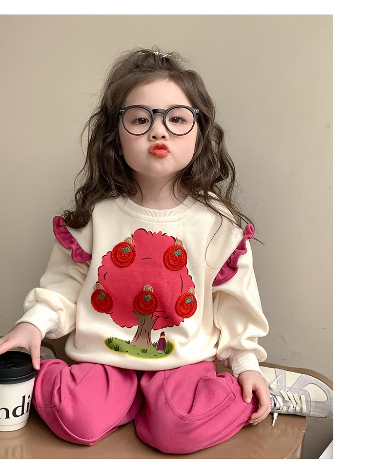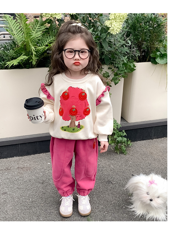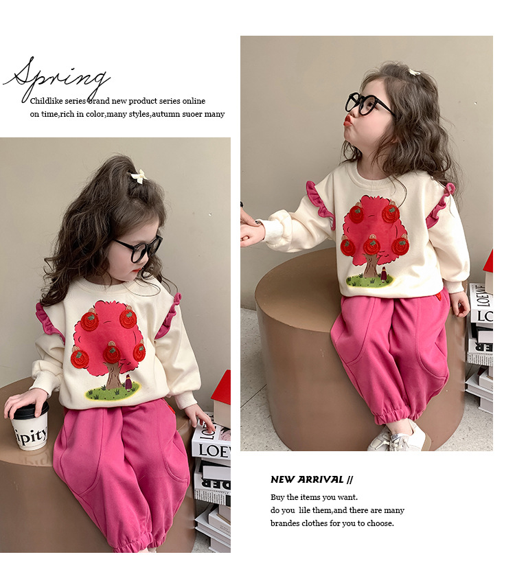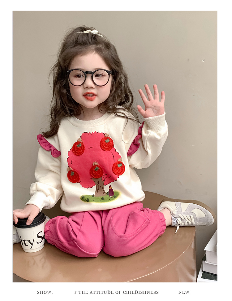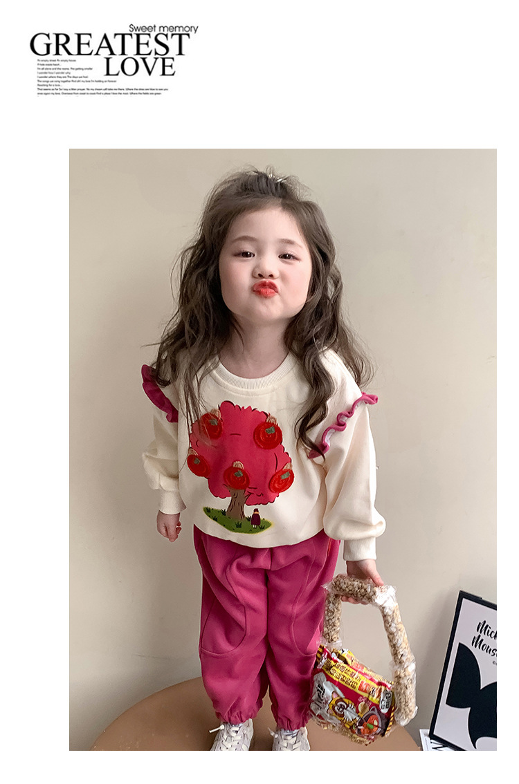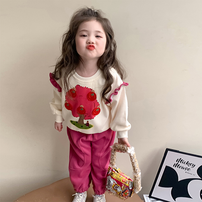 여아 레이스 소매 사과나무 세트 봄 가을 스타일 아동 한국 패션 여아 스웨트셔츠 투피스 세트 트렌디스토어 가기
