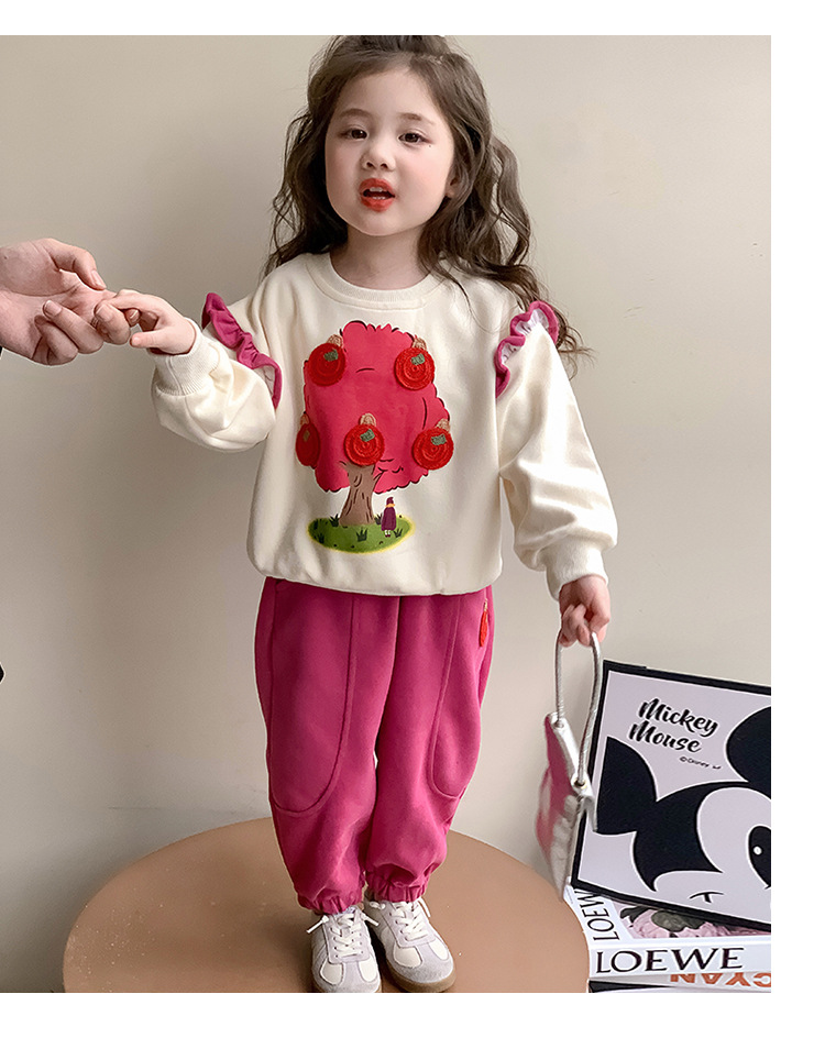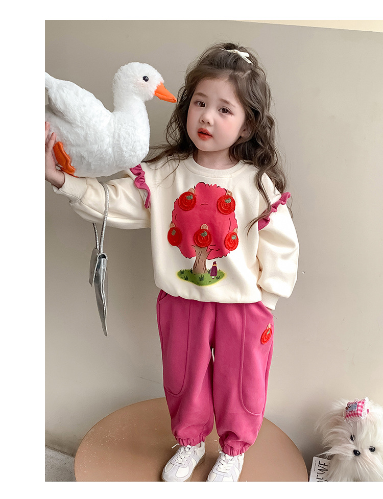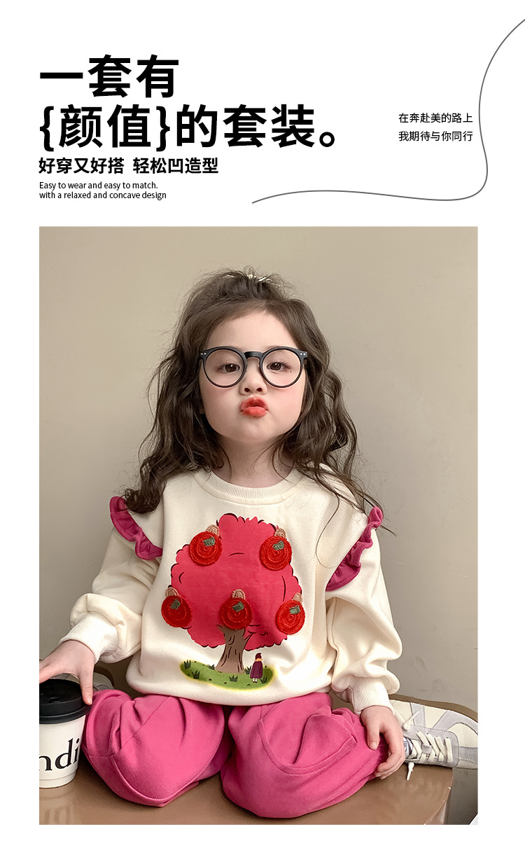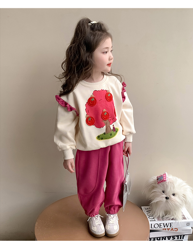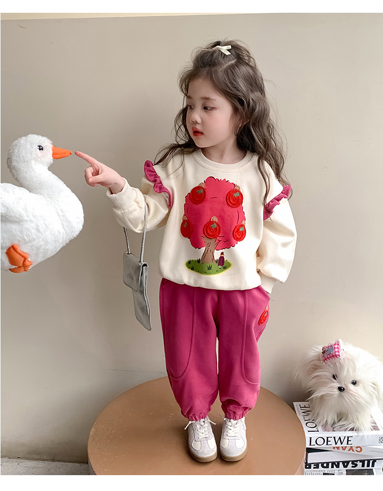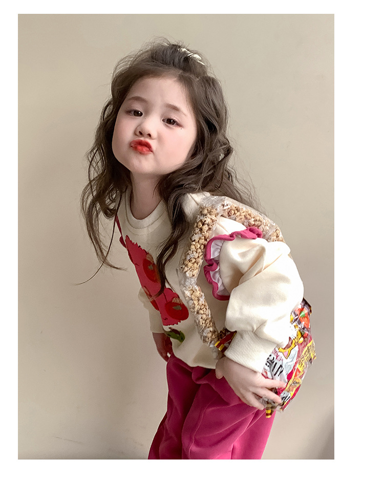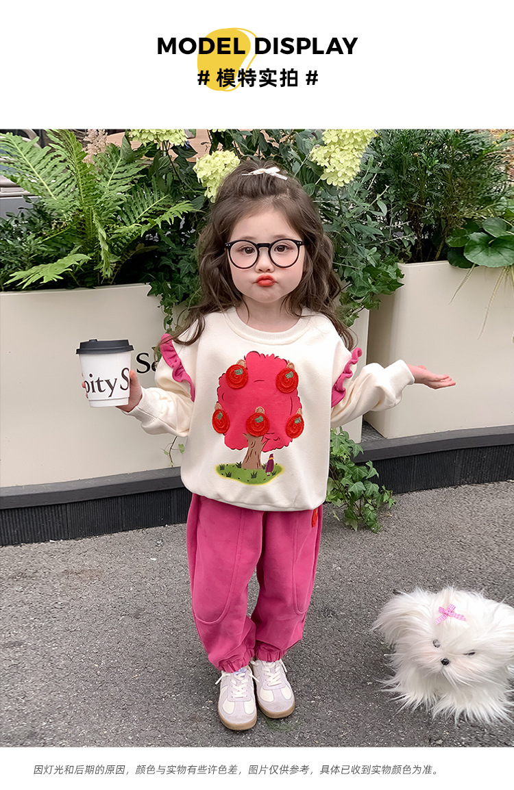 여아 레이스 소매 사과나무 세트 봄 가을 스타일 아동 한국 패션 여아 스웨트셔츠 투피스 세트 트렌디스토어 가기