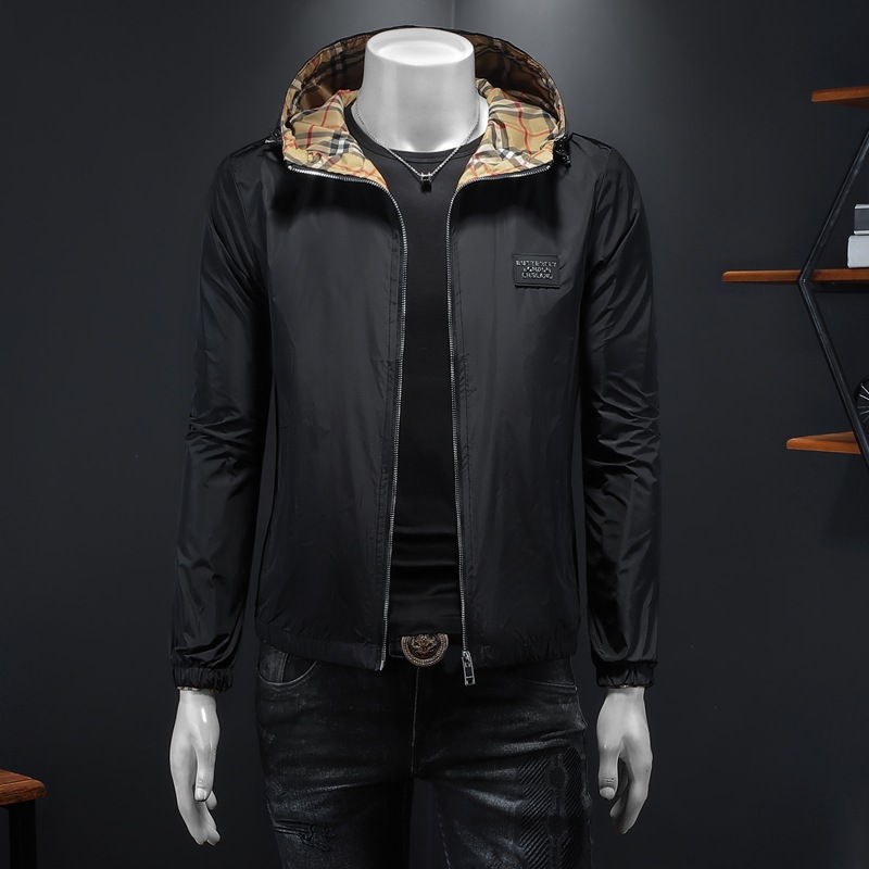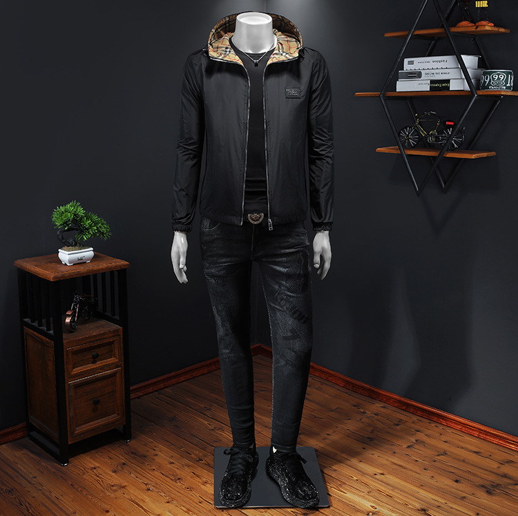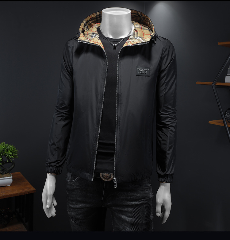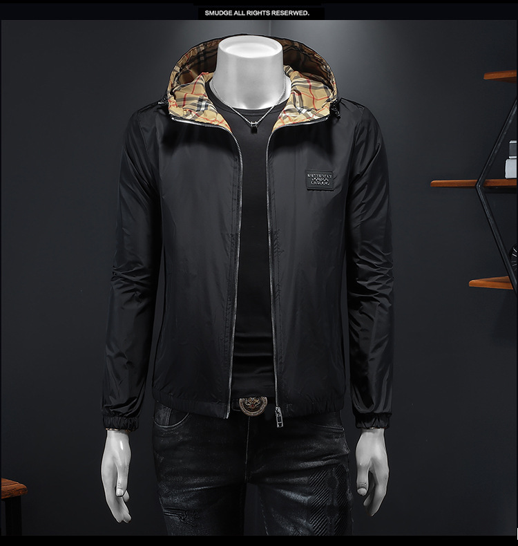 유럽 역 봄과 가을 새로운 패션 브랜드 플러스 사이즈 후드 자켓 남성 격자 무늬 비즈니스 캐주얼 트렌디 슬림 핏 재킷스토어 가기