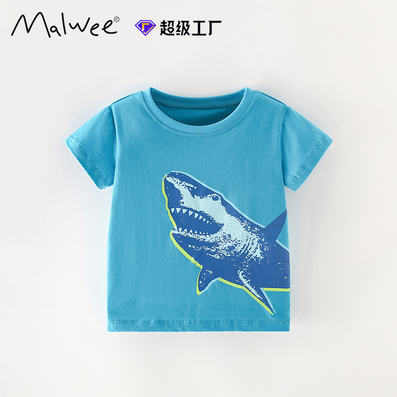 국경 간 말위 소년 둥근 목 셔츠 여름 새로운 유럽과 미국 어린이 캐주얼 짧은 소매 어린이 티셔츠 탑스토어 가기