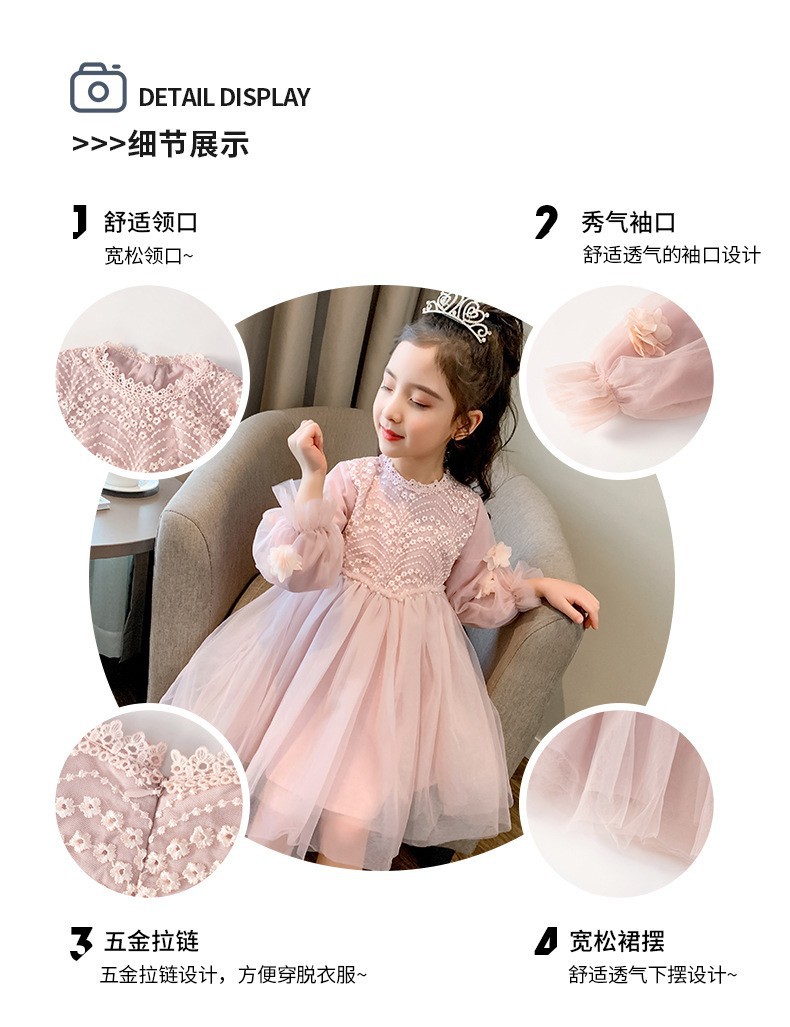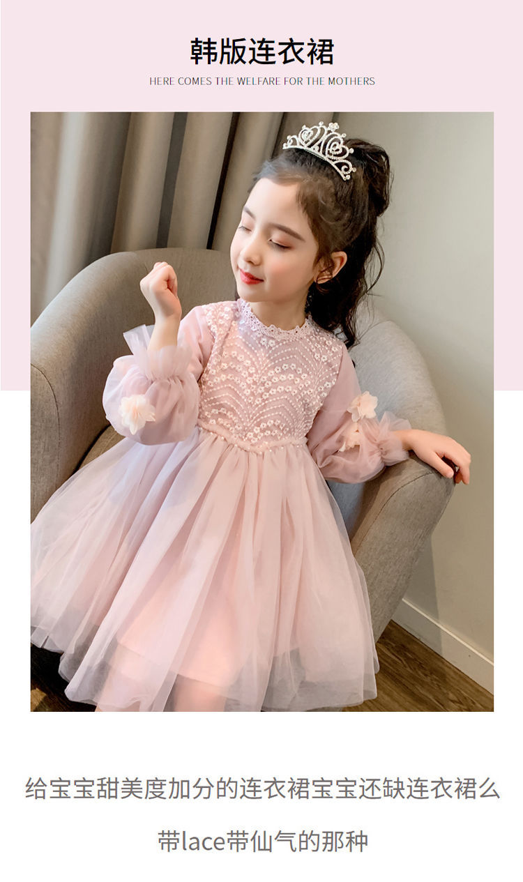 여자 원피스 가을 겨울 기모 2025 새로운 어린이 봄 가을 베일 원피스 달콤한 레이스 한국 스타일 원피스 공주 원피스스토어 가기