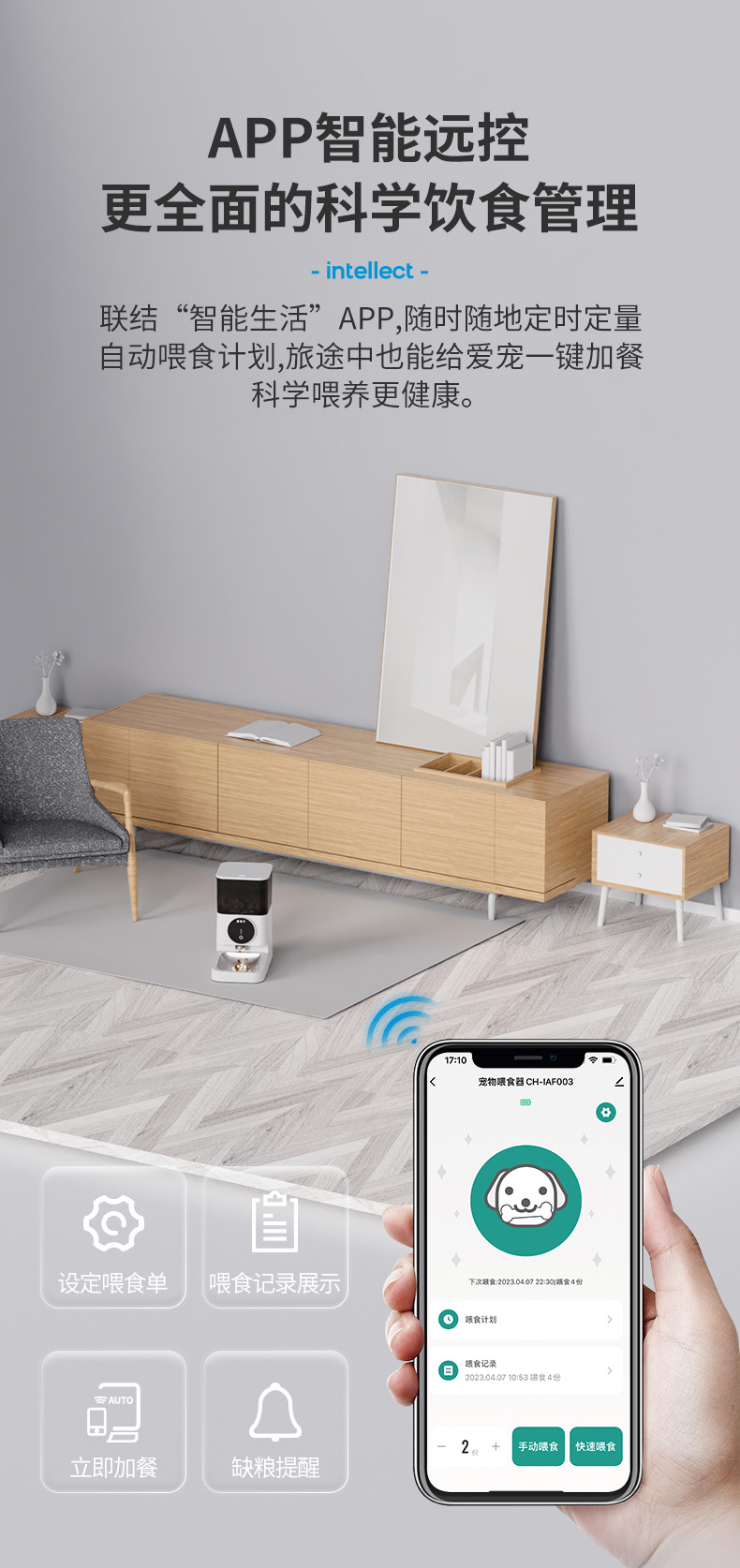 소스 공장 스마트 피더 타이밍 Wi-Fi 연결 애완 동물 피더스토어 가기