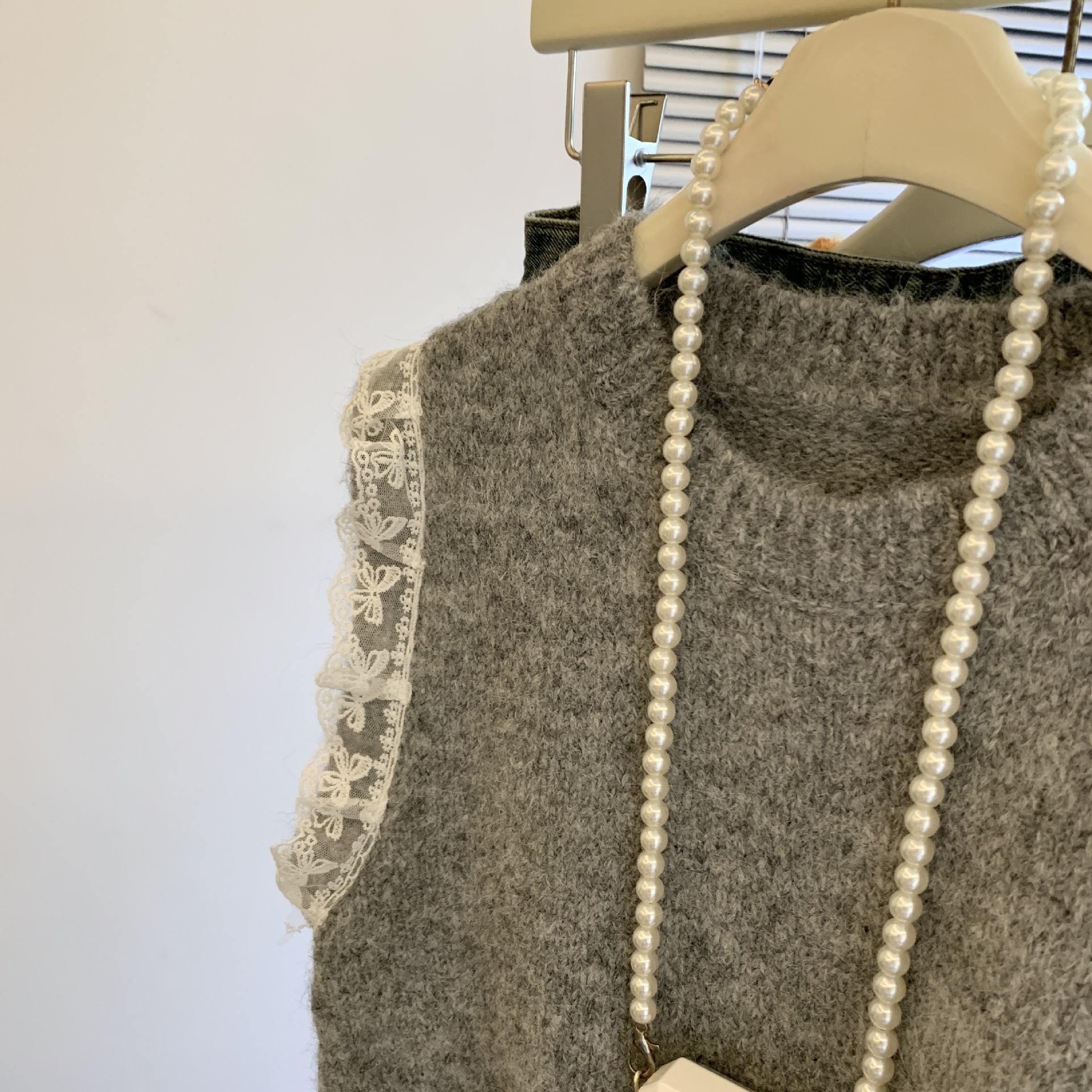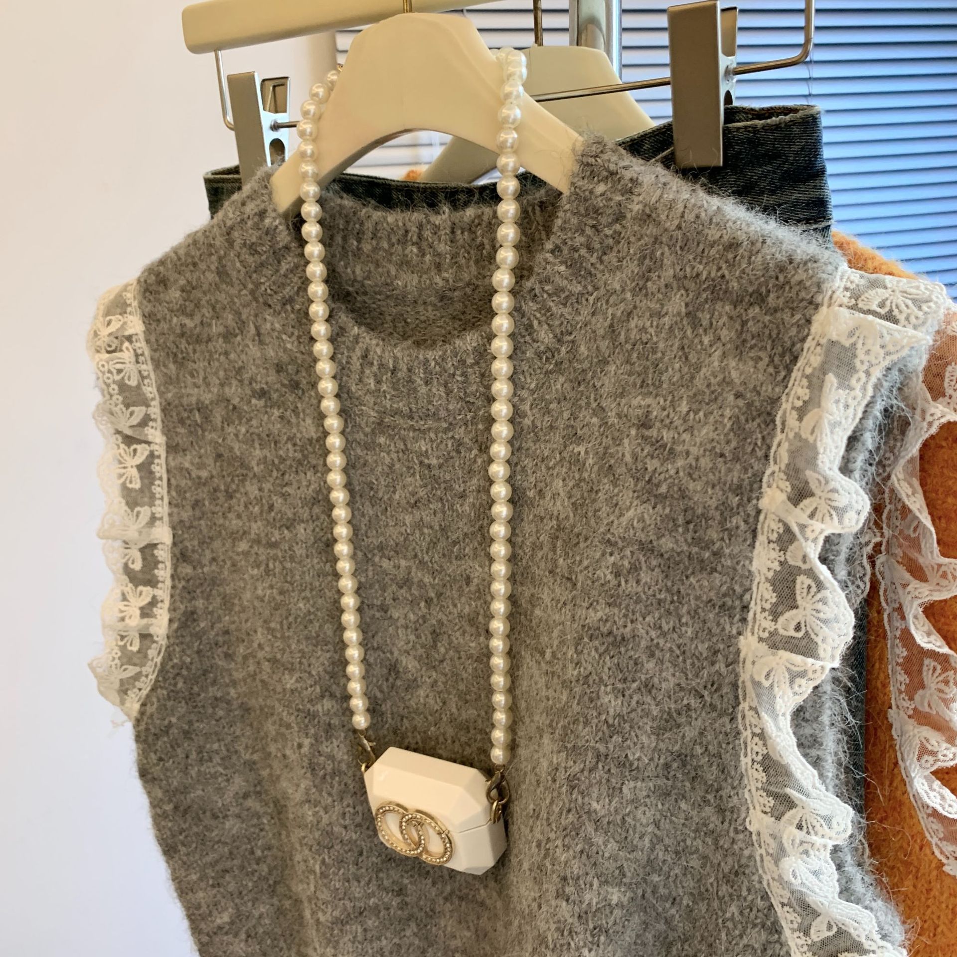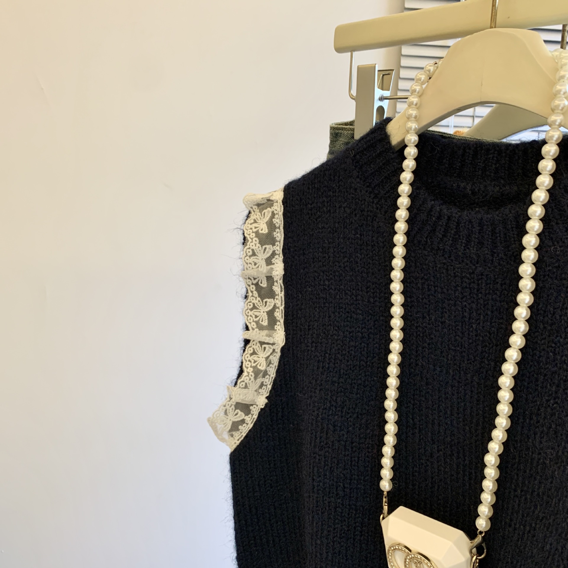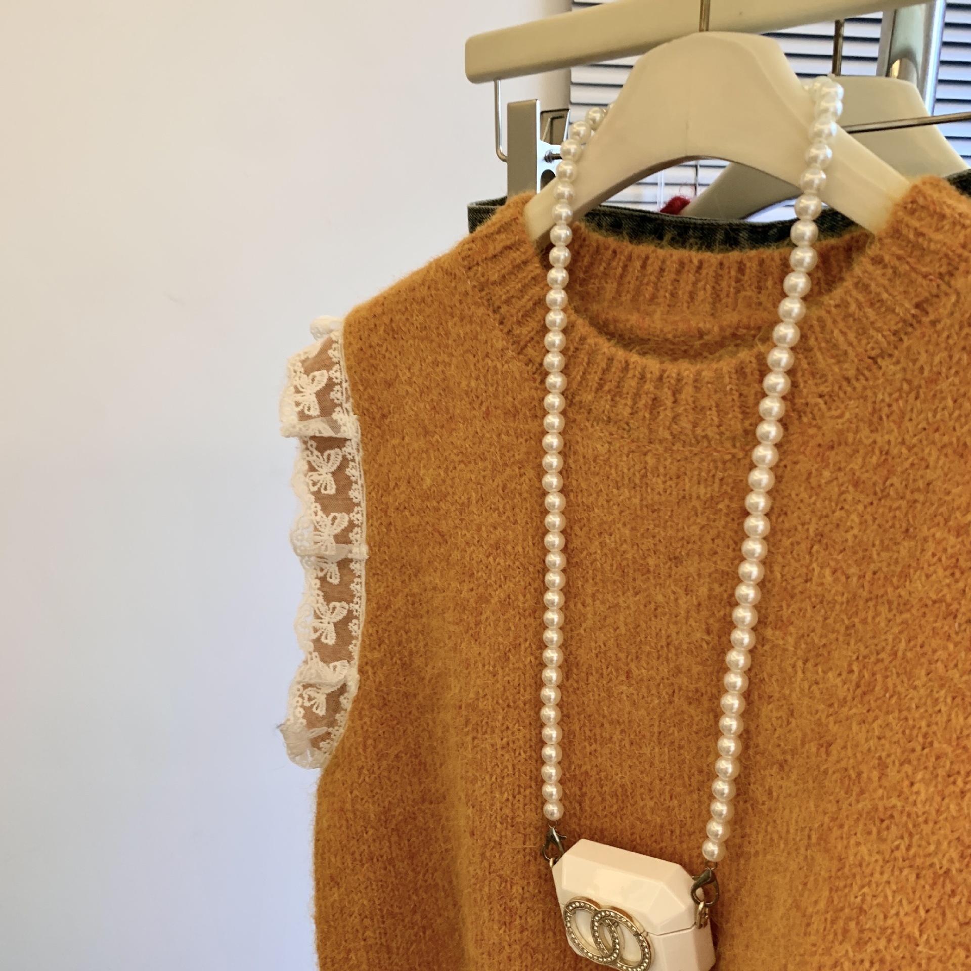 여성을위한 레트로 레이스 스플 라이스 민소매 니트 조끼 가을, 겨울 라운드 넥 느슨한 게으른 스타일 스웨터 탑