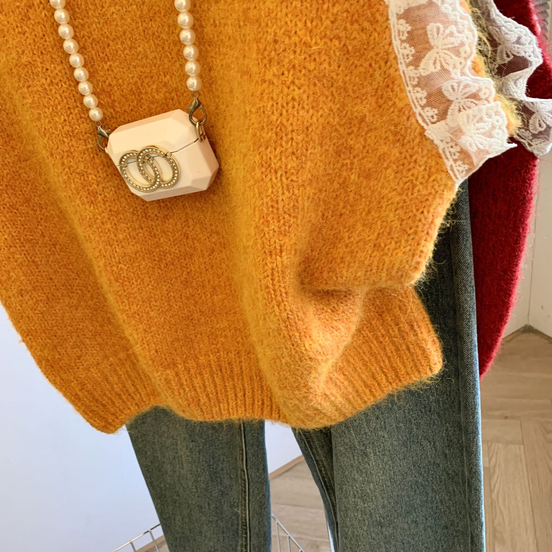 여성을위한 레트로 레이스 스플 라이스 민소매 니트 조끼 가을, 겨울 라운드 넥 느슨한 게으른 스타일 스웨터 탑스토어 가기