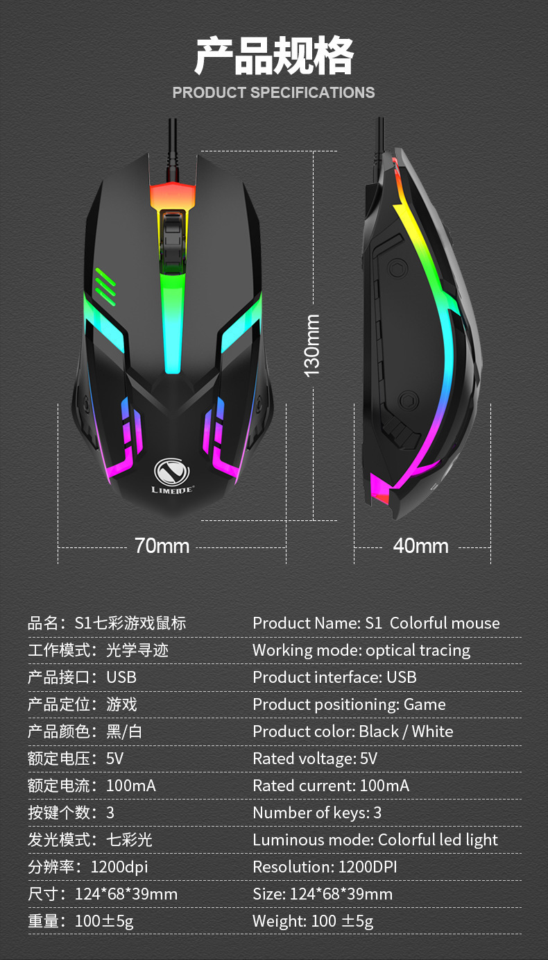 Limei S1 게임 유선 USB 마우스 노트북 데스크탑 컴퓨터 발광 마우스 비즈니스 사무실 제조업체 공급스토어 가기