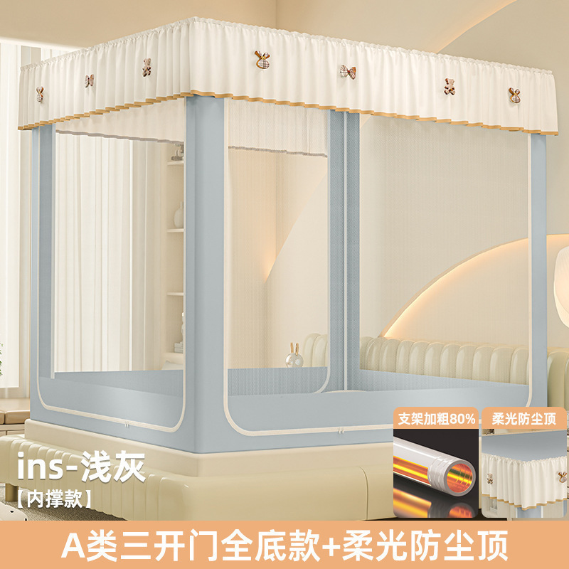 • ins 침대 커튼 스타일 - 라이트 그레이❤️3도어 [클래스 A 암호화 90% 텐트 + 모기방지 및 낙하방지 + 암막커튼 + 방진상판]