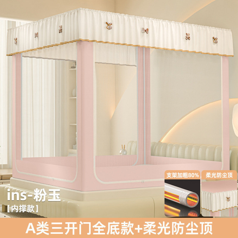 • ins 침대커튼모델-핑크제이드❤️3도어 [클래스 A 암호화 90% 텐트 + 모기방지 및 낙하방지 + 암막커튼 + 방진상판]