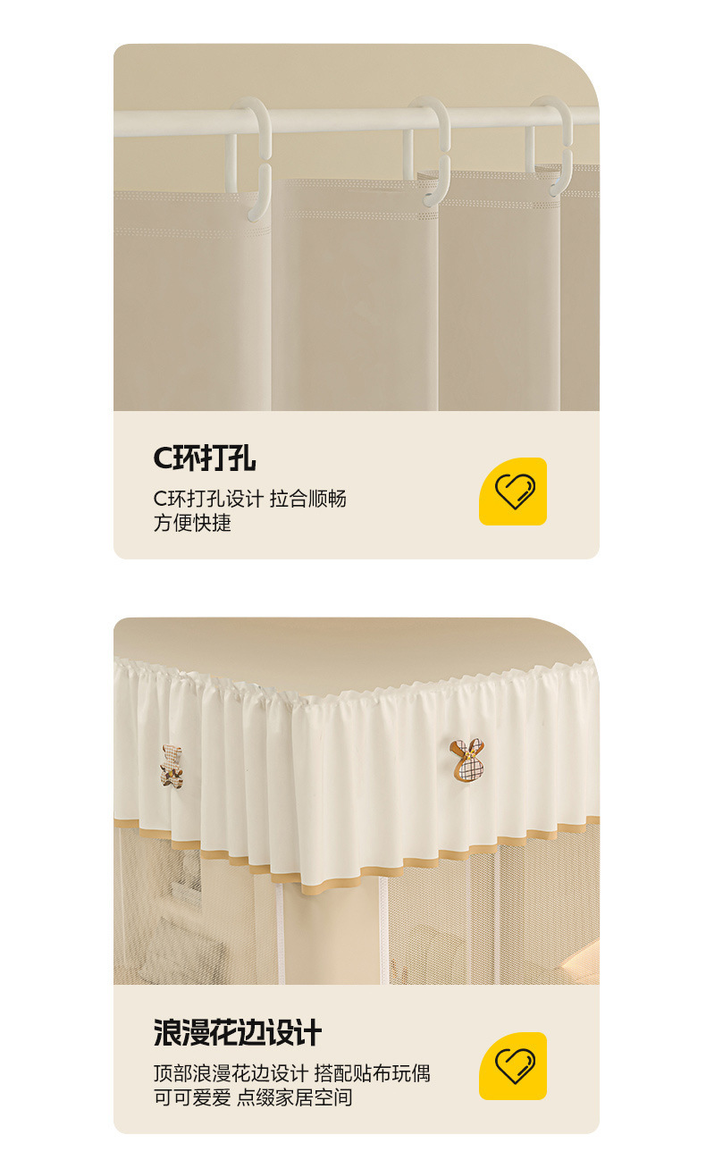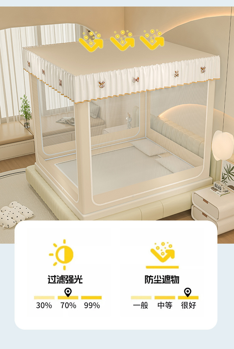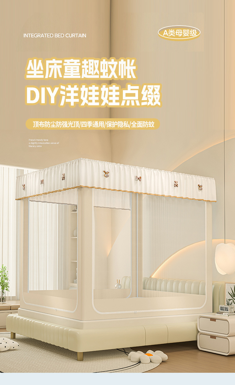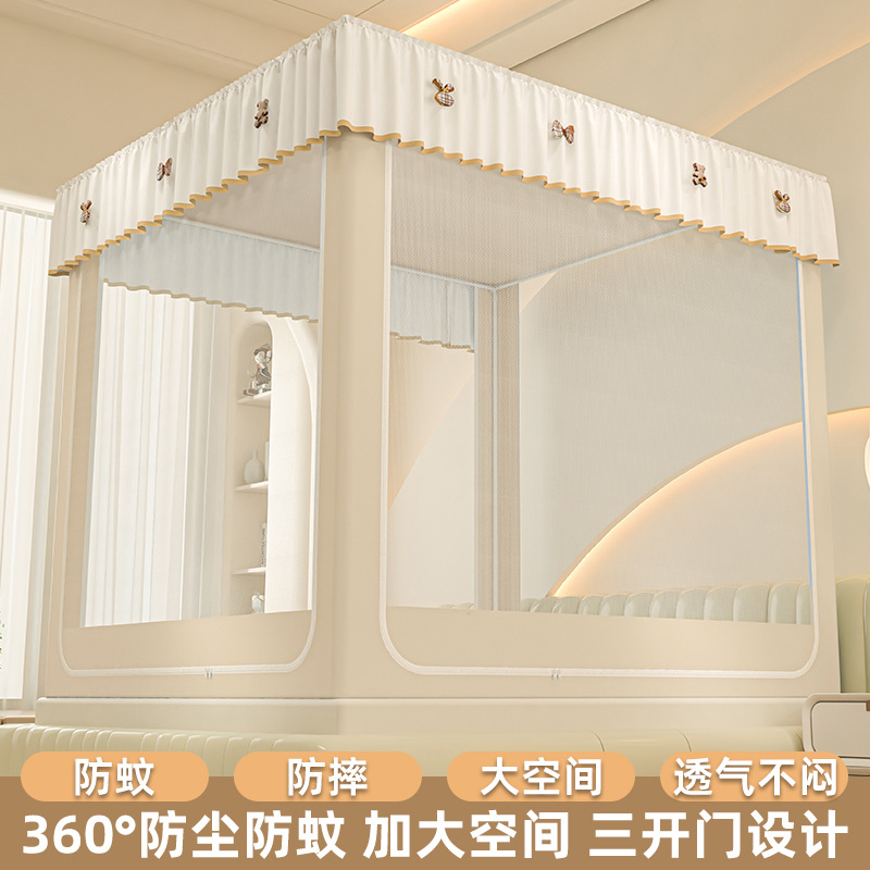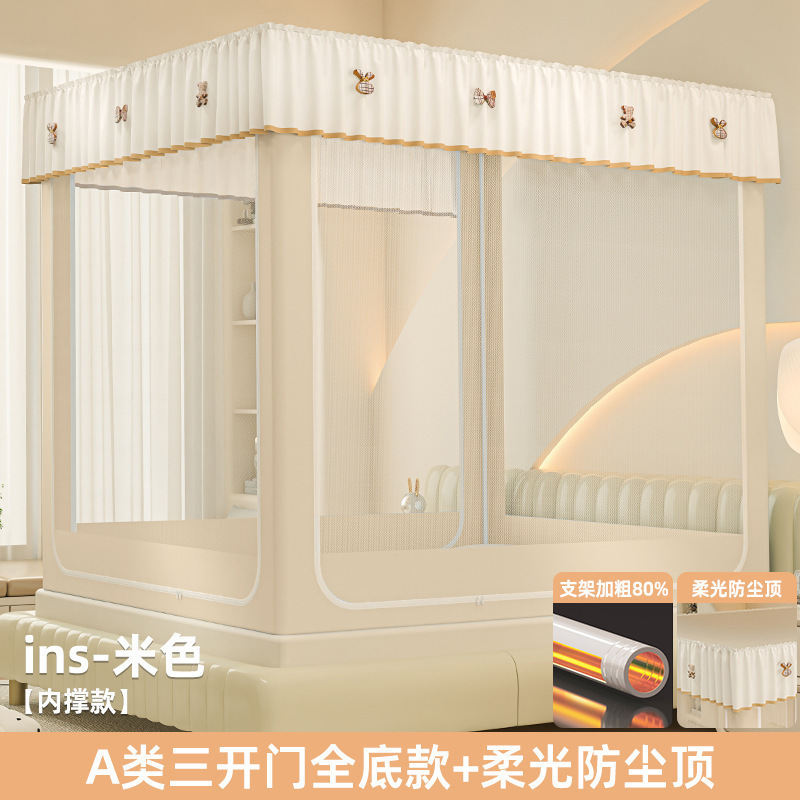 • ins 침대커튼스타일-베이지❤️3도어 [클래스 A 암호화 90% 텐트 + 모기방지 및 낙하방지 + 암막커튼 + 방진상판]