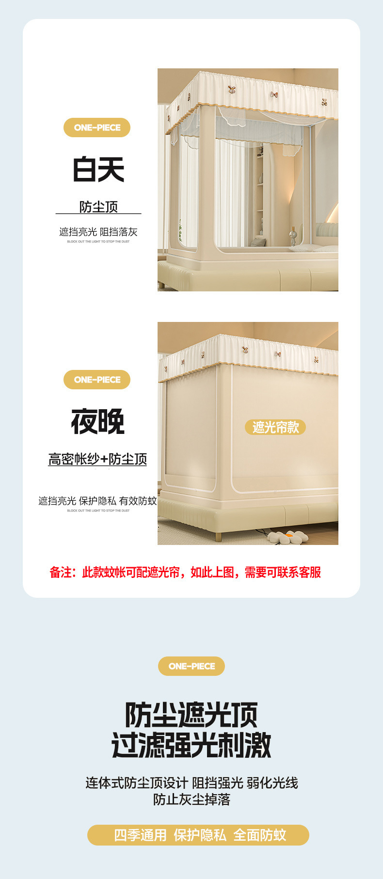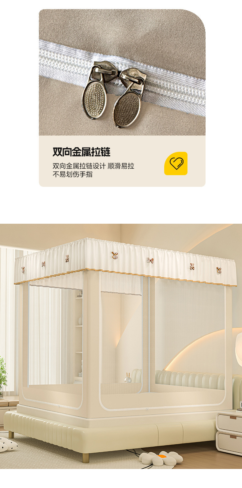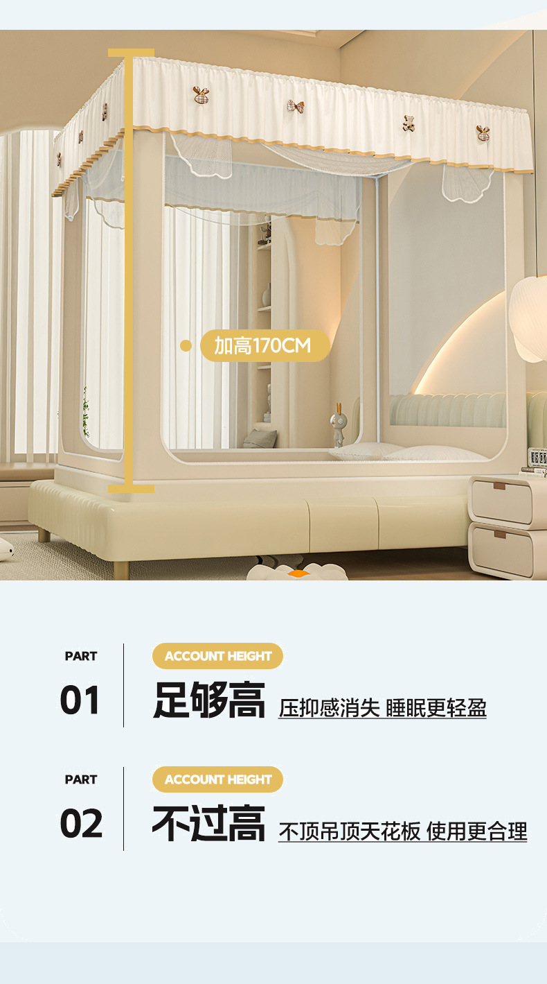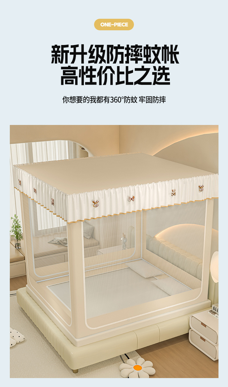 • ins 침대커튼스타일-베이지❤️3도어 [클래스 A 암호화 90% 텐트 + 모기방지 및 낙하방지 + 암막커튼 + 방진상판]