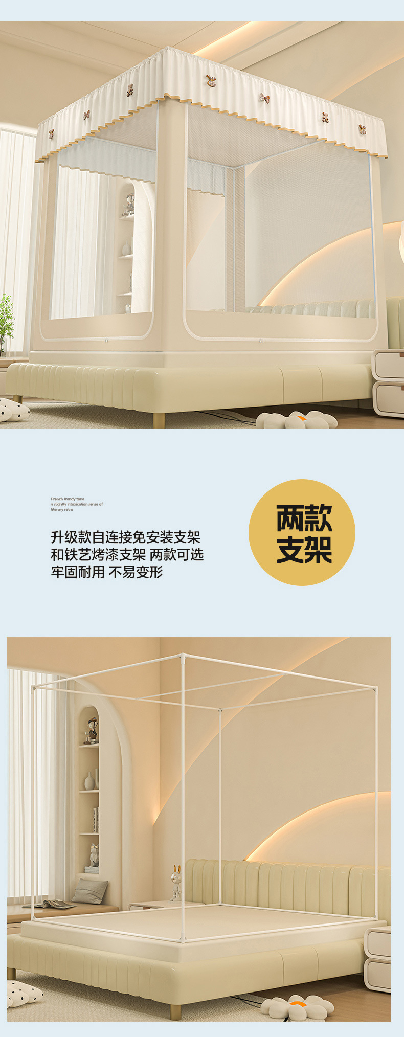 • ins 내부 지지대 모델-베이지❤️3도어 [A급암호텐실 90% + 모기방지, 낙하방지 + 방진상판]