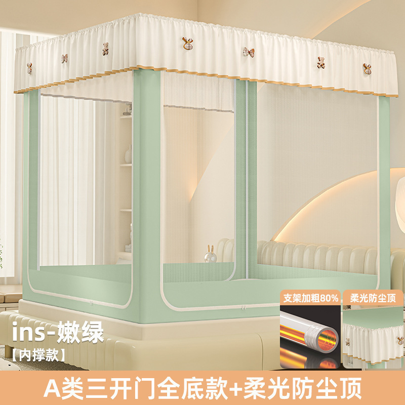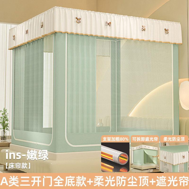 • ins 침대 커튼 스타일 - 밝은 녹색❤️3도어 [클래스 A 암호화 90% 텐트 + 모기방지 및 낙하방지 + 암막커튼 + 방진상판]