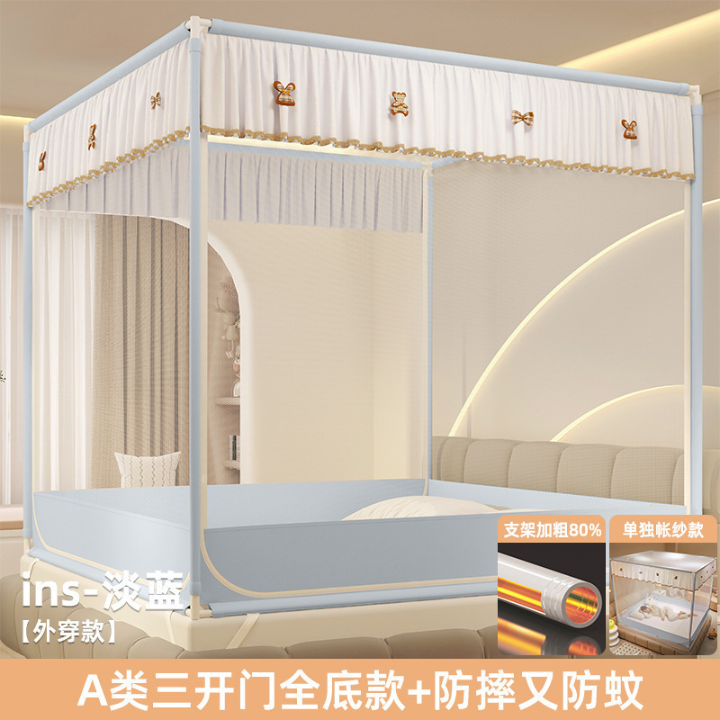 • ins 침대 커튼 스타일-라이트 블루❤️3도어 [클래스 A 암호화 90% 텐트 + 모기방지 및 낙하방지 + 암막커튼 + 방진상판]