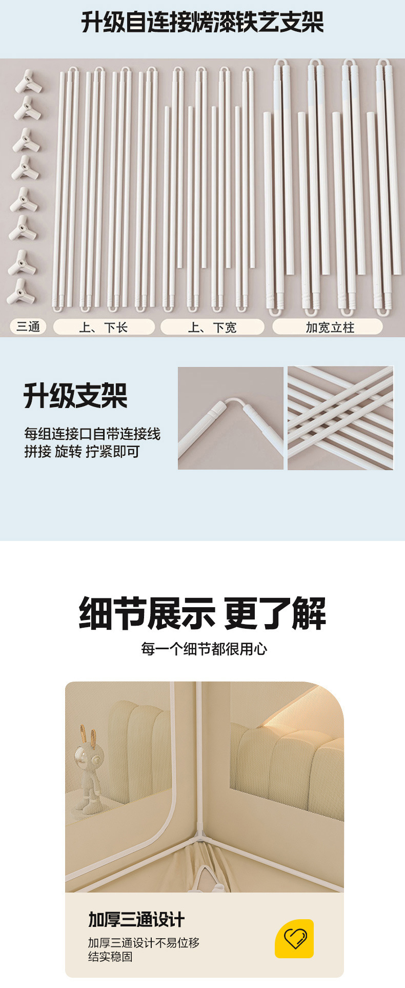 • [굵게 업그레이드✅자체 연결 브래킷] 1.2m 침대에 적합 - 폭 120*길이 200*높이 170
