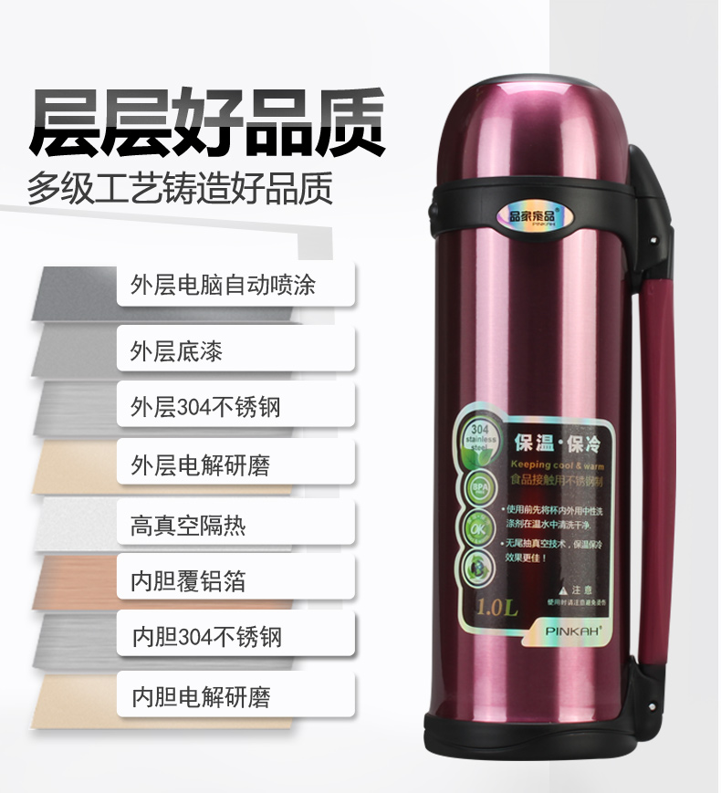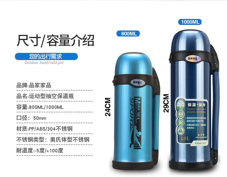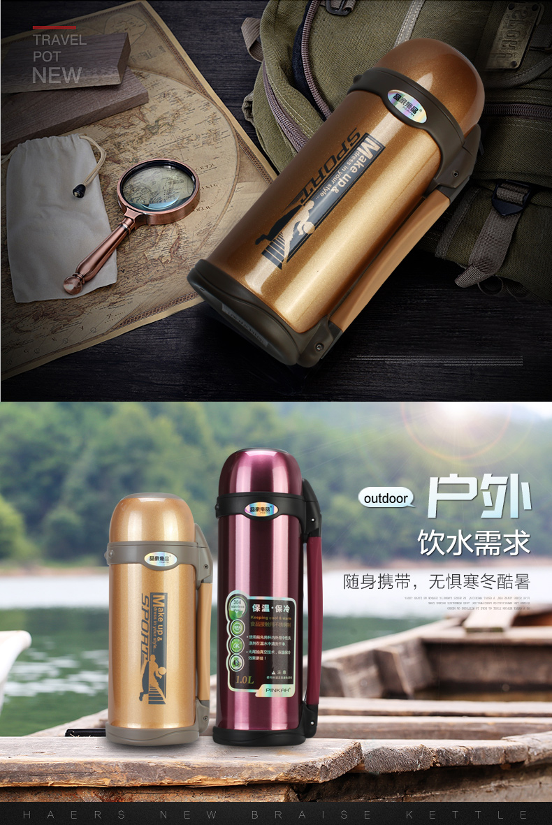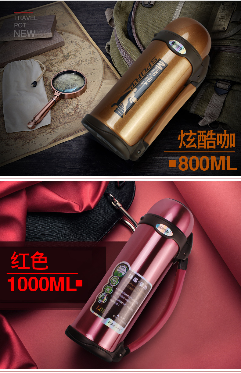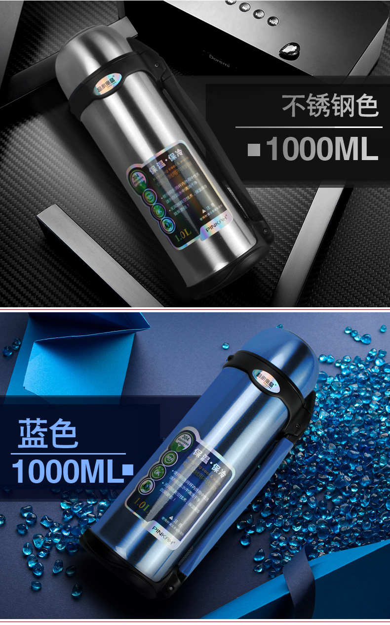 1000ml 보온병 컵 1L 야외 낚시 스포츠 여행 스트랩 캠핑 캠핑 물 컵 스테인레스 스틸 등산 주전자스토어 가기