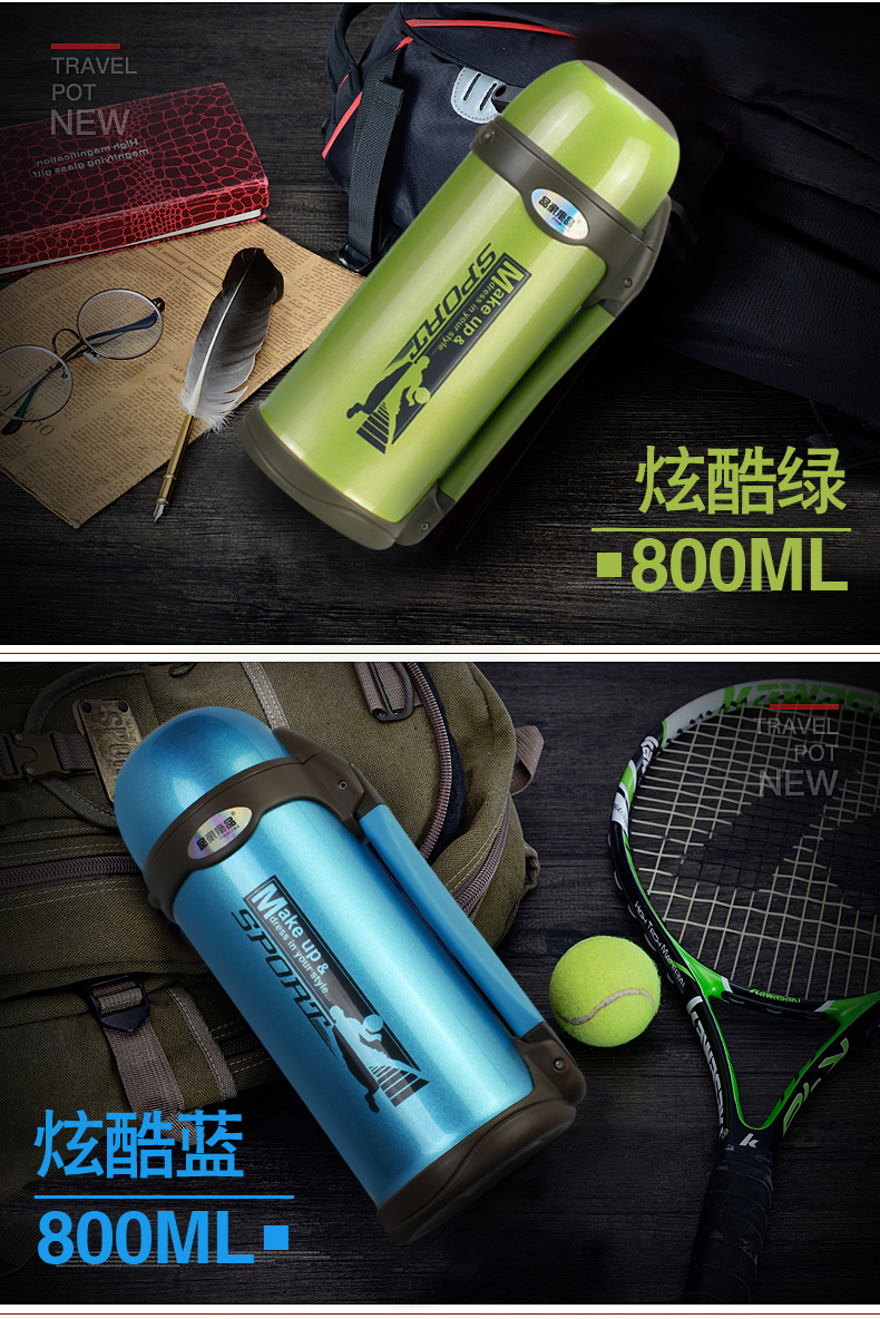 1000ml 보온병 컵 1L 야외 낚시 스포츠 여행 스트랩 캠핑 캠핑 물 컵 스테인레스 스틸 등산 주전자