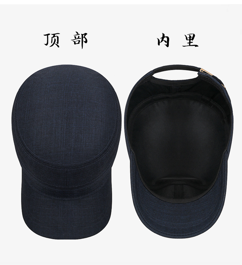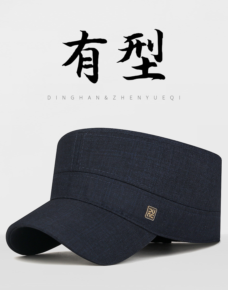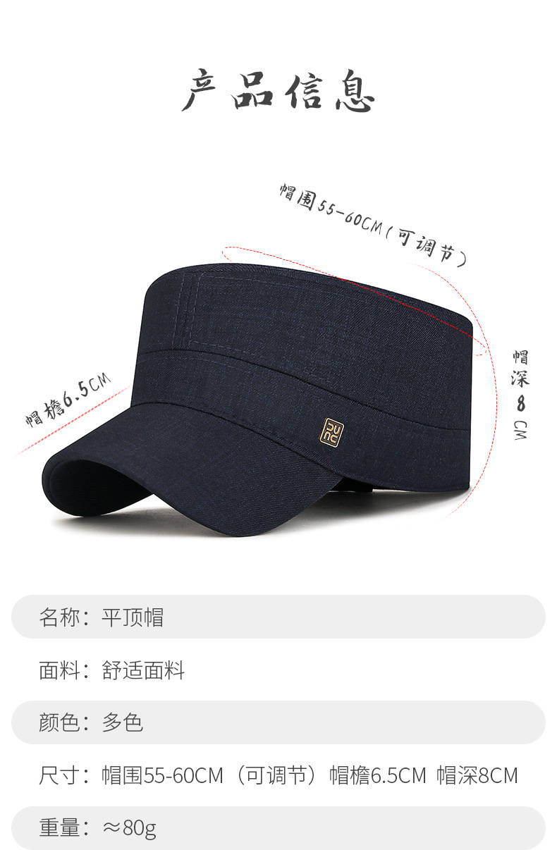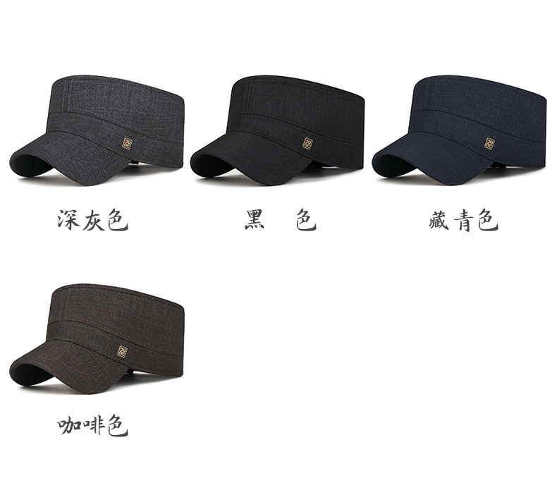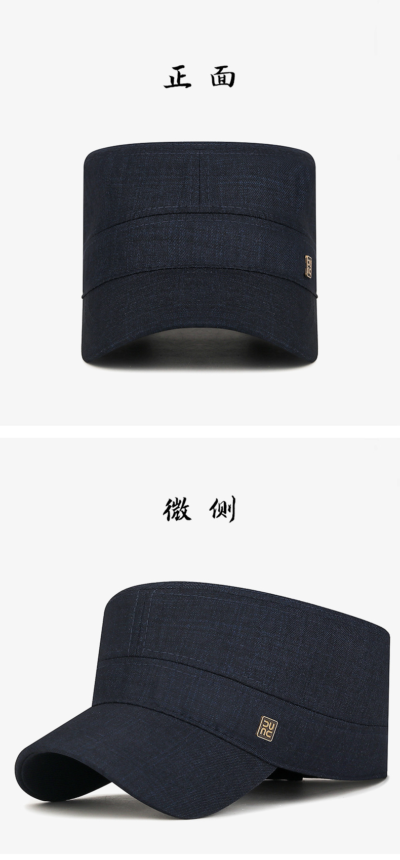 남성용 모자 사계절 세트 패브릭 플랫 탑 모자 중년 비즈니스 메탈 스퀘어 라벨 클래식 우아한 곡선 처마 태양 모자