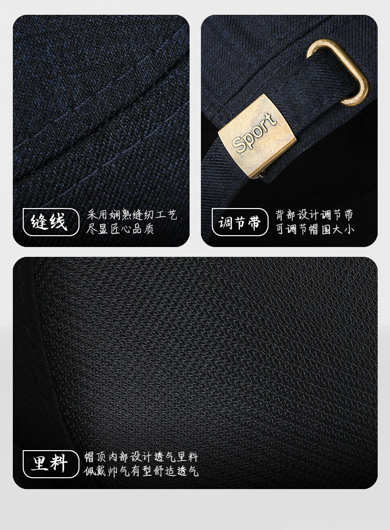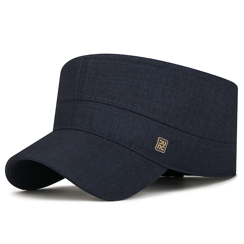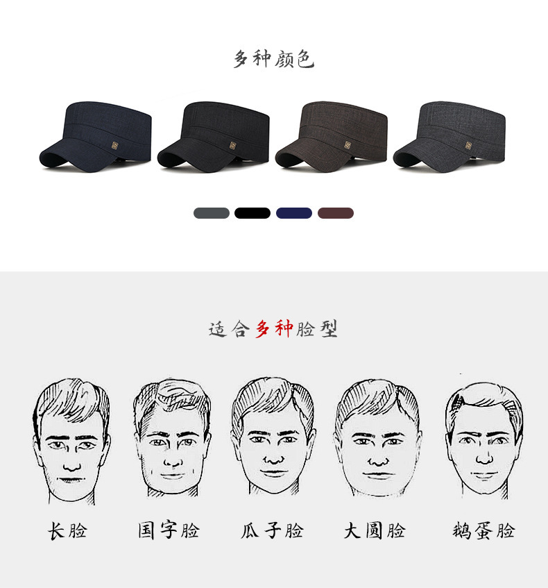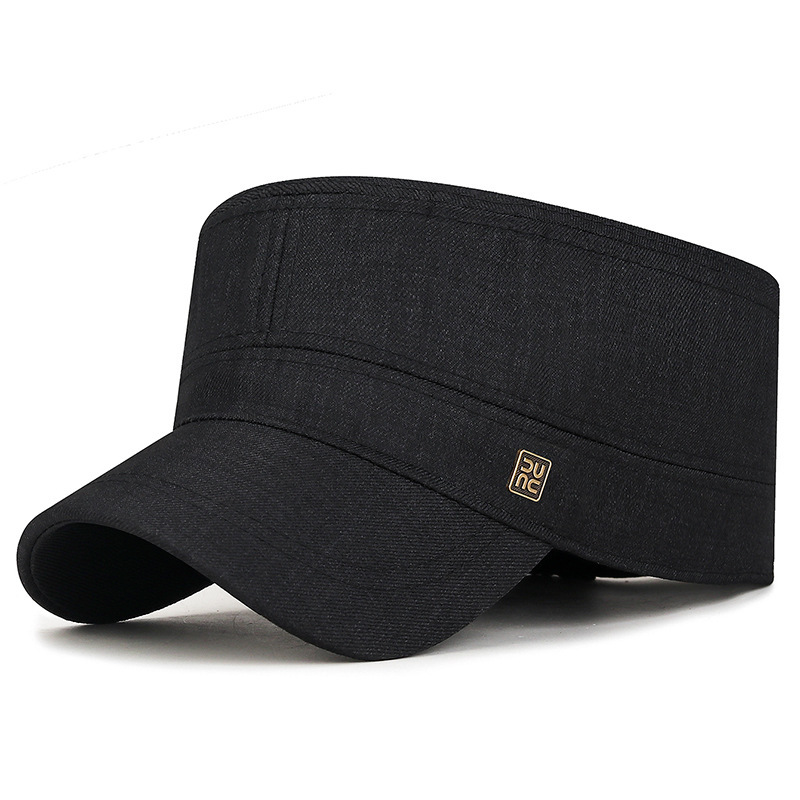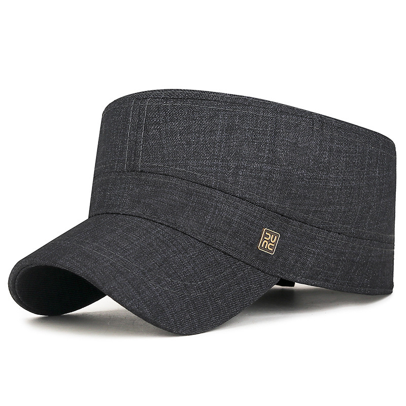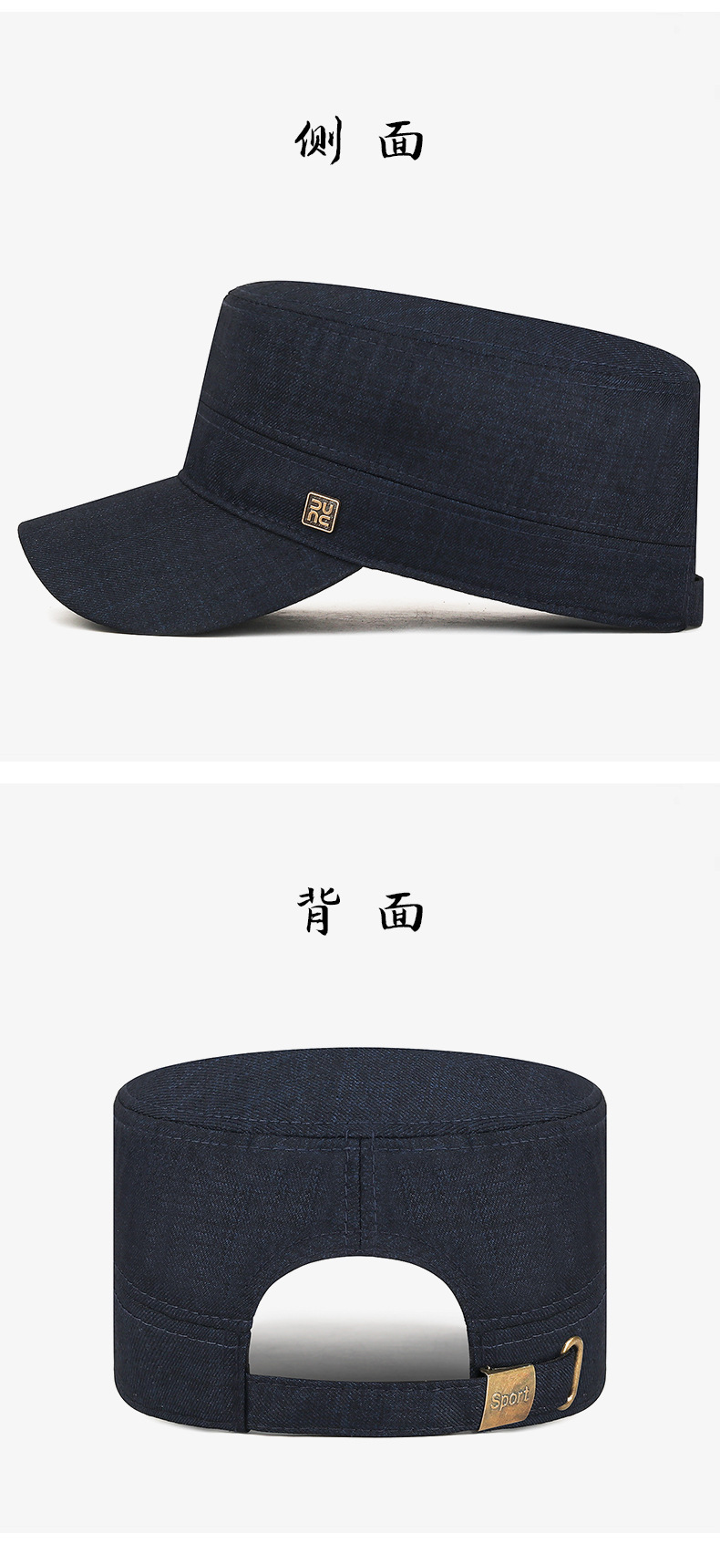 남성용 모자 사계절 세트 패브릭 플랫 탑 모자 중년 비즈니스 메탈 스퀘어 라벨 클래식 우아한 곡선 처마 태양 모자