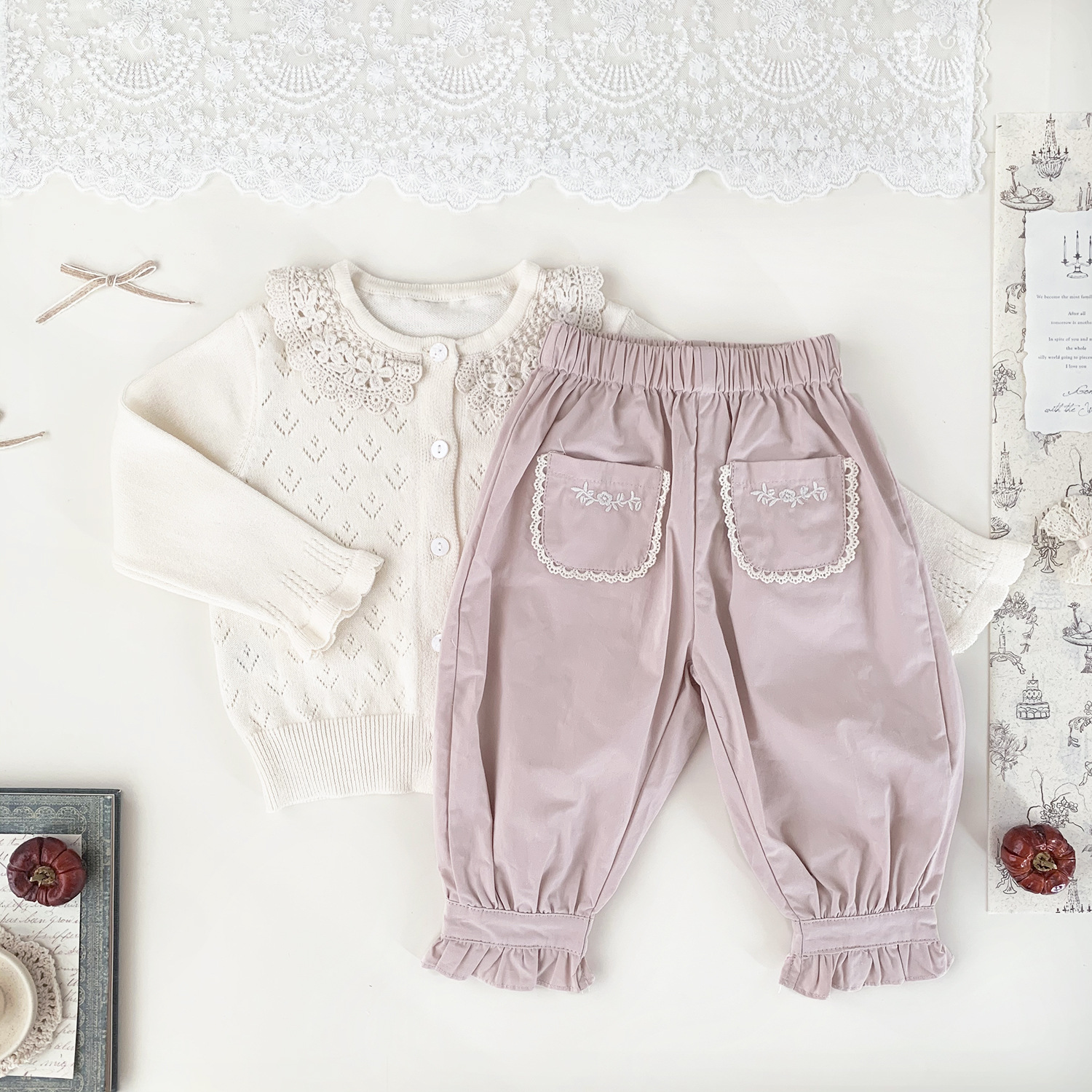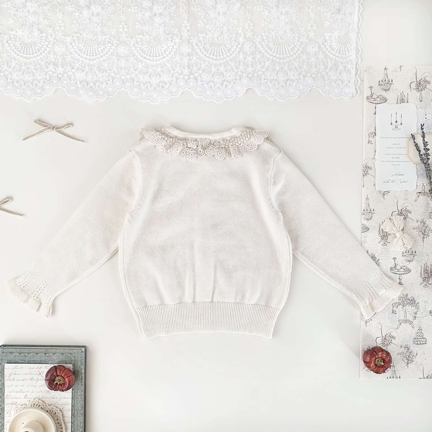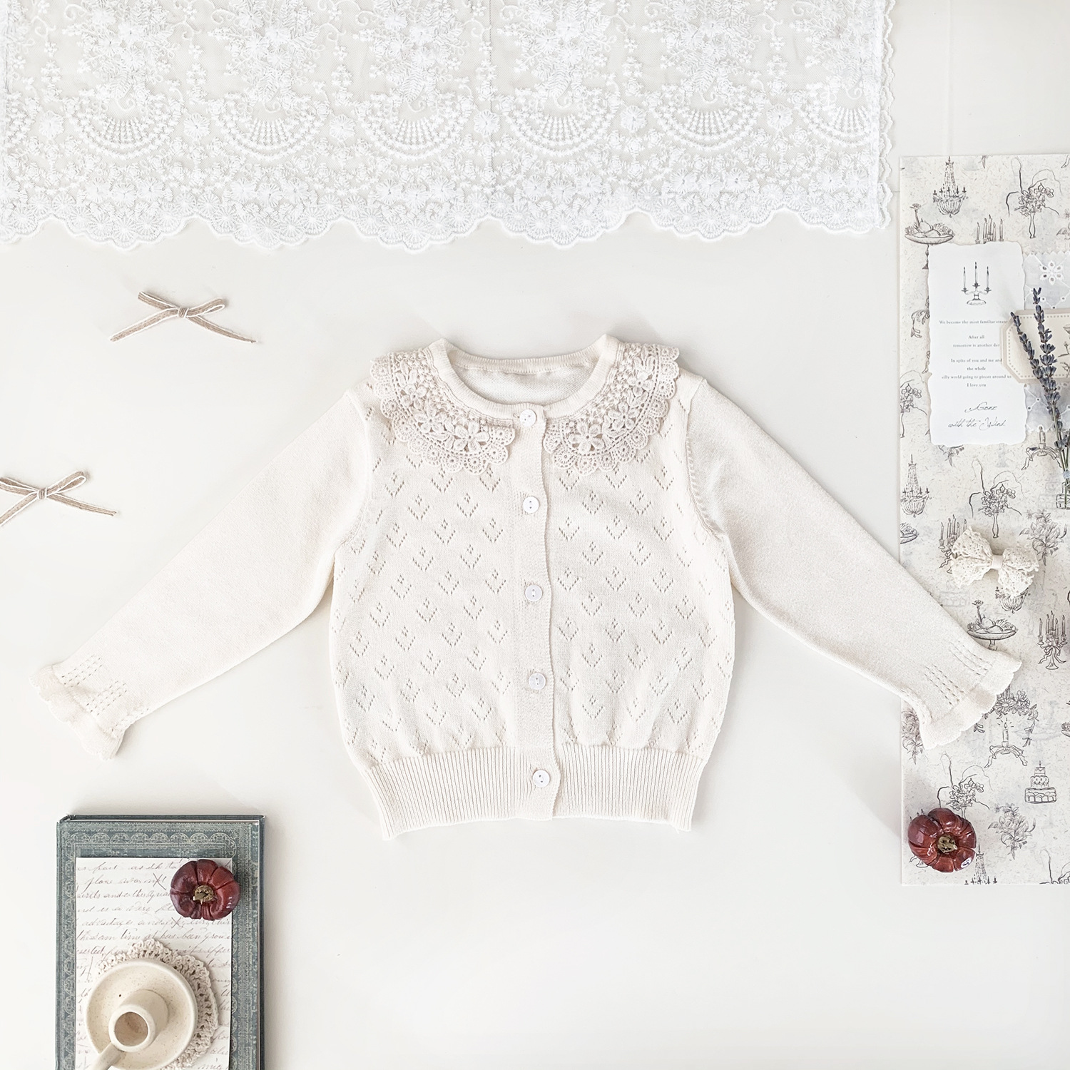 Ctuemily Girls Spring Cross-border Ins 수 놓은 칼라 카디건 여성용 보물 뿔 소매 Hollow Lar 니트 코트스토어 가기