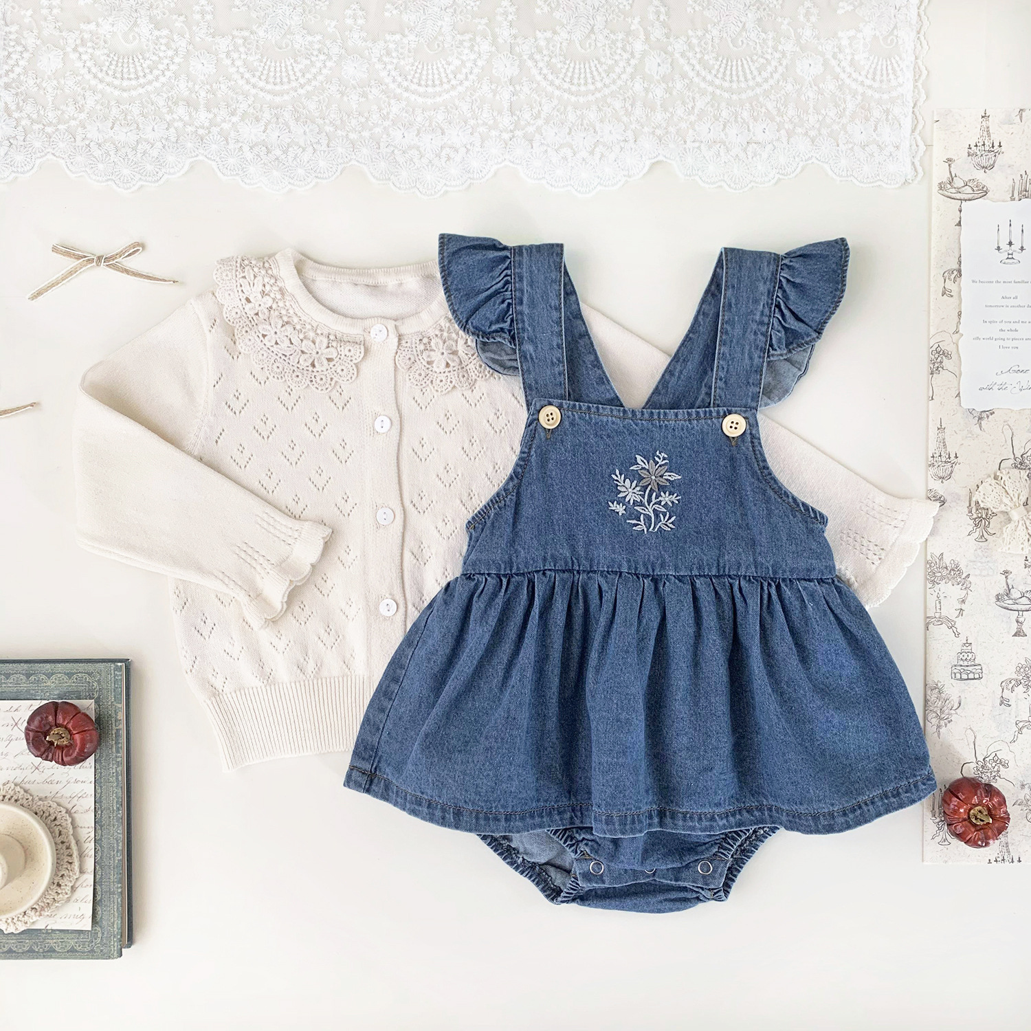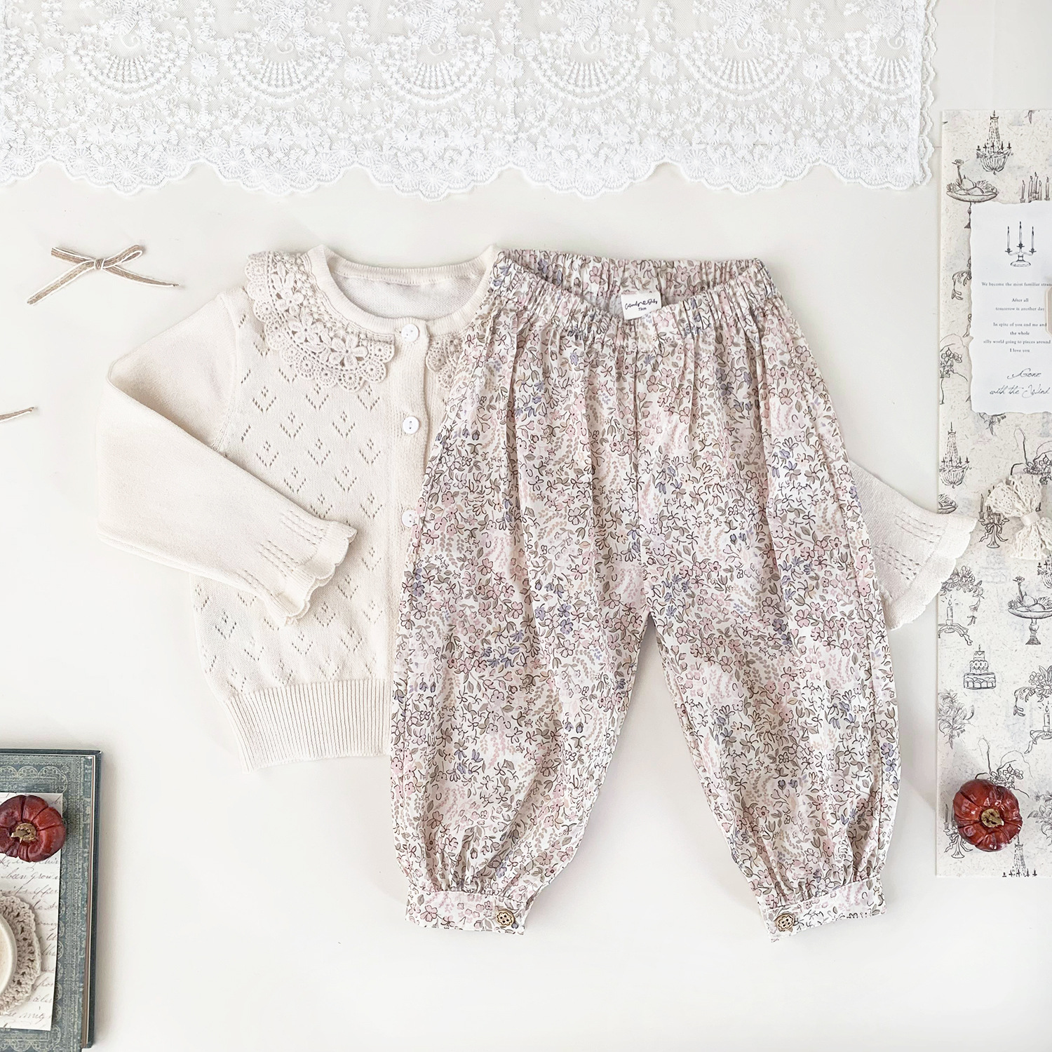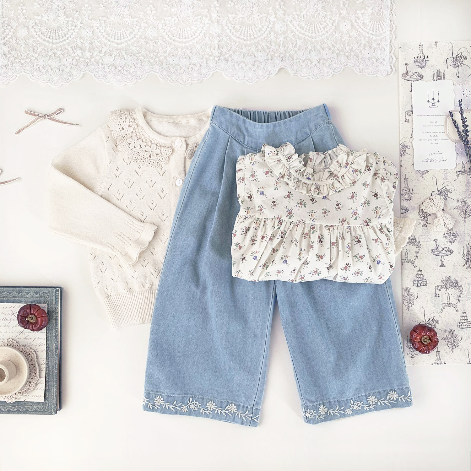 Ctuemily Girls Spring Cross-border Ins 수 놓은 칼라 카디건 여성용 보물 뿔 소매 Hollow Lar 니트 코트스토어 가기