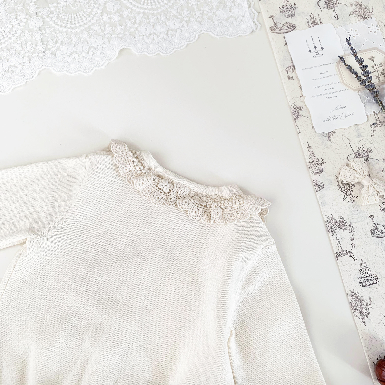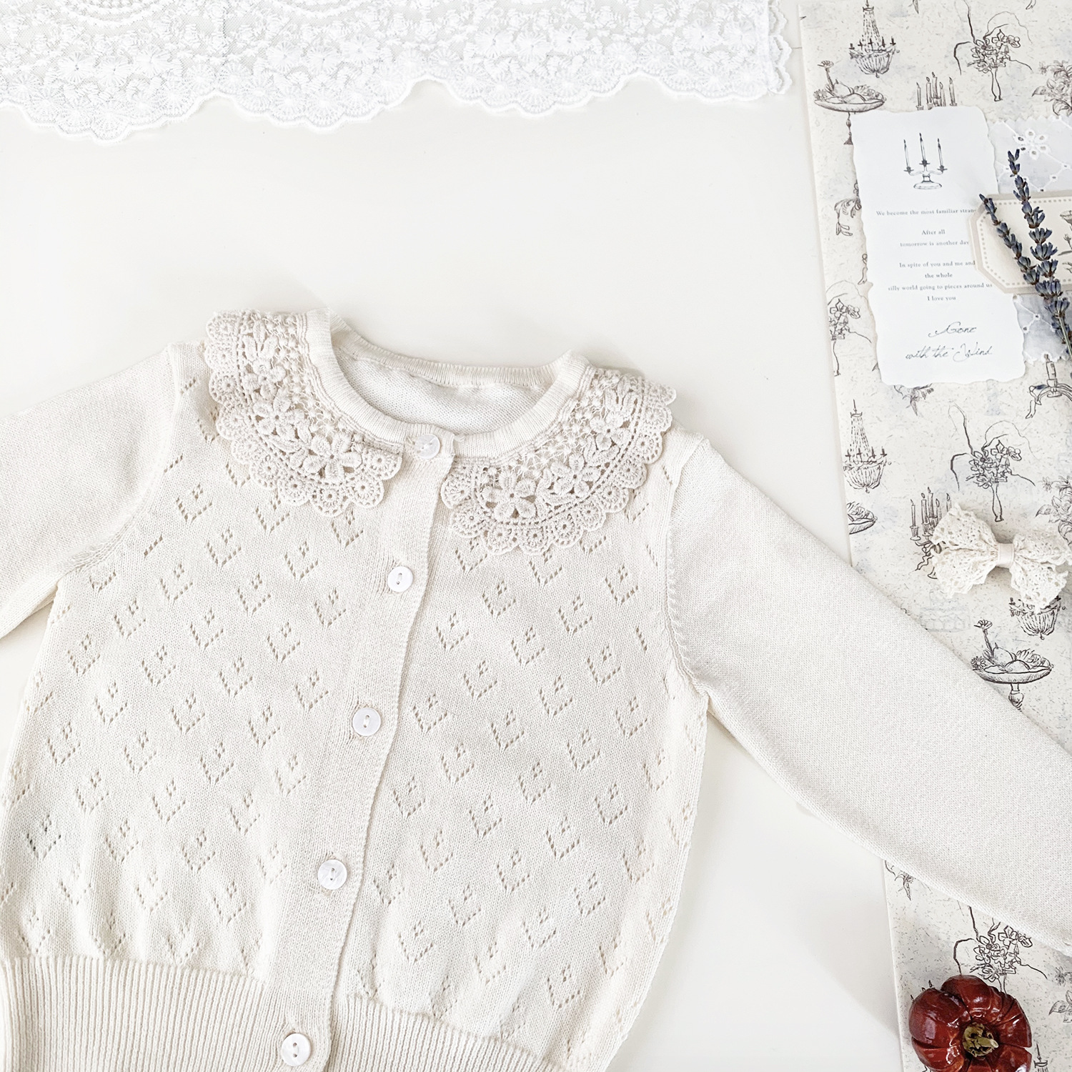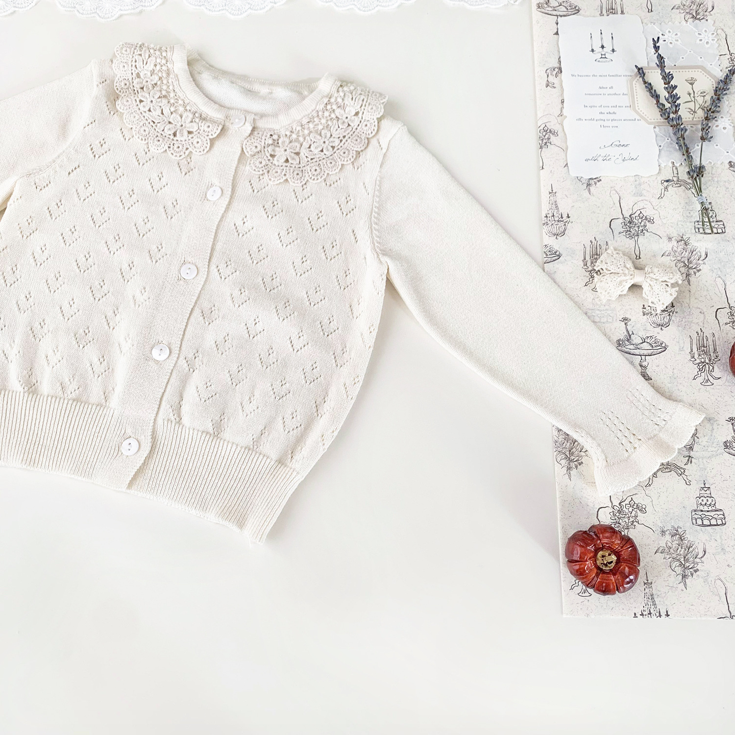 Ctuemily Girls Spring Cross-border Ins 수 놓은 칼라 카디건 여성용 보물 뿔 소매 Hollow Lar 니트 코트