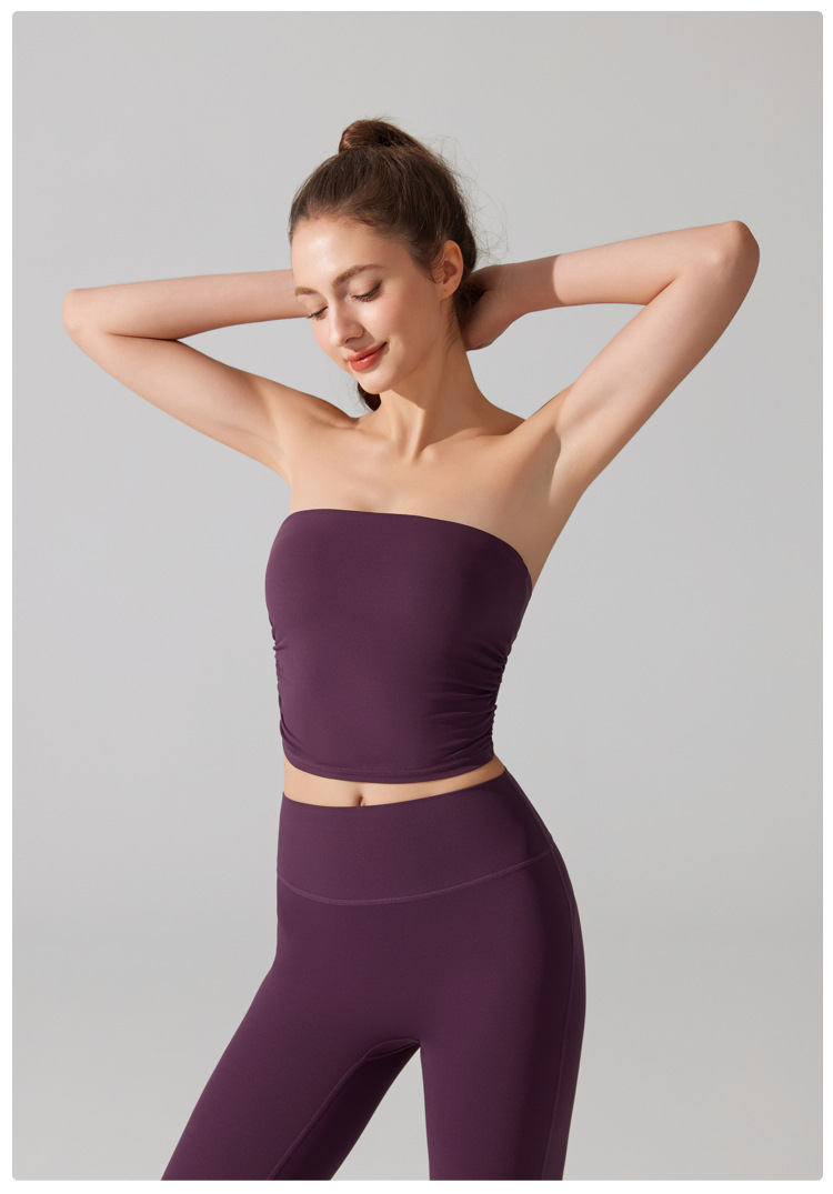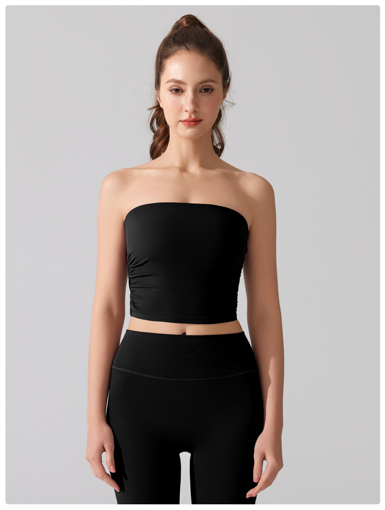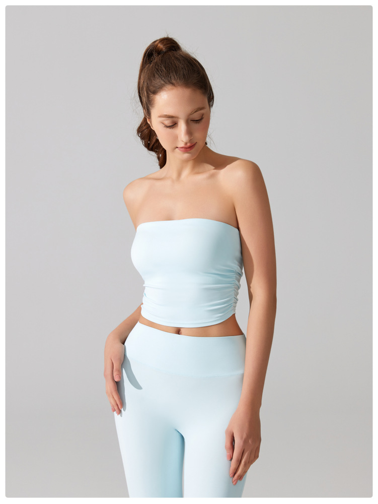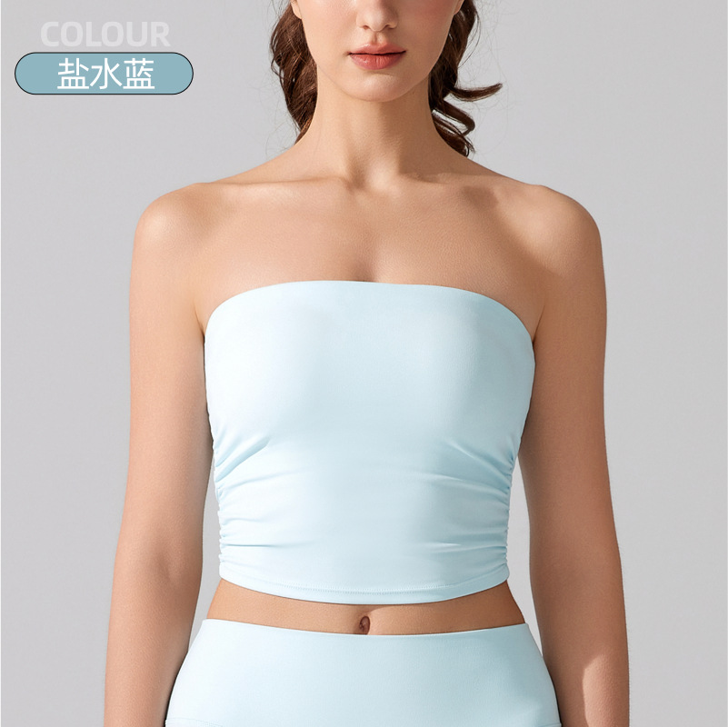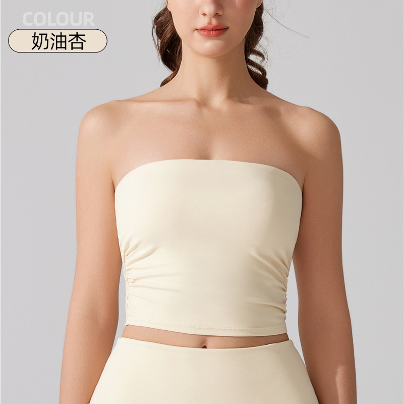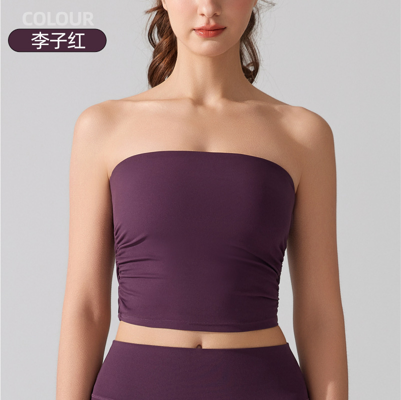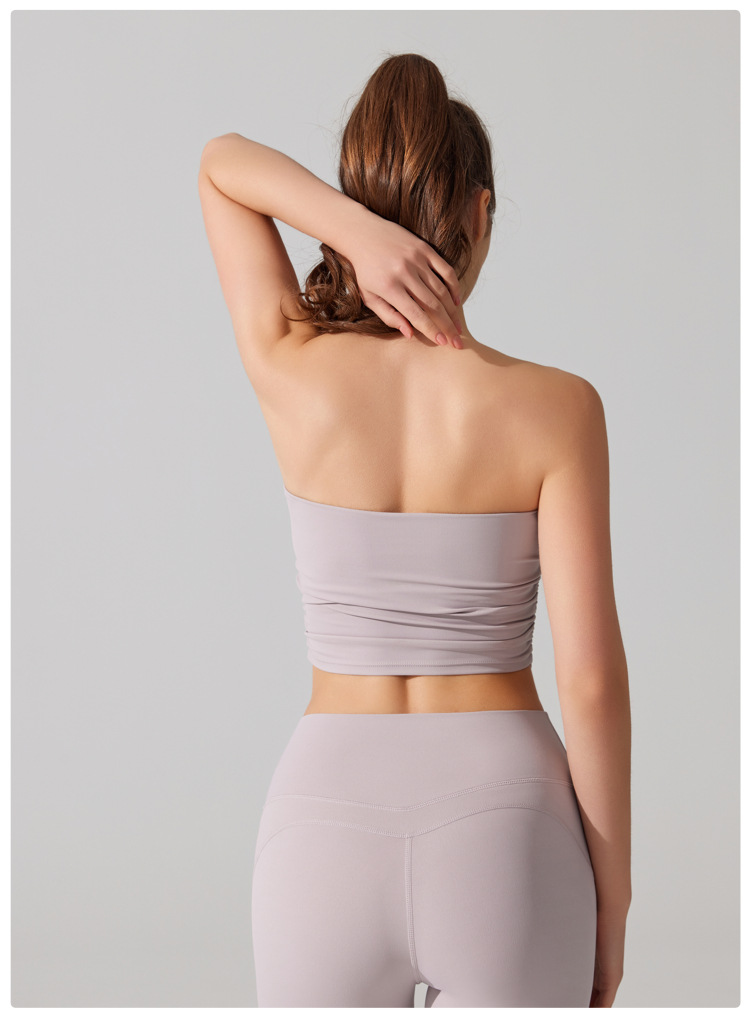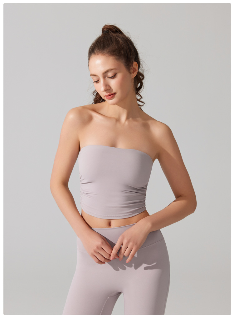 벌거 벗은 허리 포장 가슴 소매 조끼 주름 튜브 탑 슬림 핏 탑 이륙 방지 브래지어 달리기 스포츠 피트니스 속옷스토어 가기
