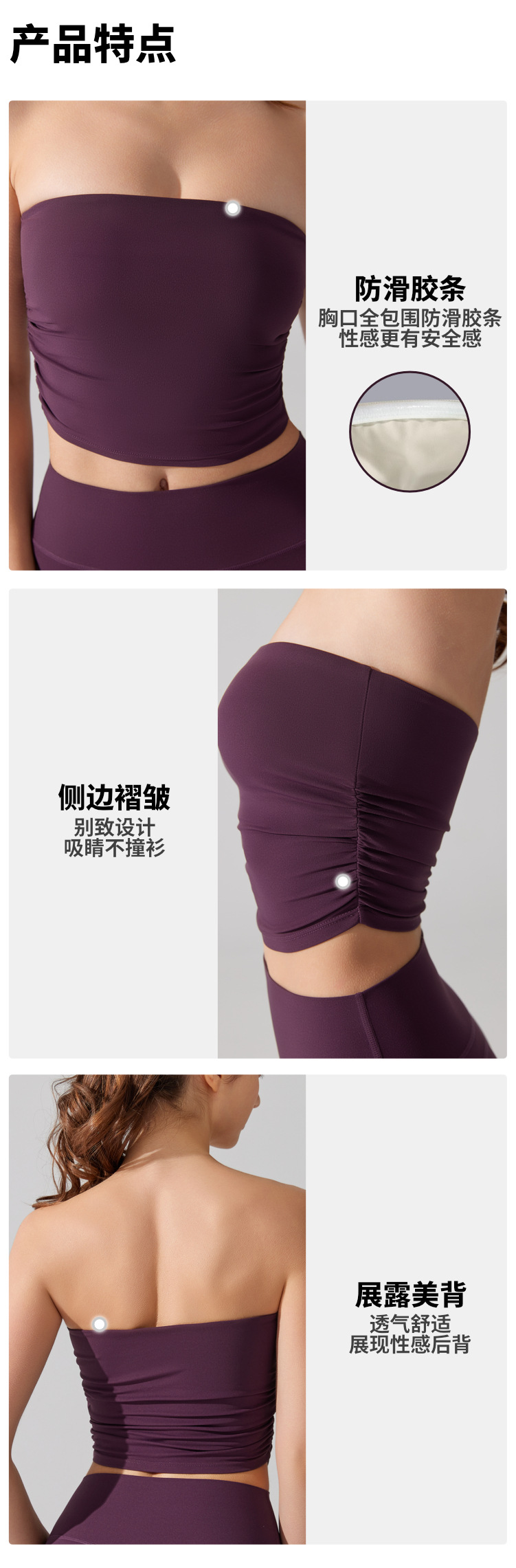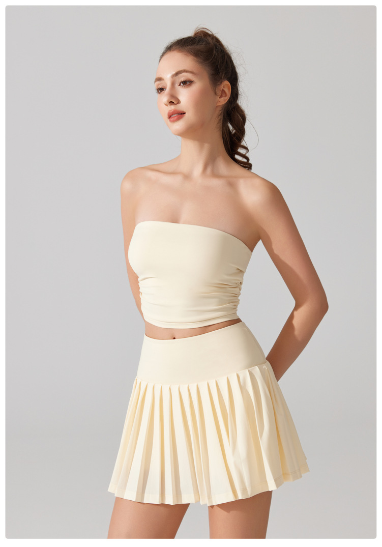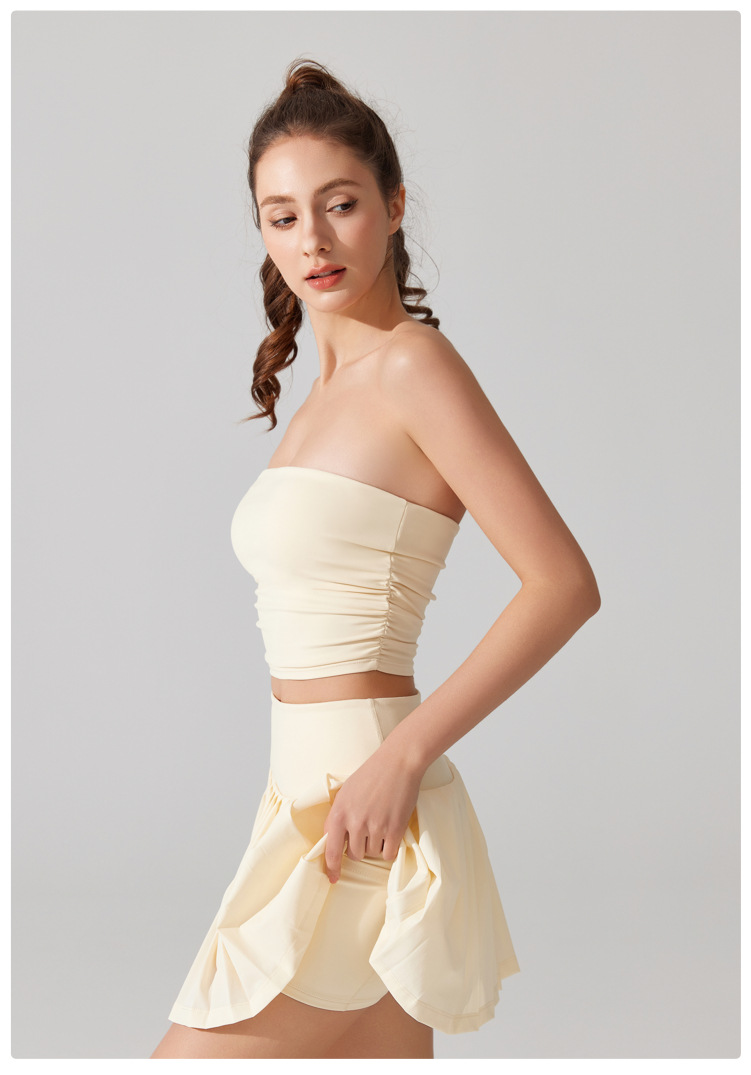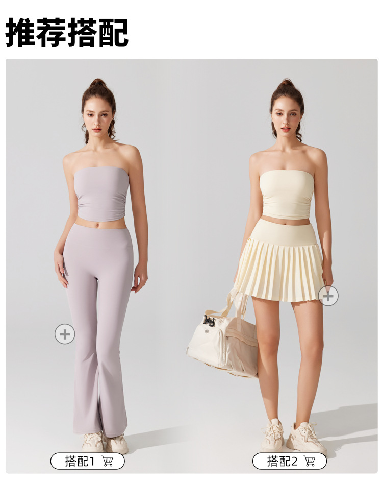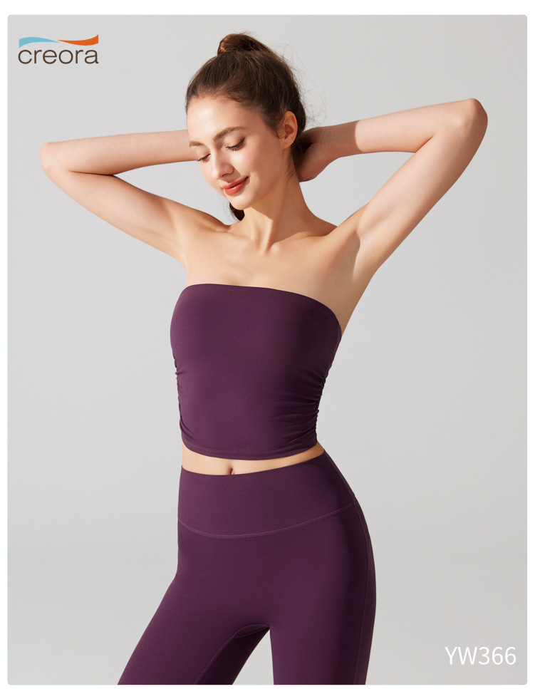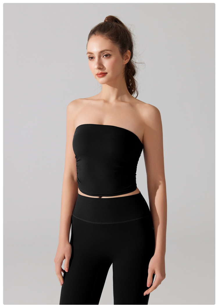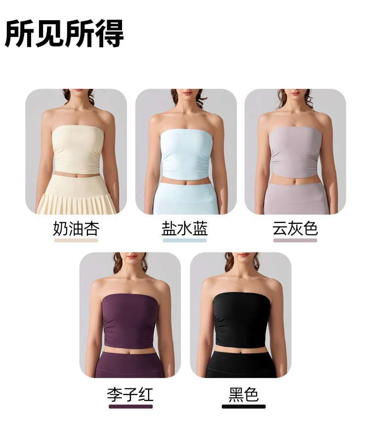 벌거 벗은 허리 포장 가슴 소매 조끼 주름 튜브 탑 슬림 핏 탑 이륙 방지 브래지어 달리기 스포츠 피트니스 속옷스토어 가기
