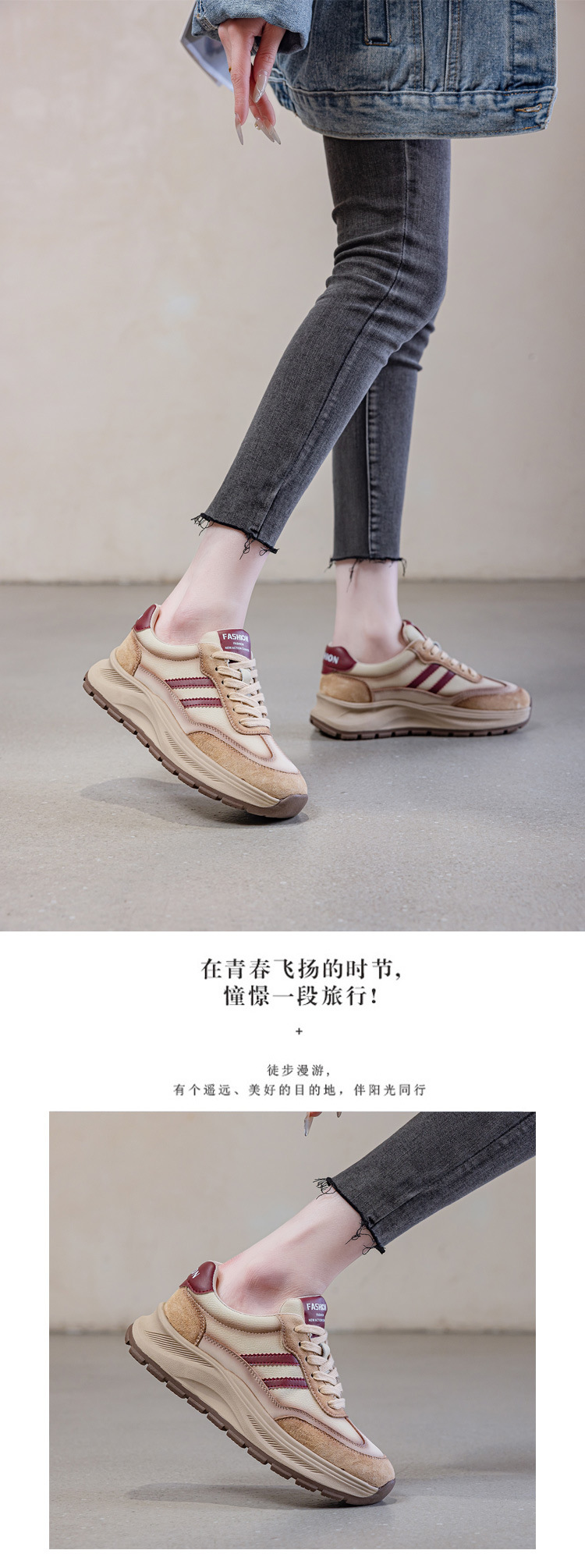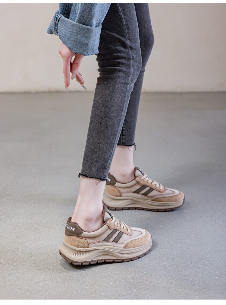 신홍 신발 공장 레트로 스포츠 캐주얼 신발 여성용 2025 봄 여름 신상 천연 가죽 두꺼운 밑창 배색 아빠 신발 아가니 신발스토어 가기