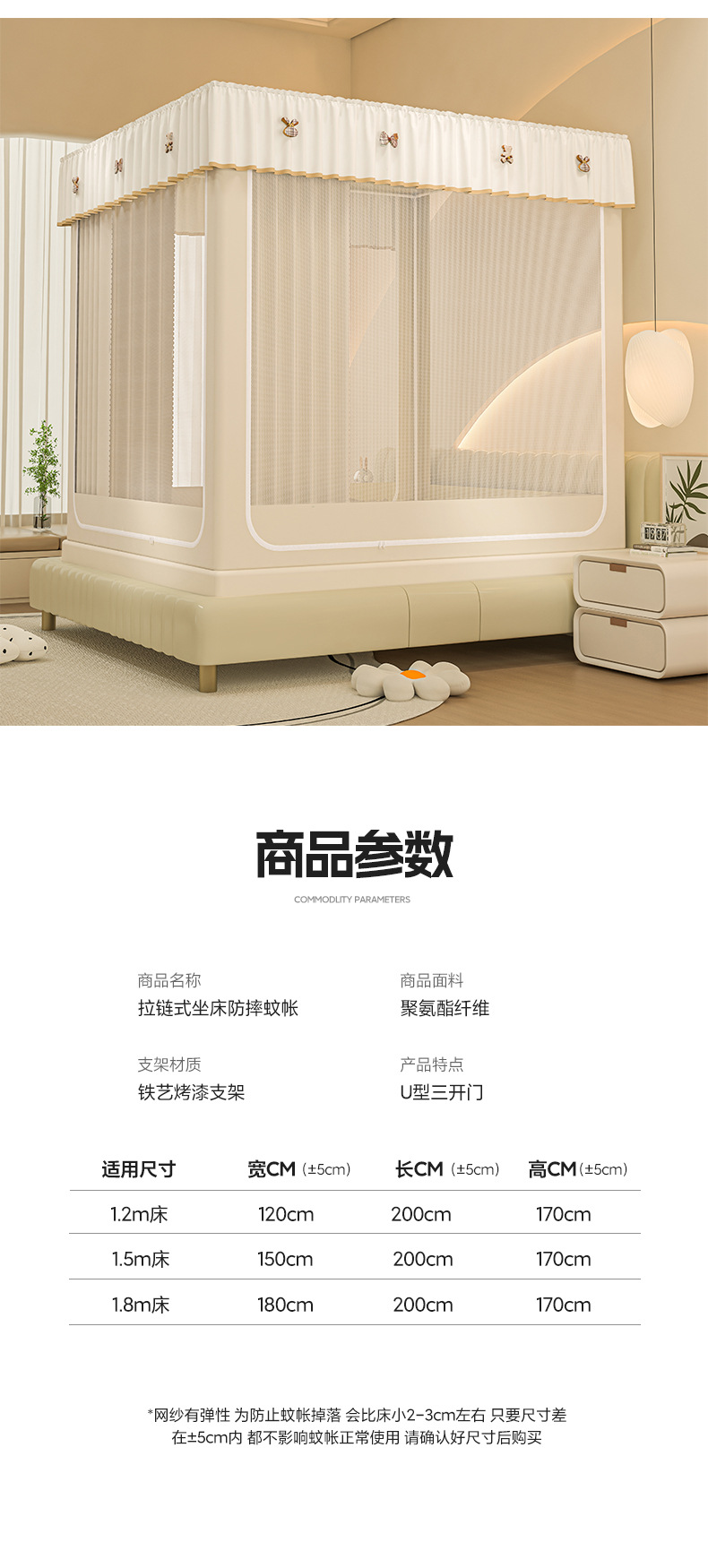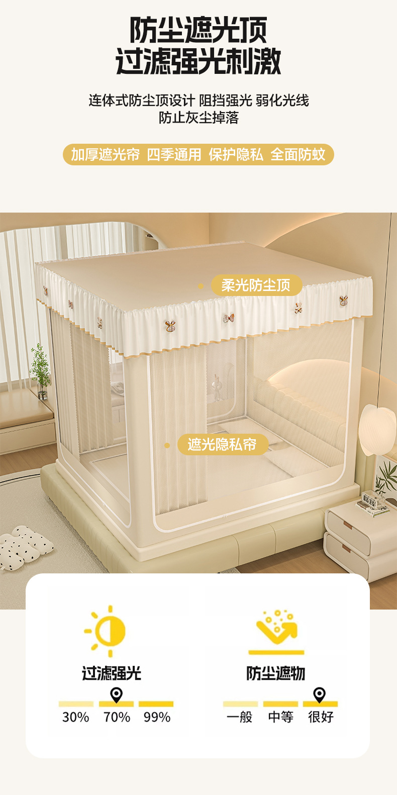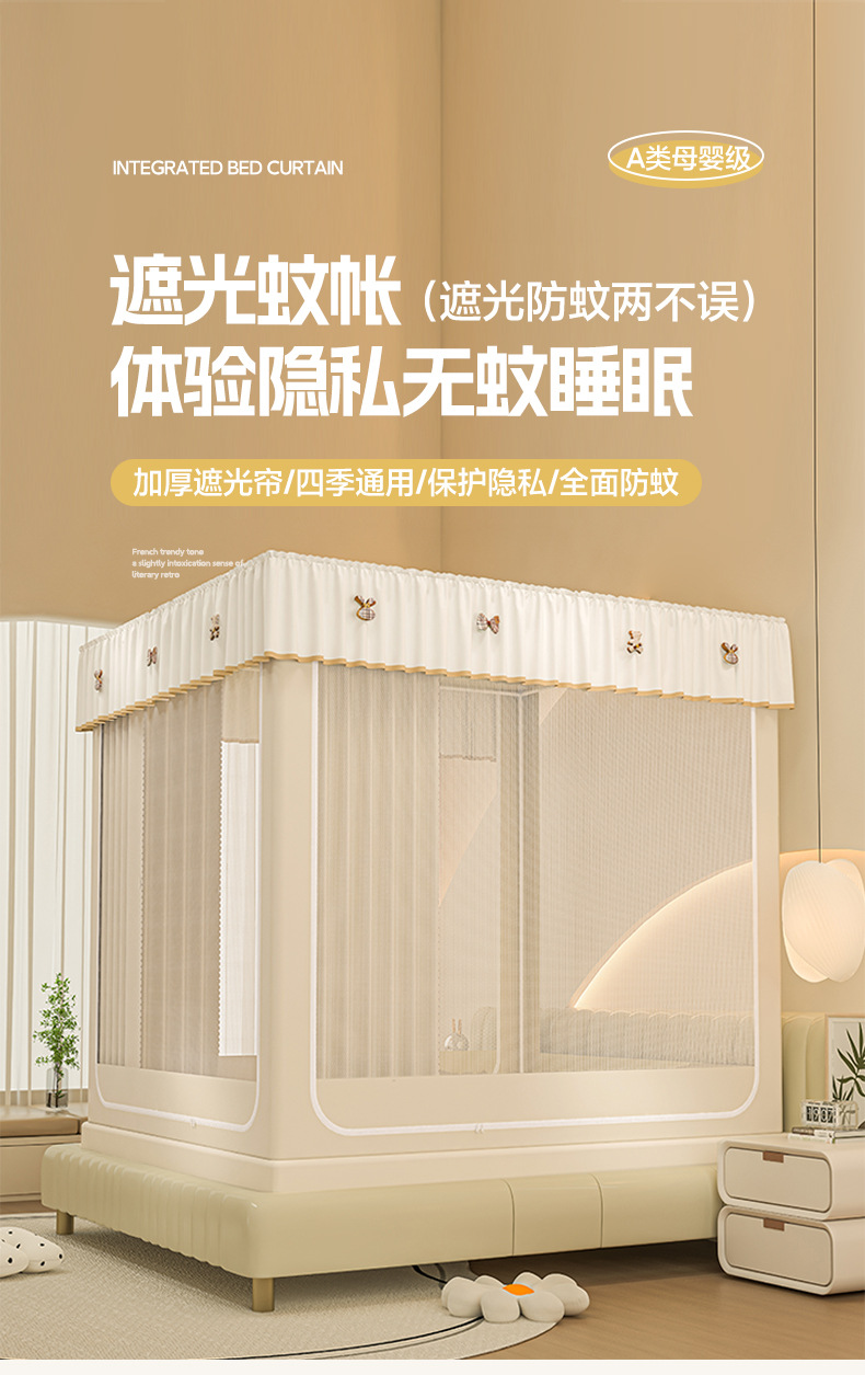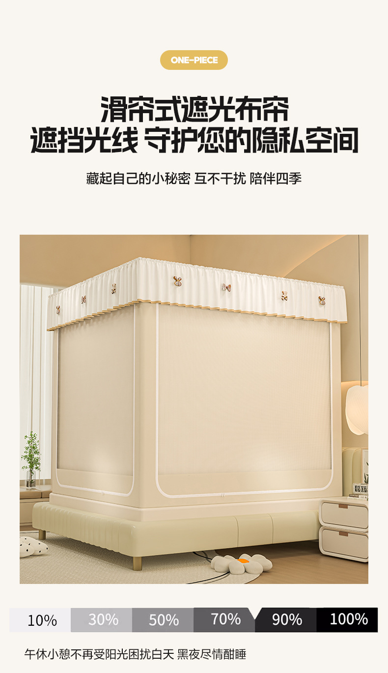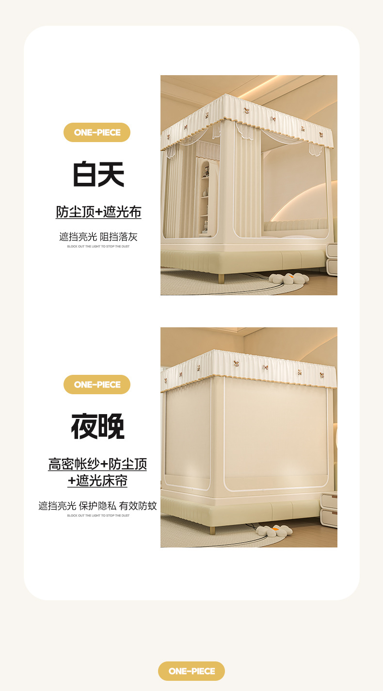 • ins 침대커튼스타일-베이지❤️3도어 [클래스 A 암호화 90% 텐트 + 모기방지 및 낙하방지 + 암막커튼 + 방진상판]