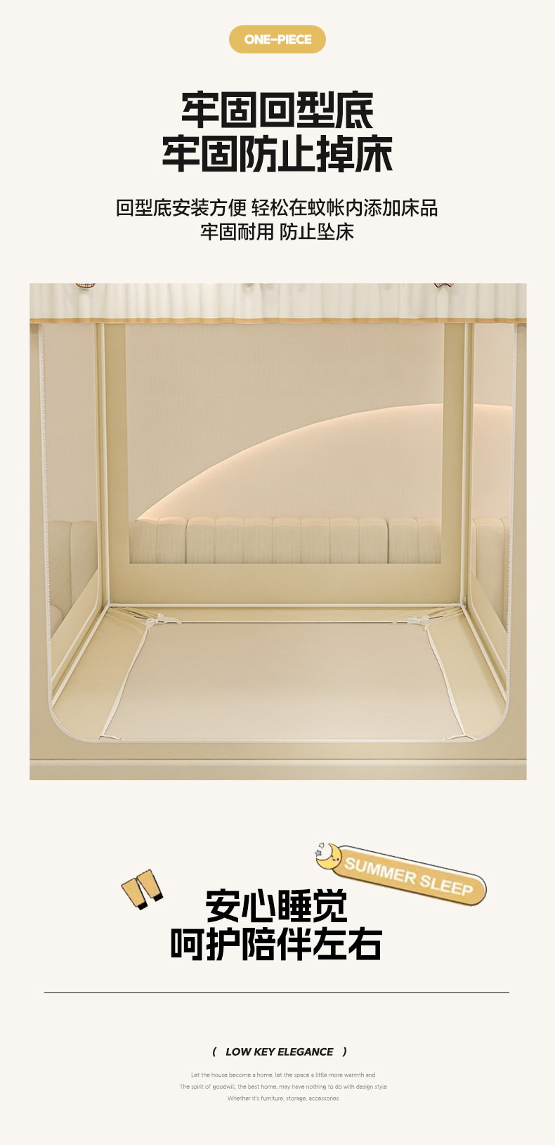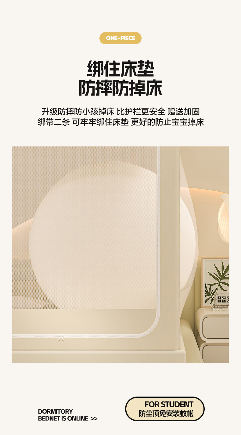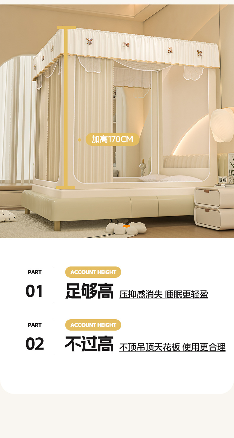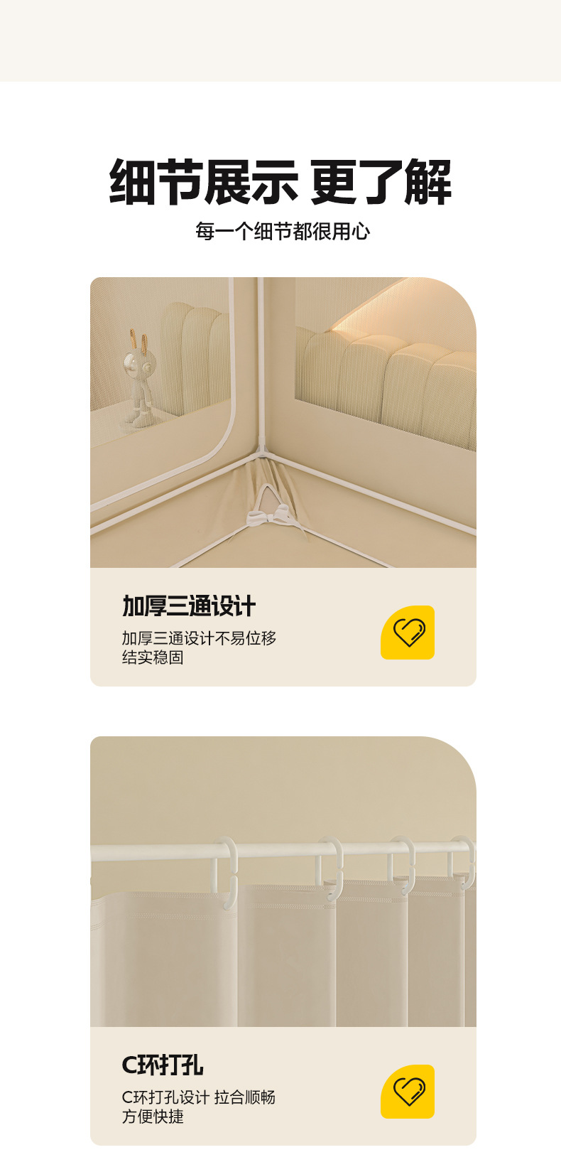 • ins 침대커튼스타일-베이지❤️3도어 [클래스 A 암호화 90% 텐트 + 모기방지 및 낙하방지 + 암막커튼 + 방진상판]