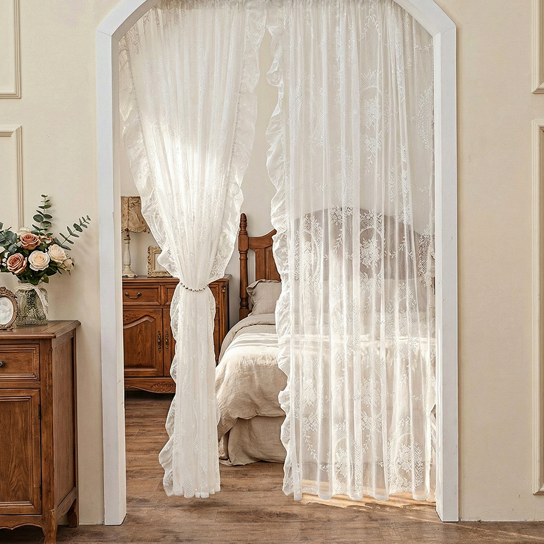새로운 둥근 거울 꽃 프랑스 목가적 인 레이스 커튼 거실 침실 발코니 베이 창 반 음영 창 화면 제조업체 국경스토어 가기