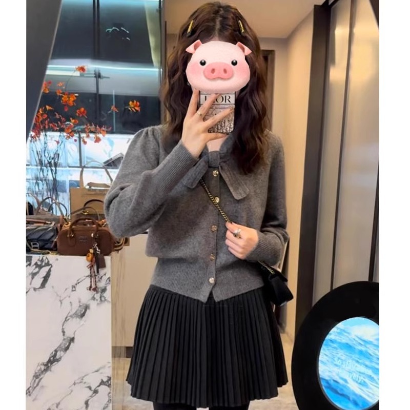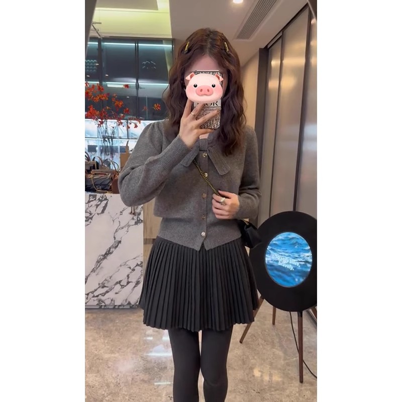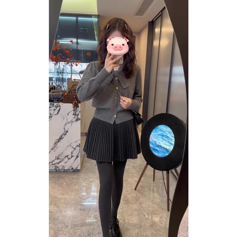 샤넬 스타일 그레이 활 니트 카디건 재킷 여성의 가을과 겨울 짧은 슬림 핏 짧은베이스 셔츠 탑스토어 가기
