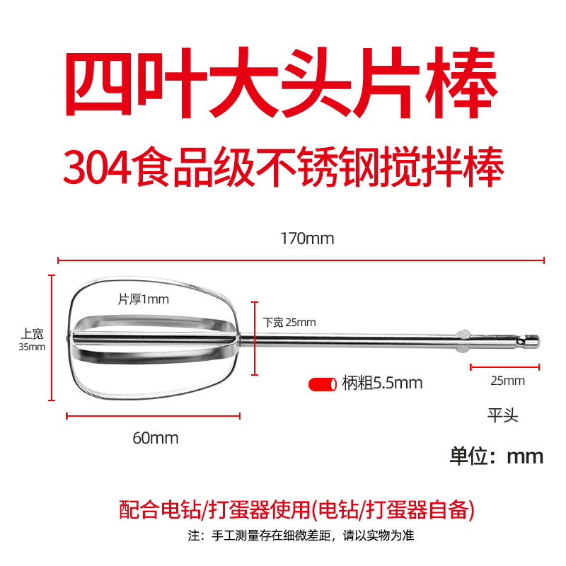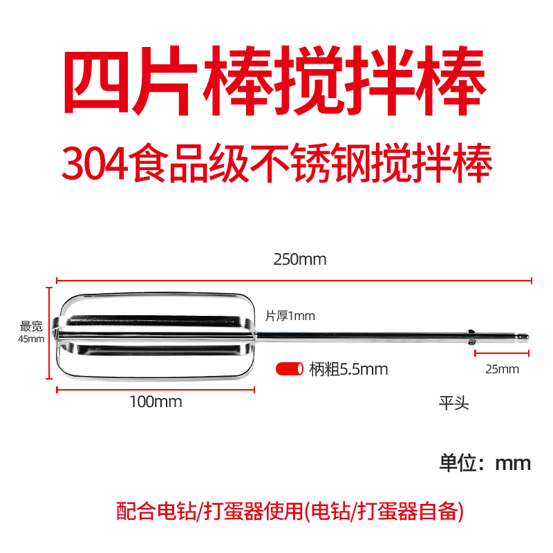 • 25CM 네잎 플랫 헤드 교반 막대 플랫 헤드 계란 비터 사용 가능⚑⚑