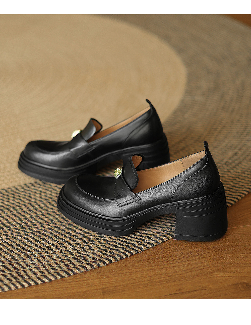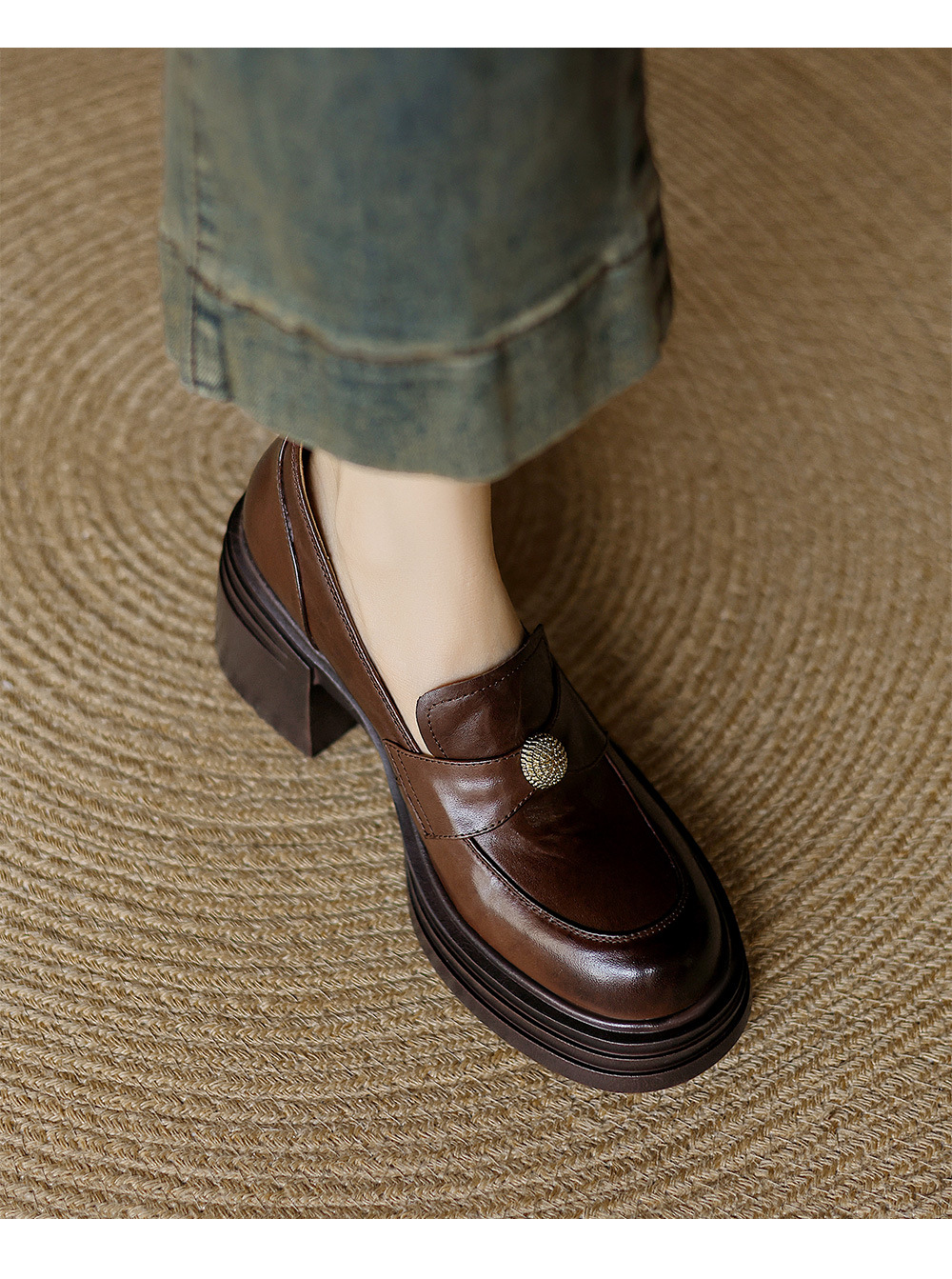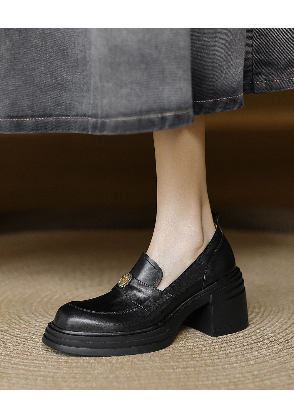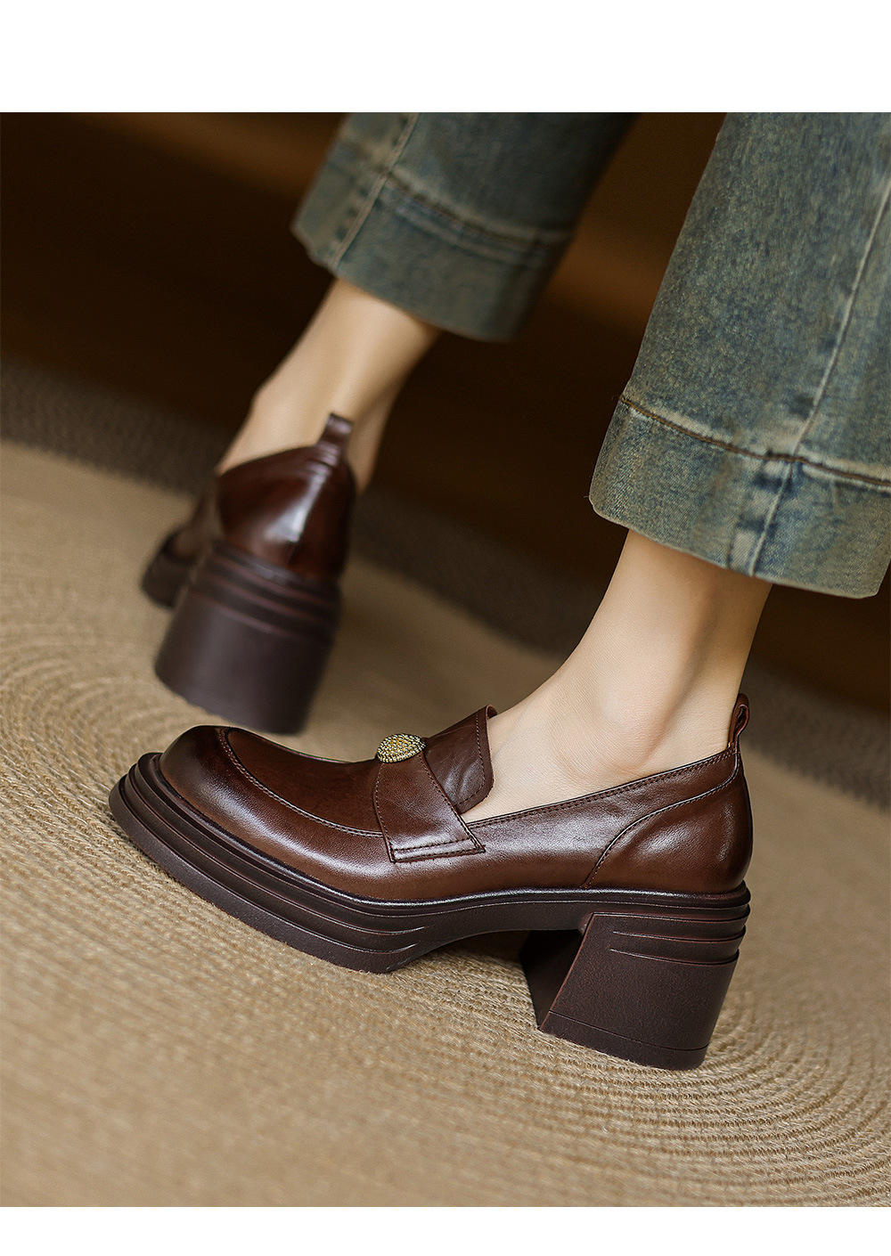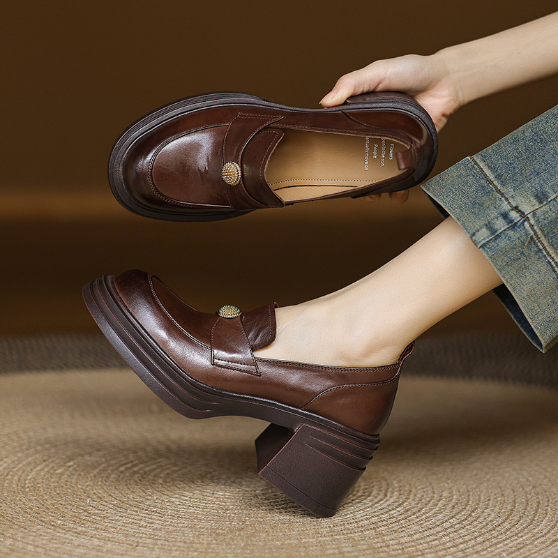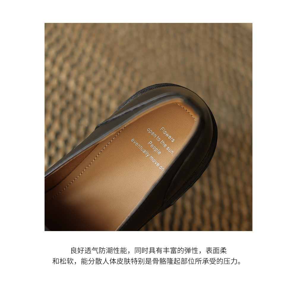 영국 스타일의 두꺼운 단독 가죽 신발 여성 정품 가죽 두꺼운 고리 2025 새로운 봄 꽃 하이힐 게으른 신발스토어 가기