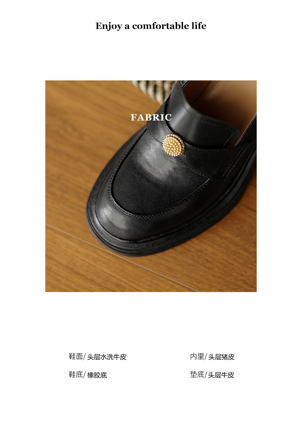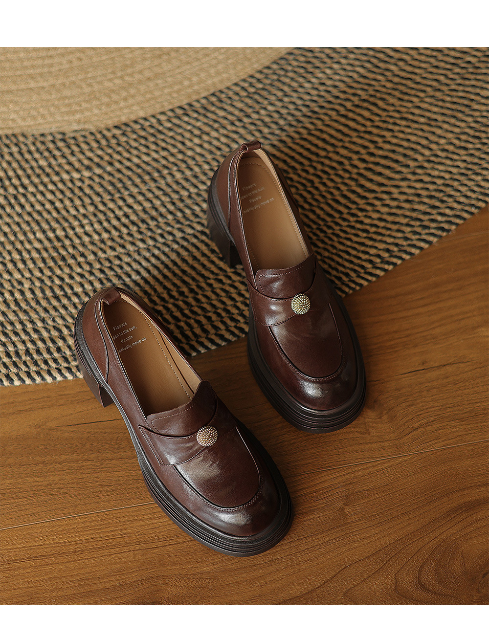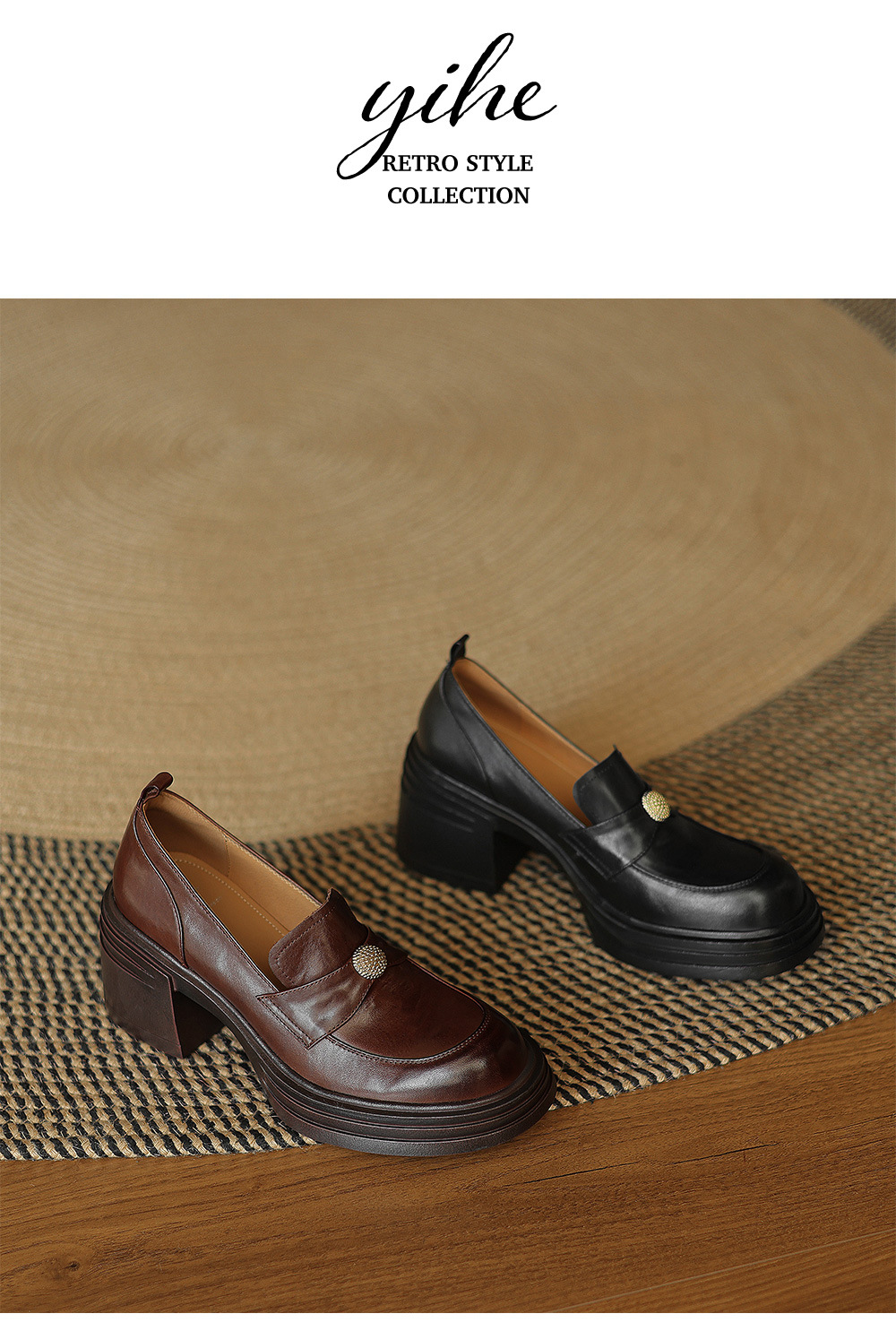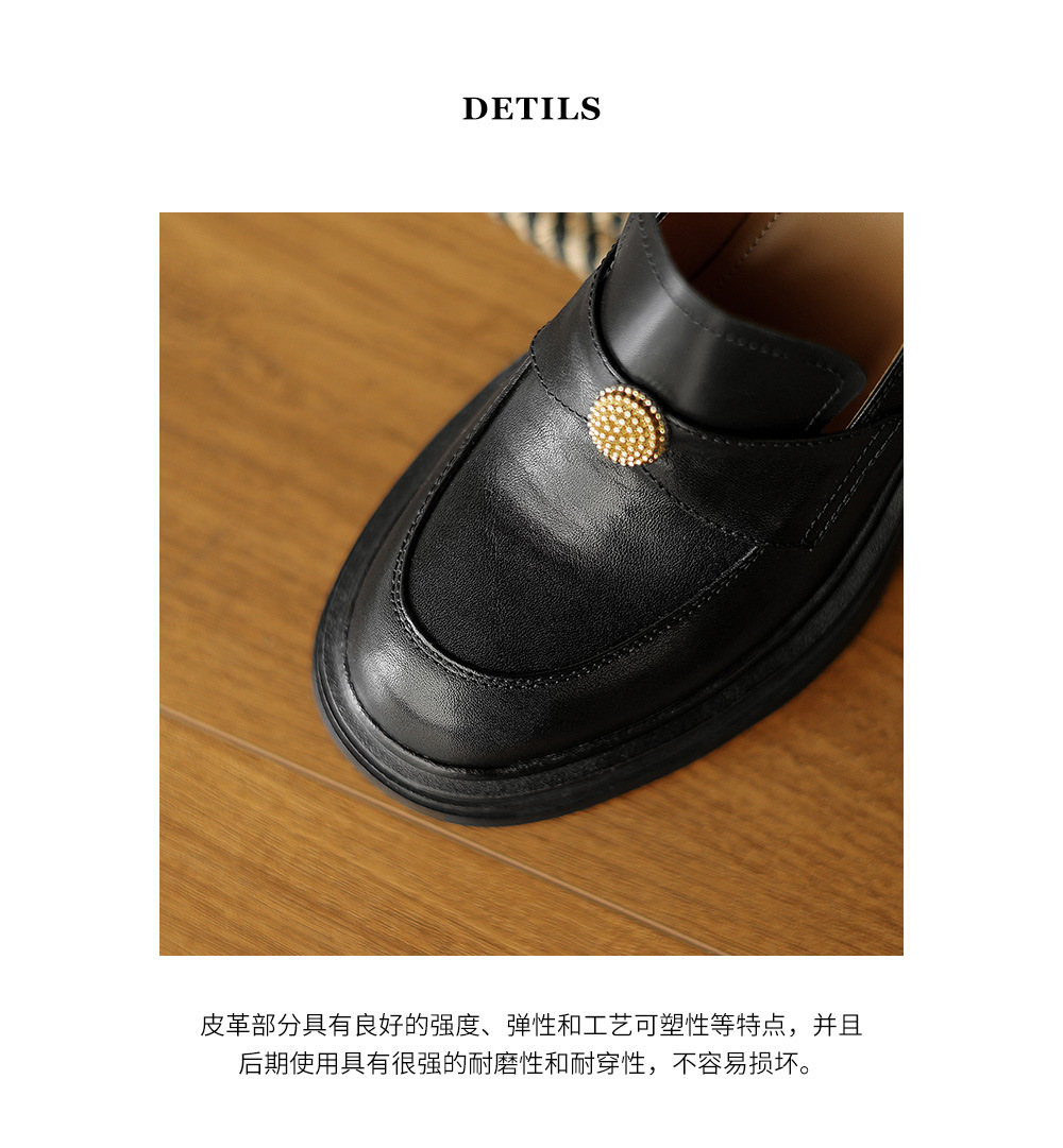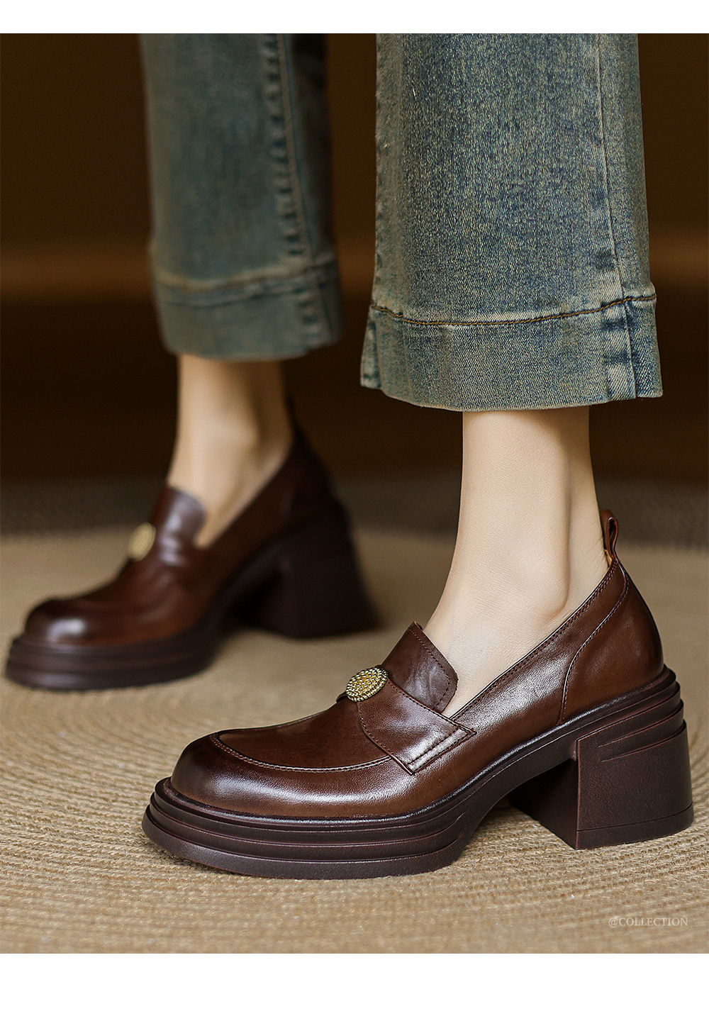 영국 스타일의 두꺼운 단독 가죽 신발 여성 정품 가죽 두꺼운 고리 2025 새로운 봄 꽃 하이힐 게으른 신발스토어 가기